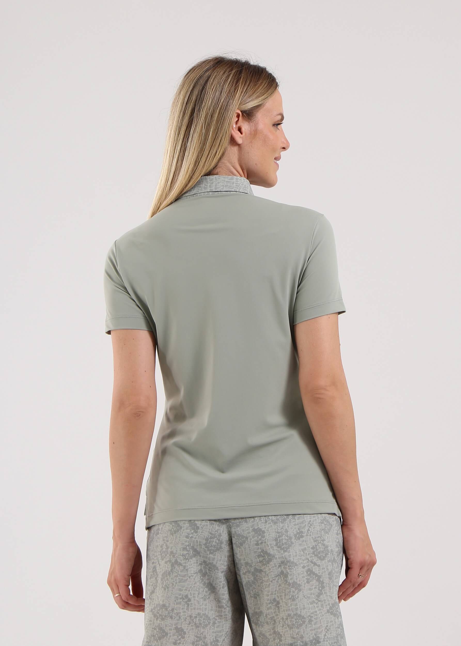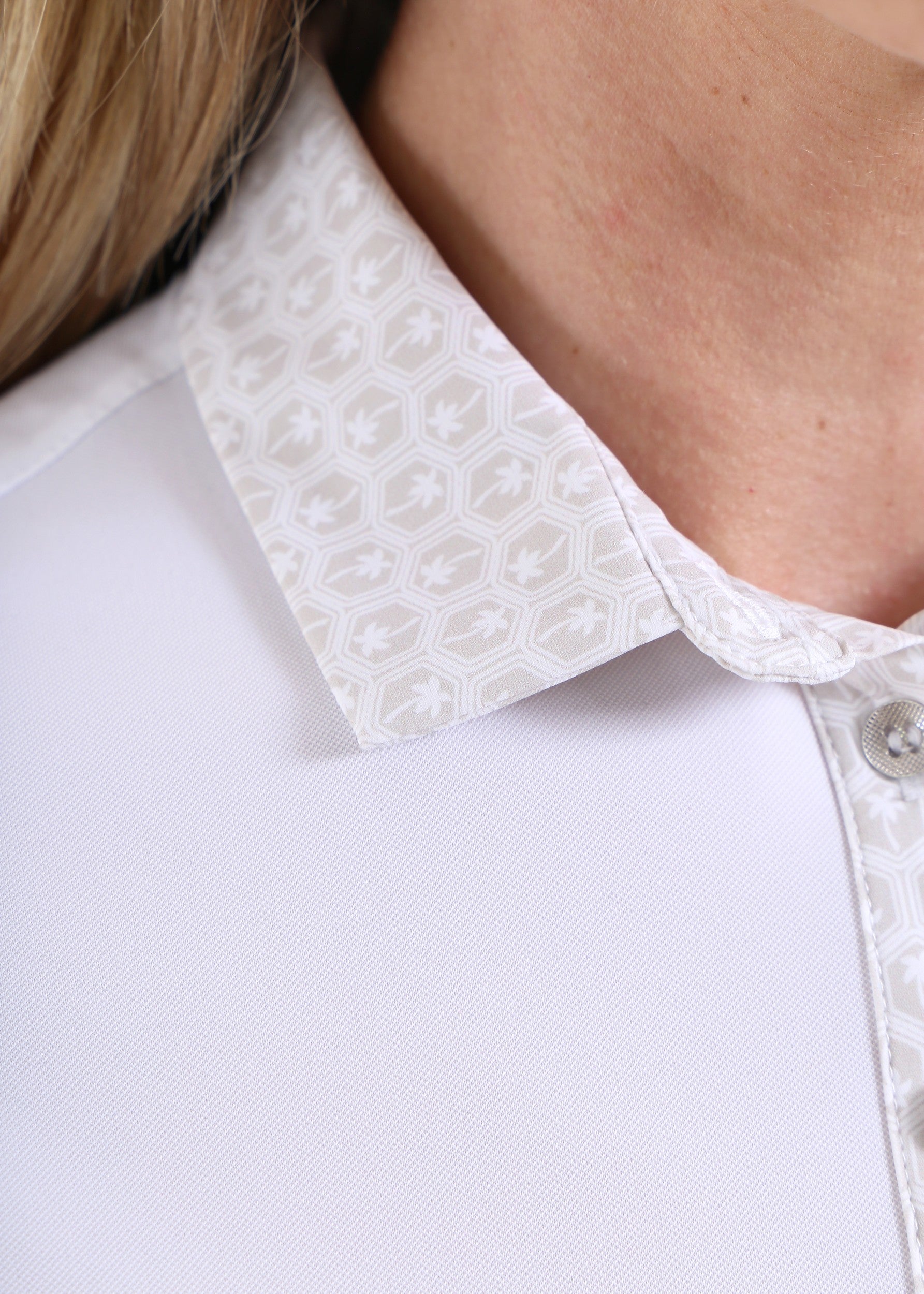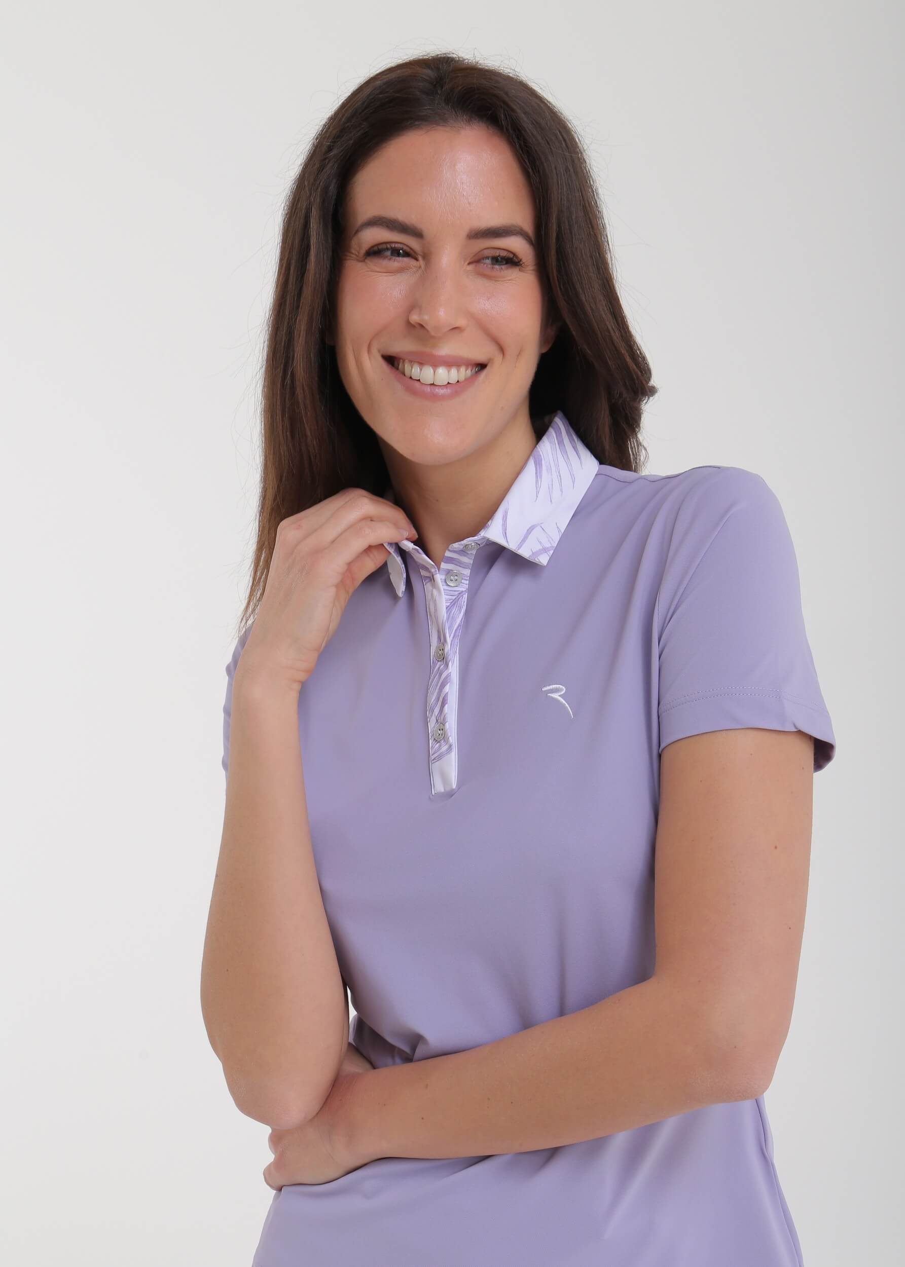 ABIR is a women’s short-sleeve polo made from ultra-light stretch piqué with a feminine, distinctive design, highlighted by a patterned collar. The ultra-fine, soft-touch fabric with Dry-Matic® technology provides excellent moisture management and quick-drying performance, keeping you feeling fresh even on warmer days. Lightweight and comfortable, it pairs easily with other printed pieces from the collection to create coordinated, refined looks. A versatile polo designed for elegant summer play on and off the golf course.