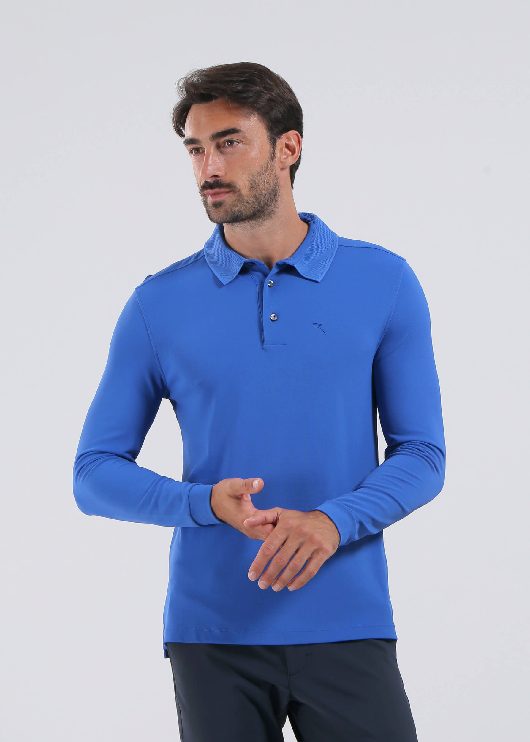 ANACLETO is a long-sleeve polo in stretch piqué, designed for layering and versatile wear in every season. The structured collar and tone-on-tone embroidered logo complete a clean design with understated elegance. A timeless piece, perfect from the golf course to everyday life.