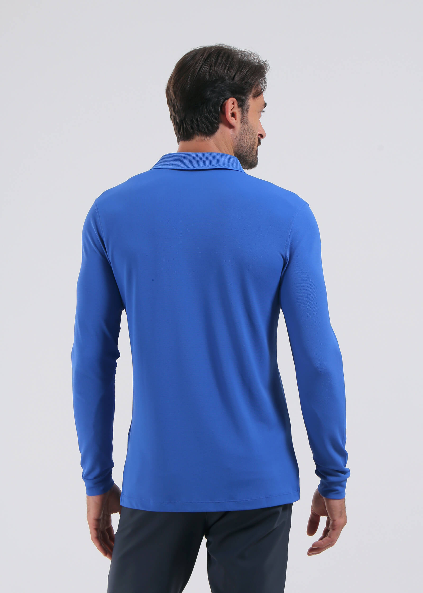 ANACLETO is a long-sleeve polo in stretch piqué, designed for layering and versatile wear in every season. The structured collar and tone-on-tone embroidered logo complete a clean design with understated elegance. A timeless piece, perfect from the golf course to everyday life.