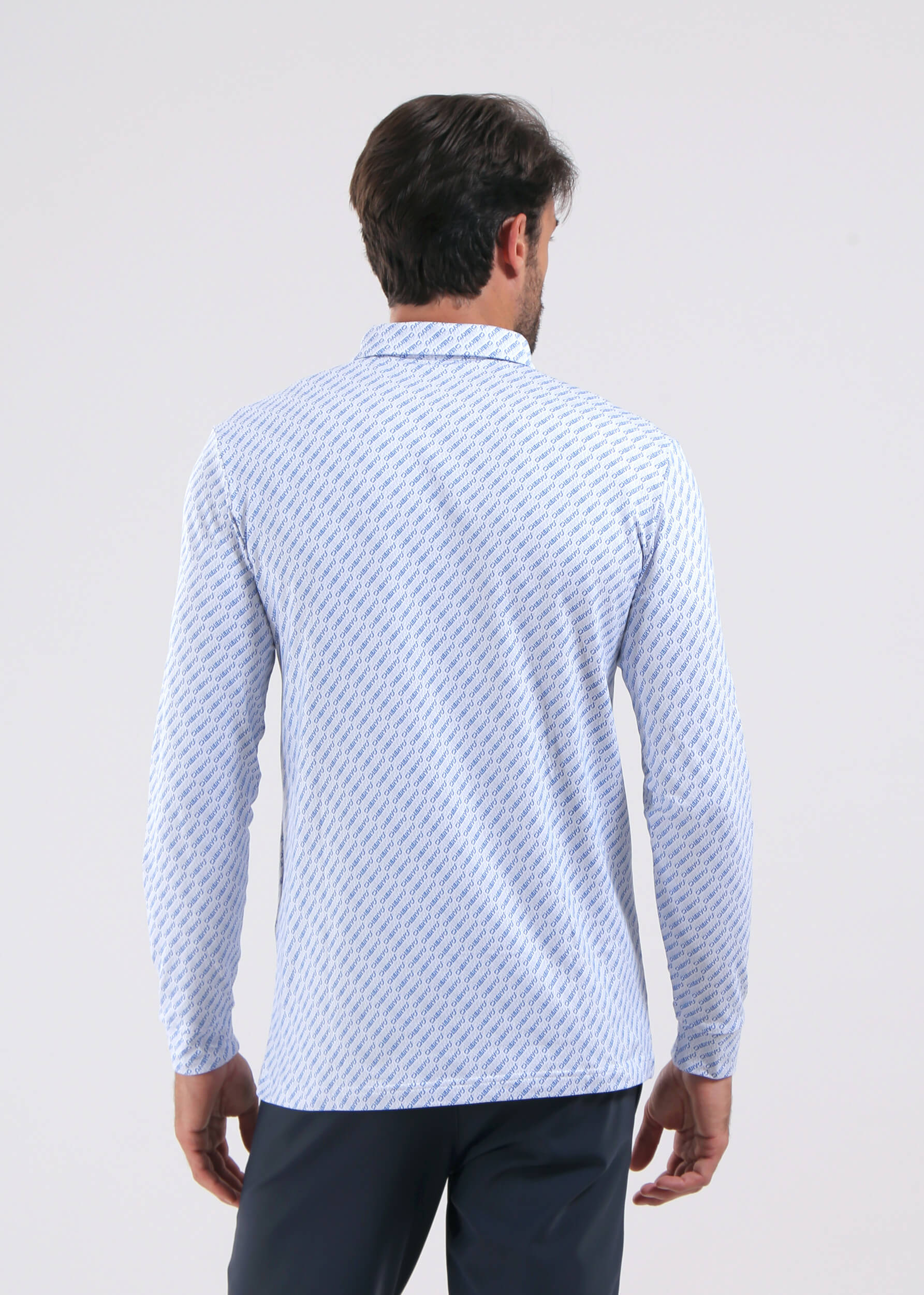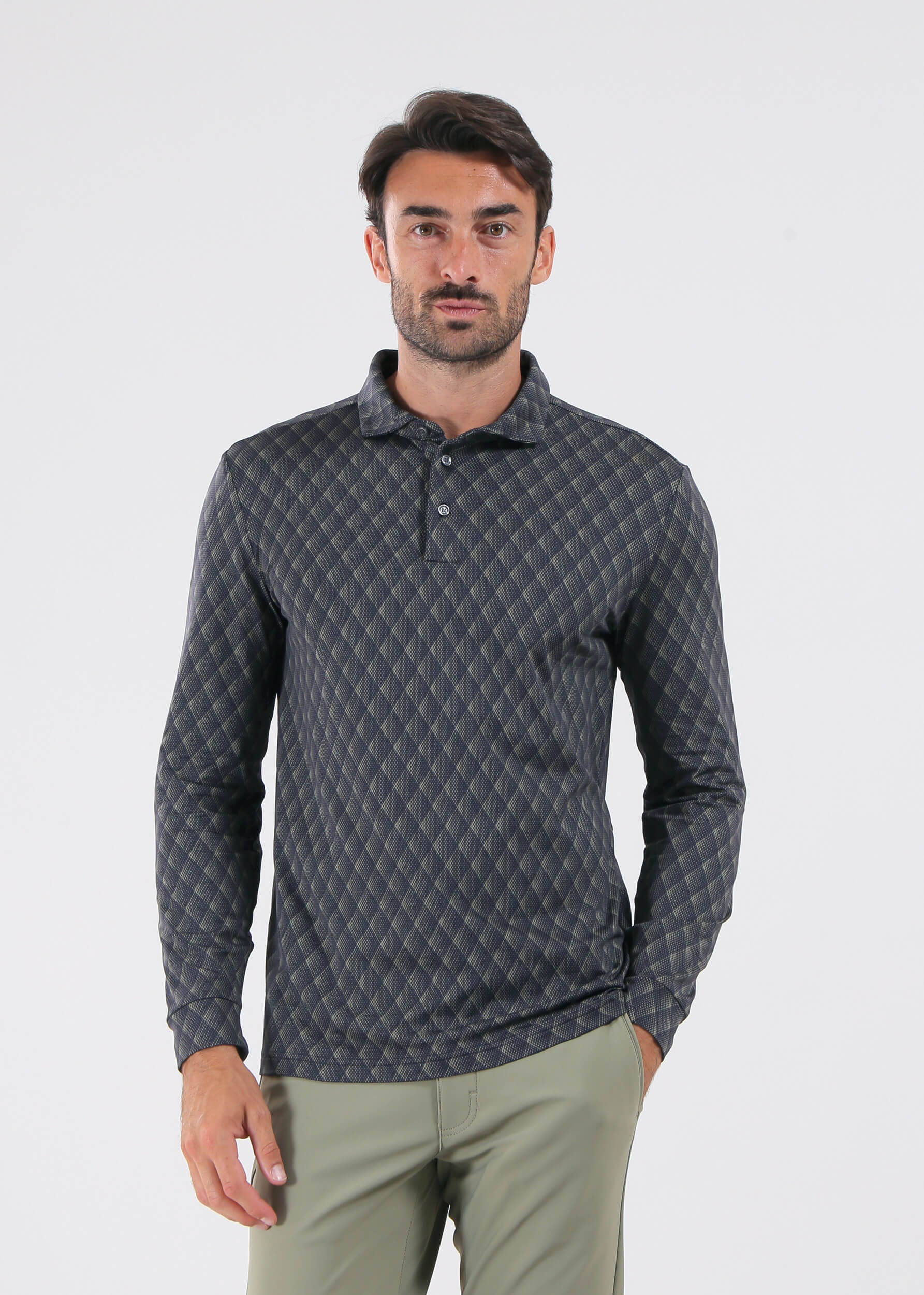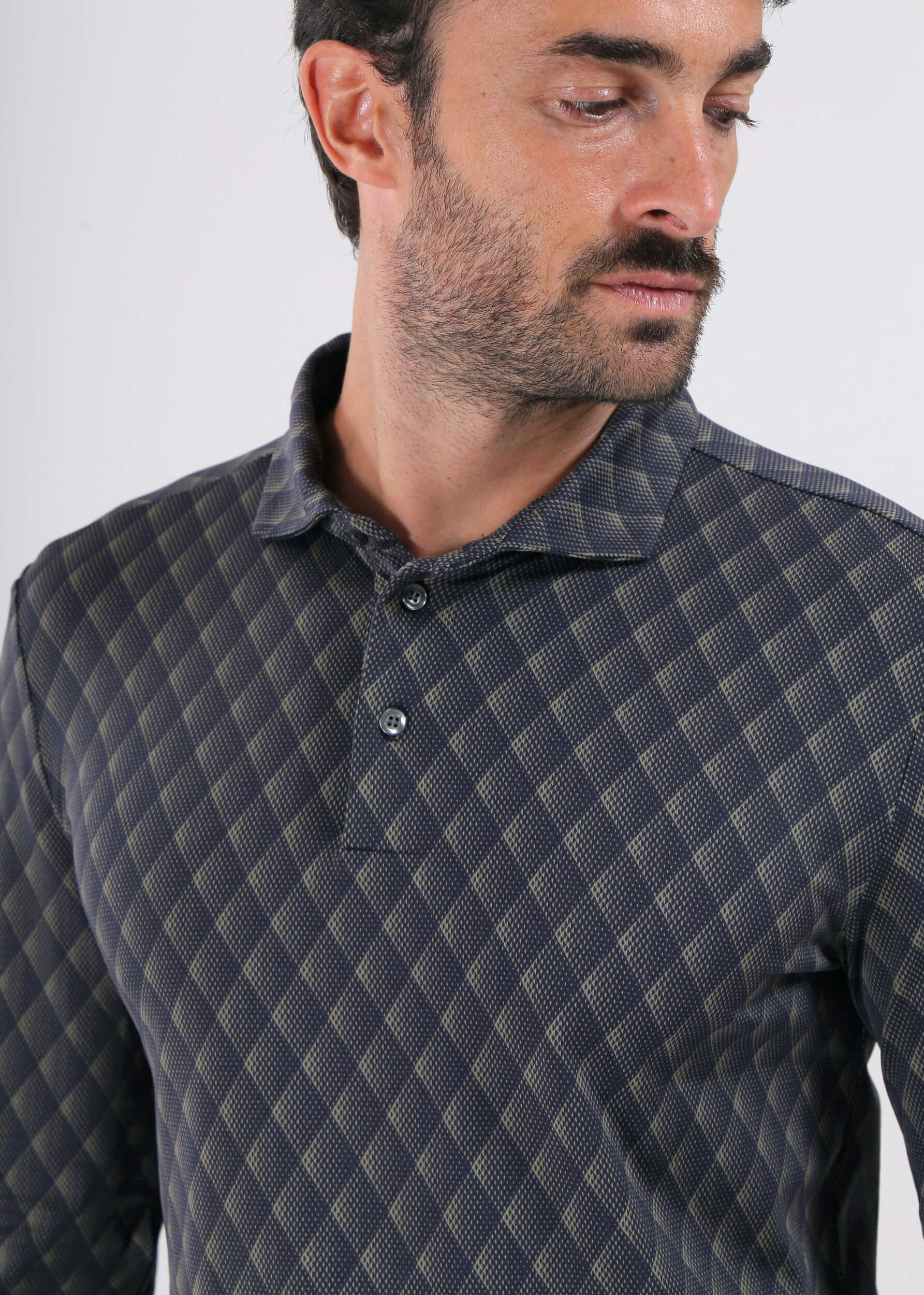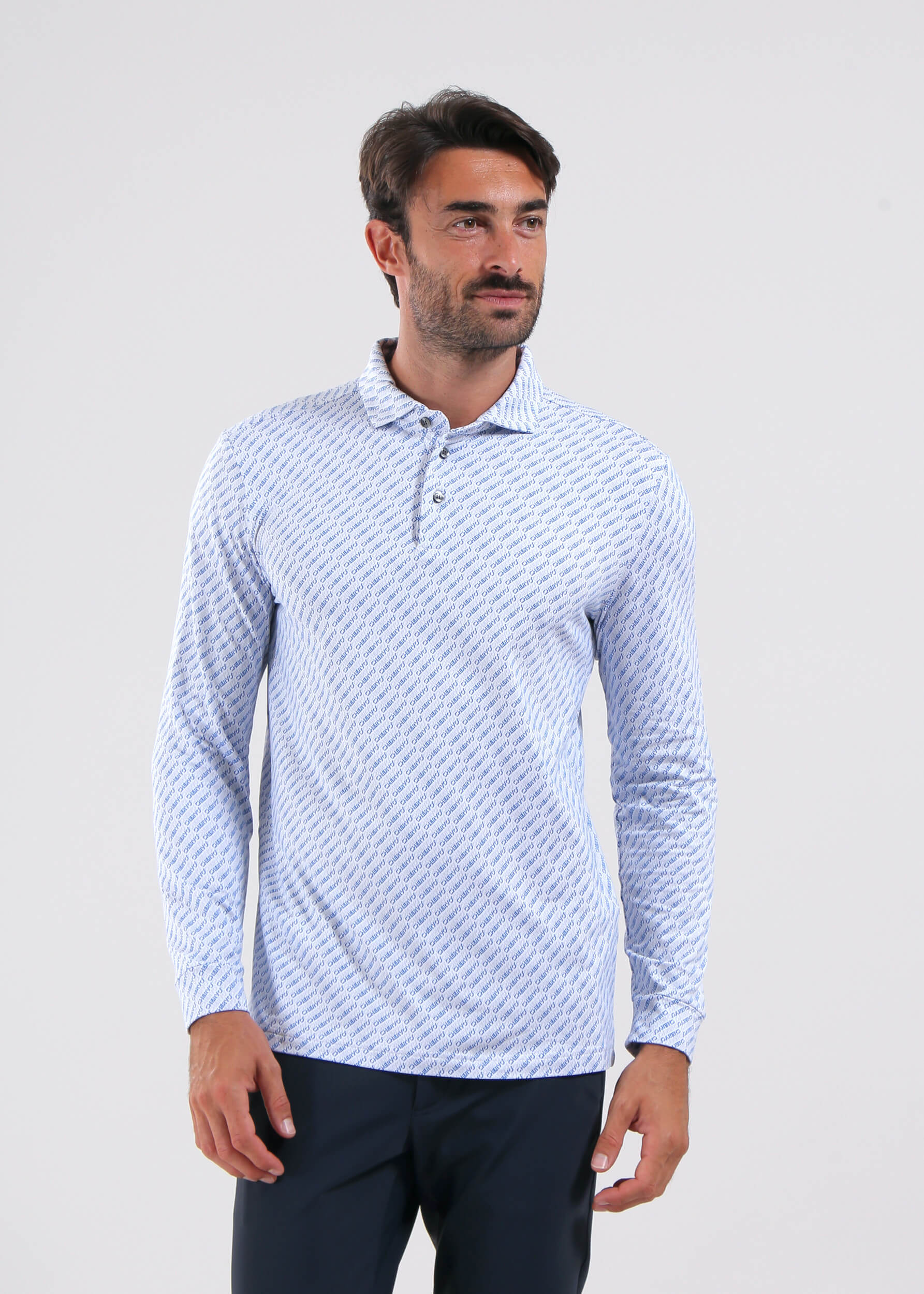ANIMATO is a long-sleeve polo in brushed jersey, designed to provide warmth and freedom of movement. The all-over “optical and logo” print adds a bold graphic touch to an essential, iconic design. A standout piece for those who want to combine performance with strong style.