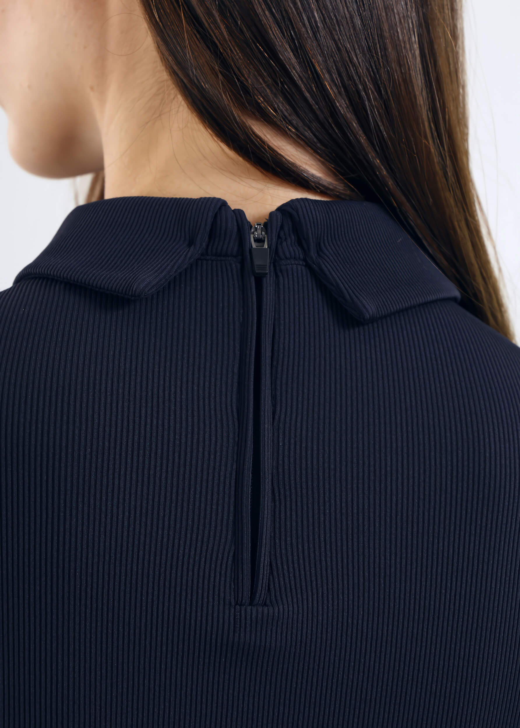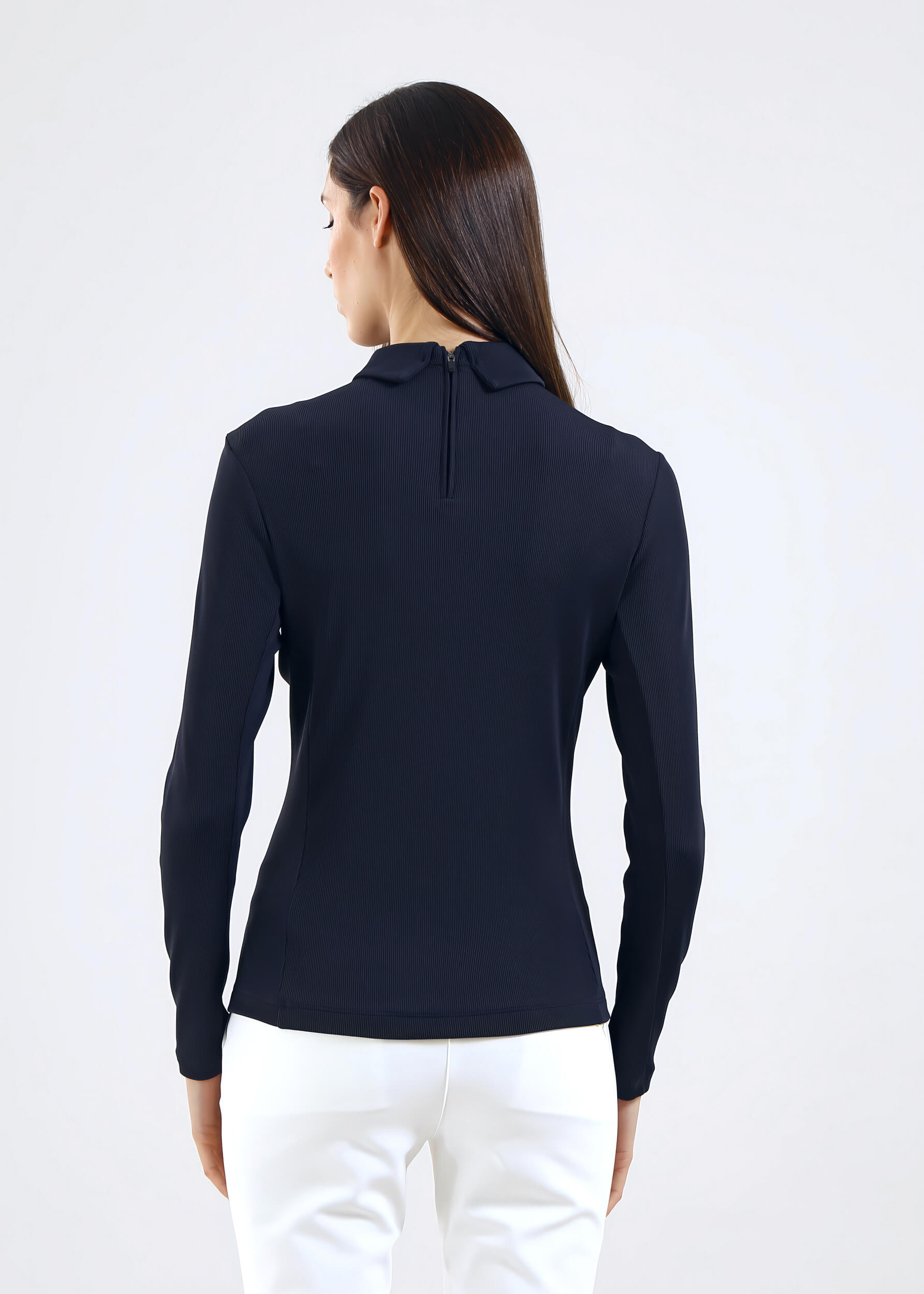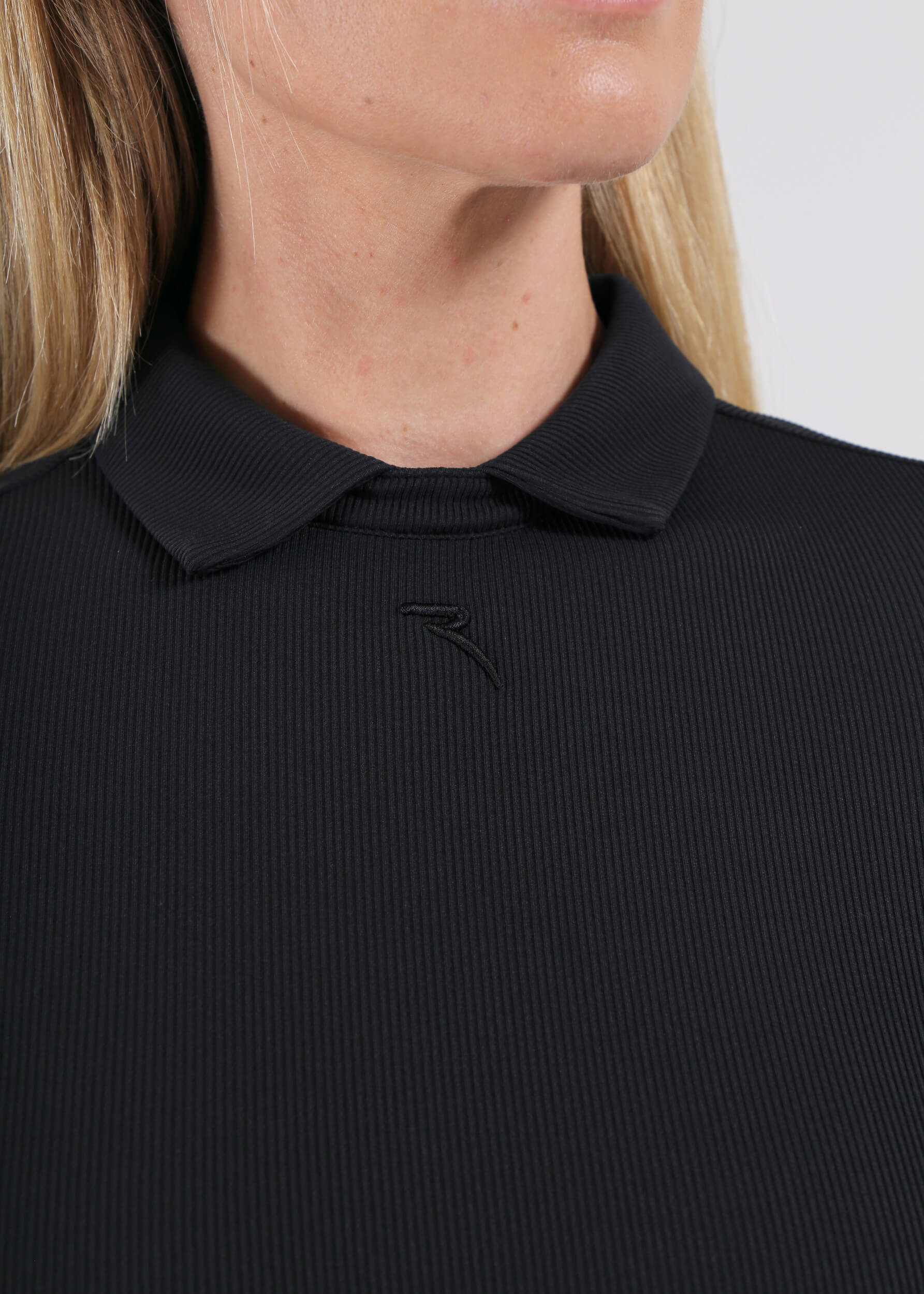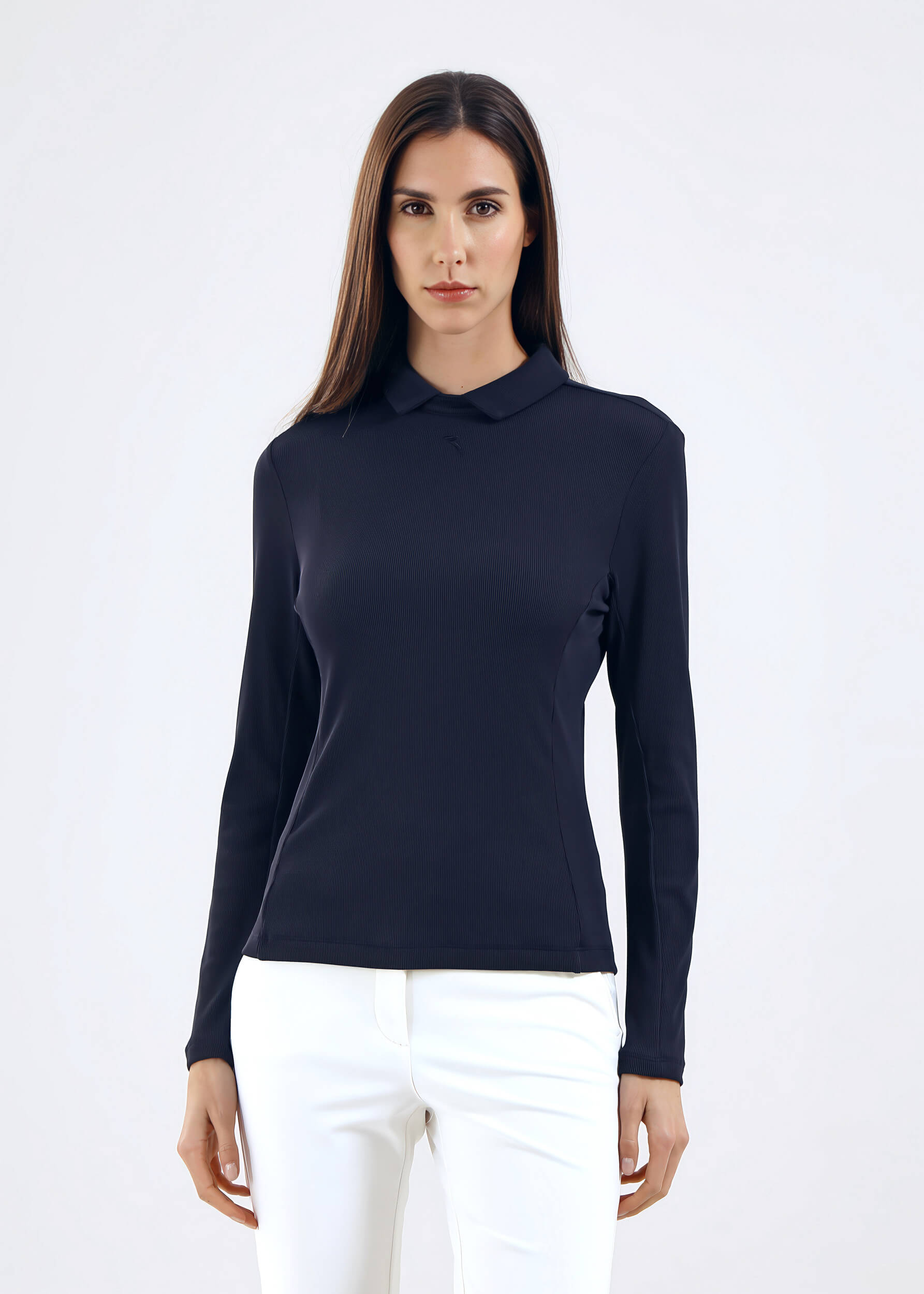ANTAGONISTA  is a long-sleeve polo crafted from ribbed Pro-Therm® stretch fabric with a lightly brushed interior for warmth and comfort. A tonal logo at the chest and a sleek back zip create a clean, modern aesthetic — a sophisticated base layer to open the season in style.
