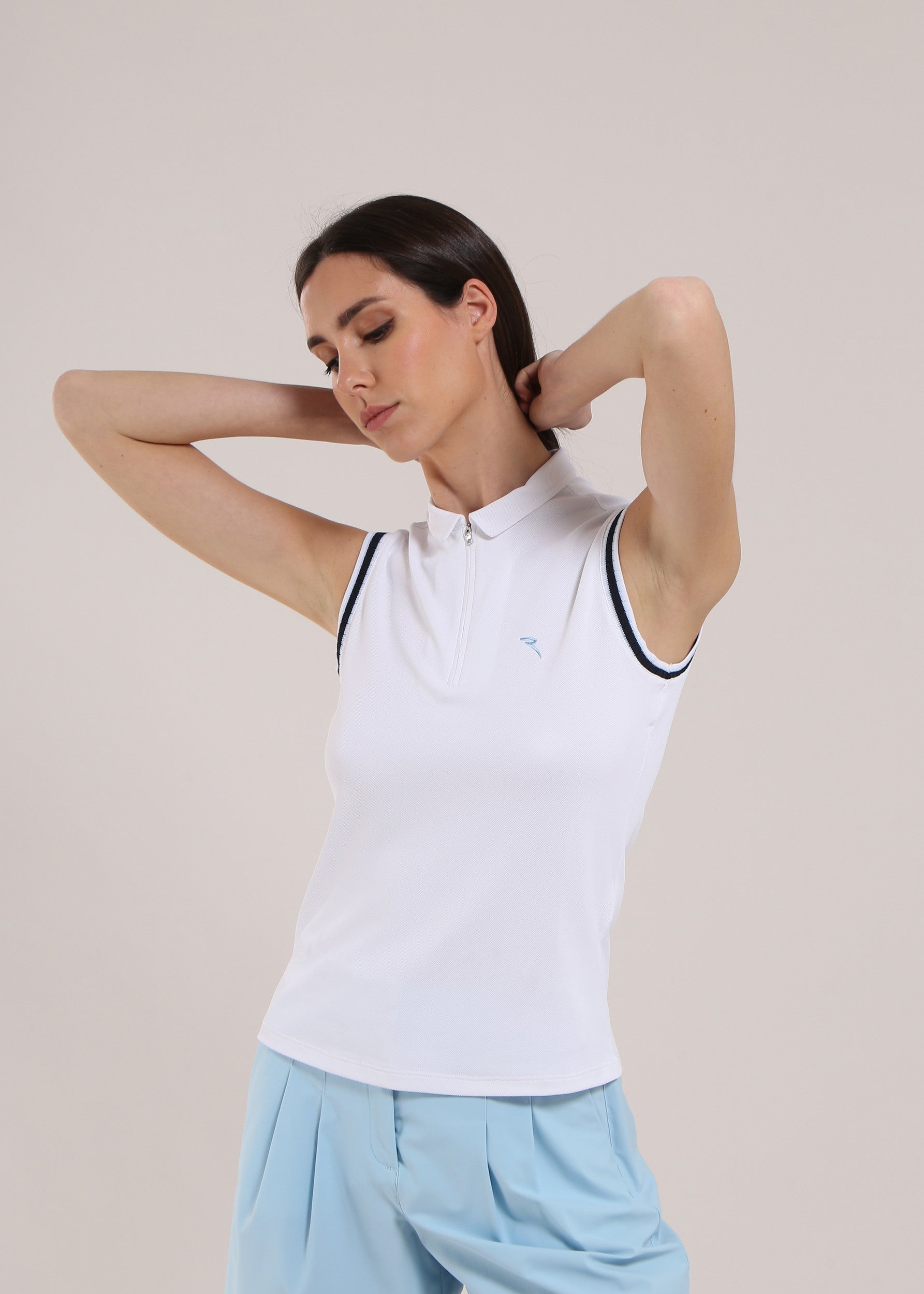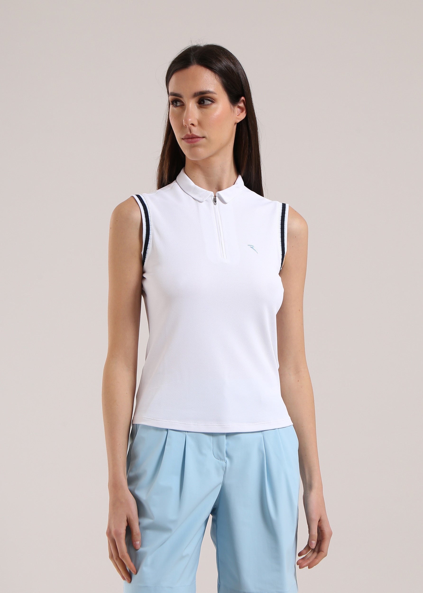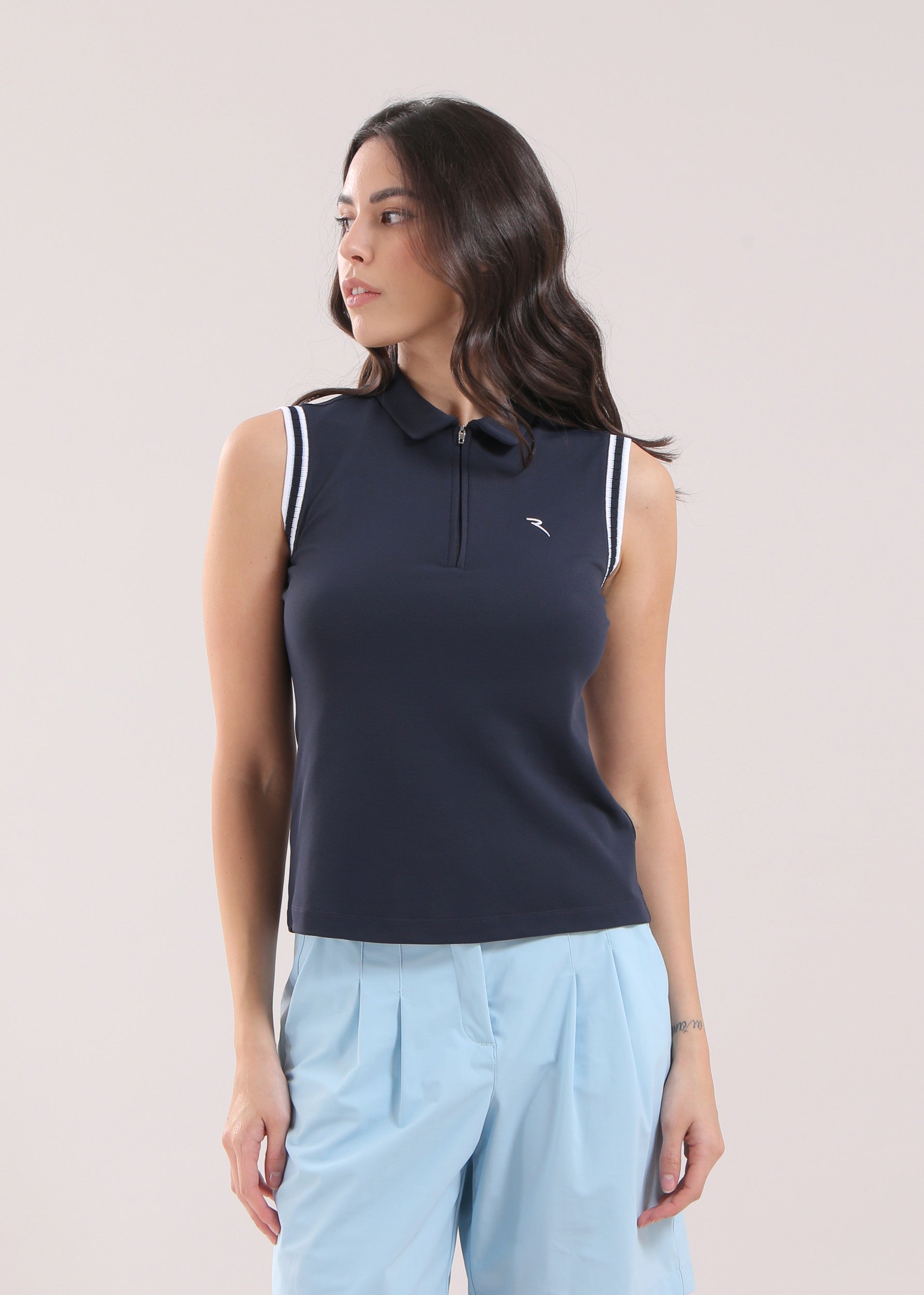 ASTUZIA is a sleeveless stretch piqué polo featuring Dry-Matic technology, designed to enhance breathability and deliver lasting comfort even on the hottest days.