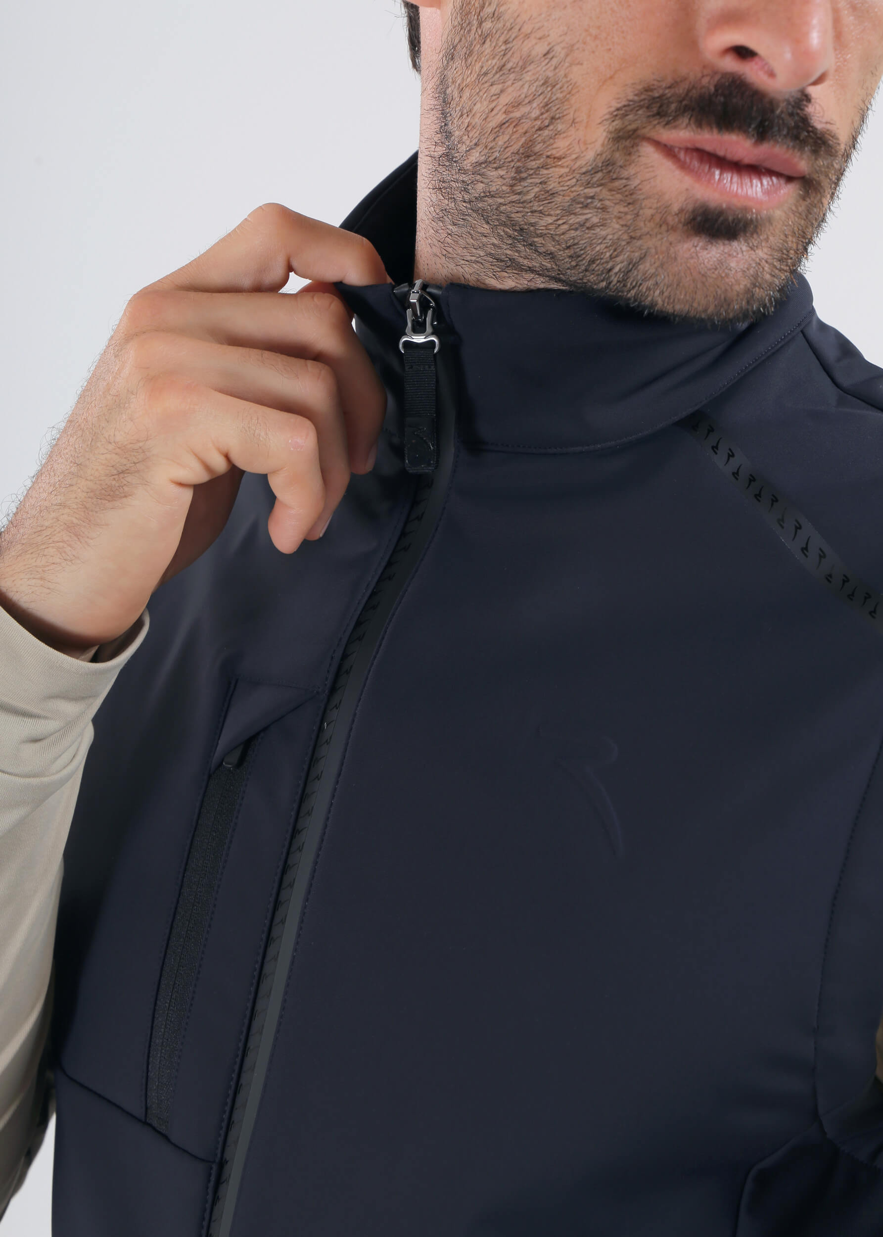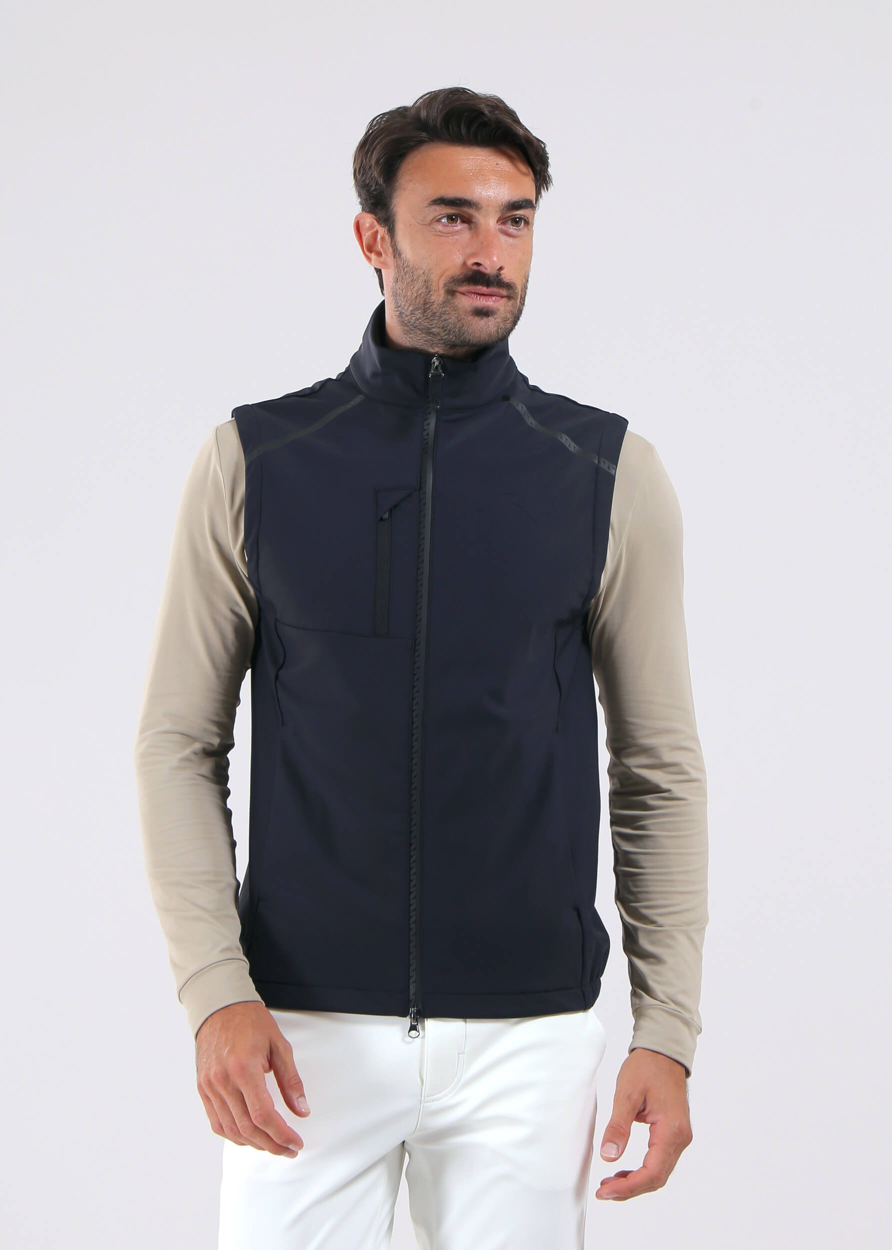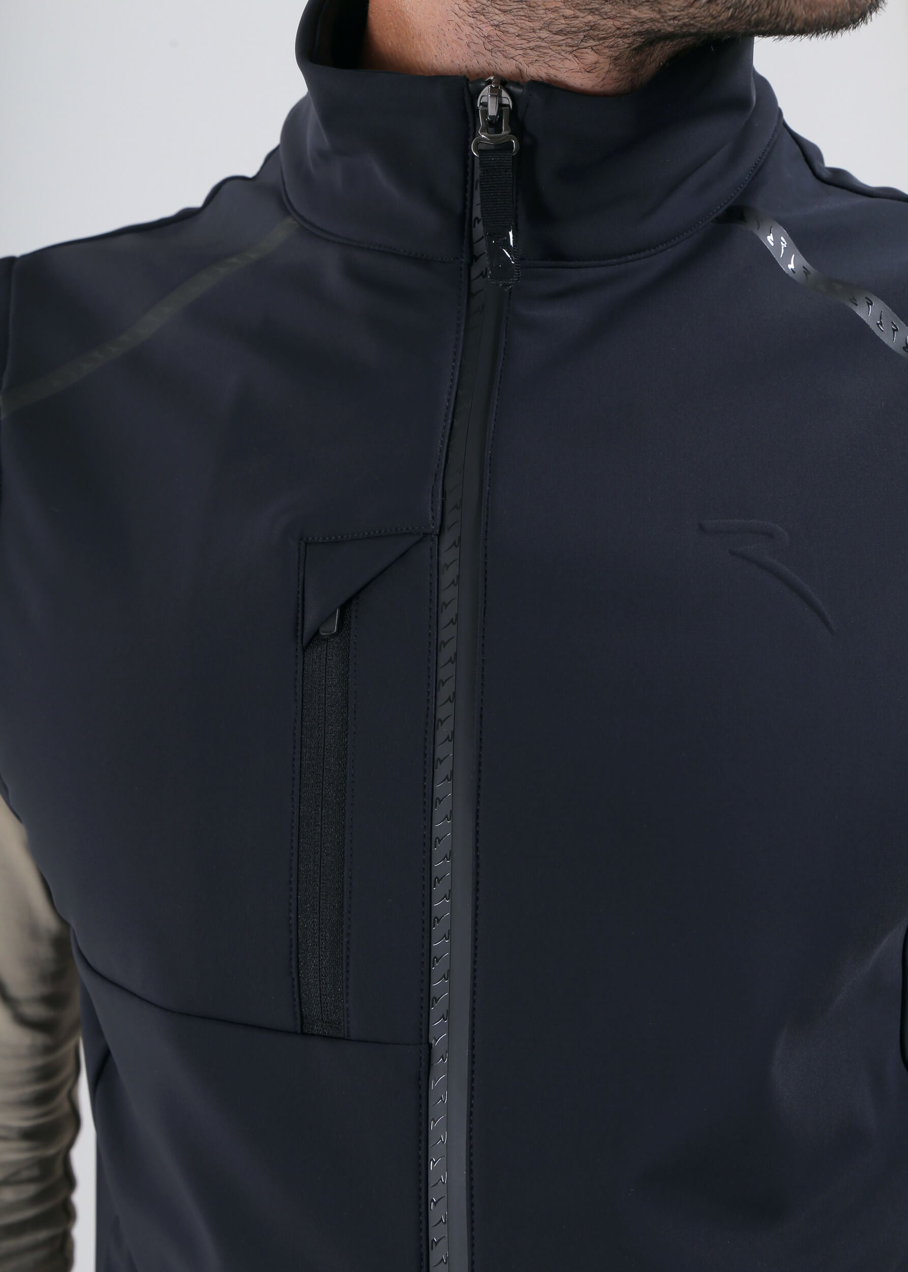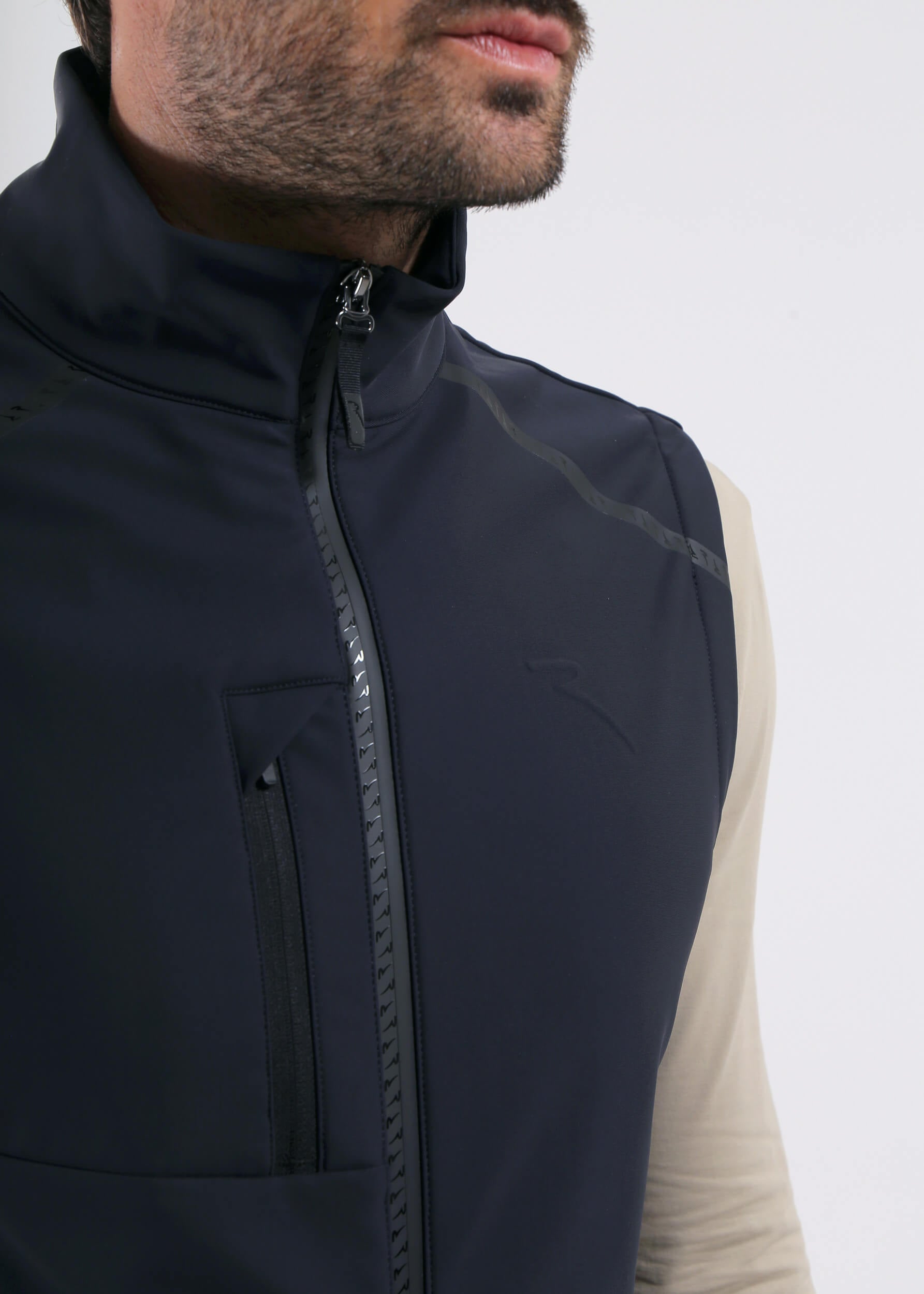 The EMPORIO vest is made from Pro-Therm® softshell with a three-layer brushed construction for warmth, windproof and water-repellent protection. Details include a reversed zip with Monogram tape, zipped pockets, and an elasticated hem for freedom of movement. A clean, sporty layer for any condition.