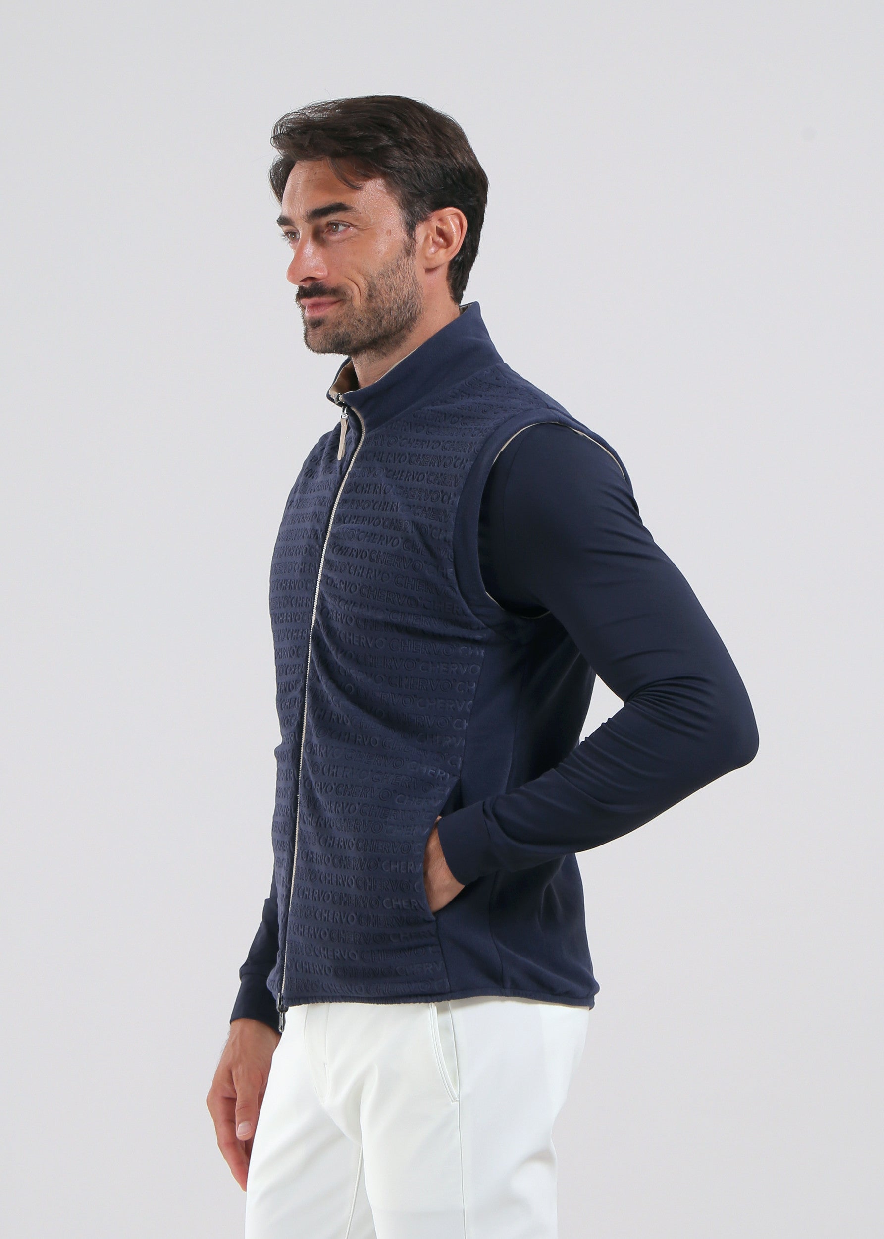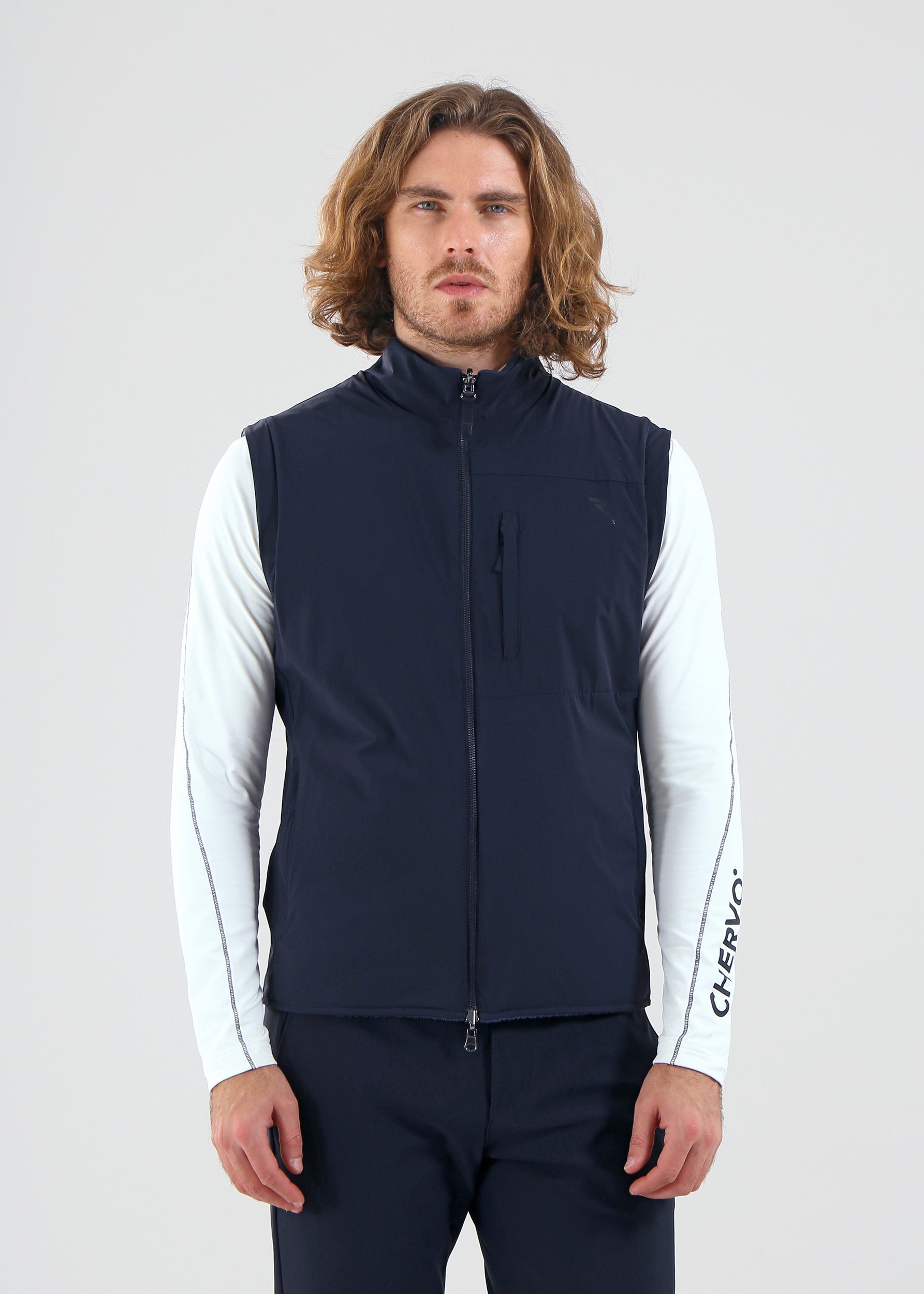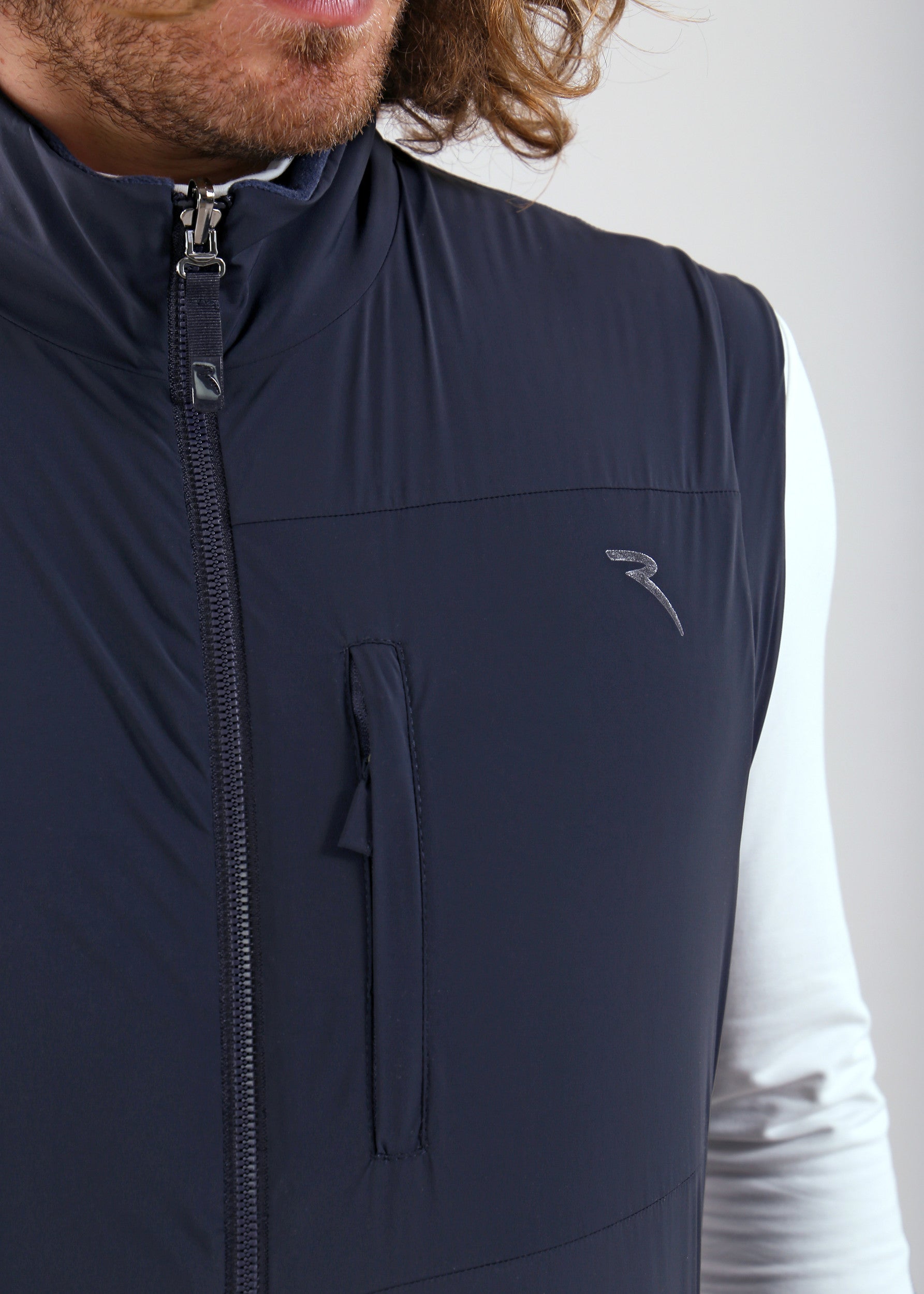 Engineer is a Pro-Therm reversible vest with a functional design: one side in windproof and water-repellent 4-way stretch nylon, the other in soft stretch polar fleece with a logo texture.