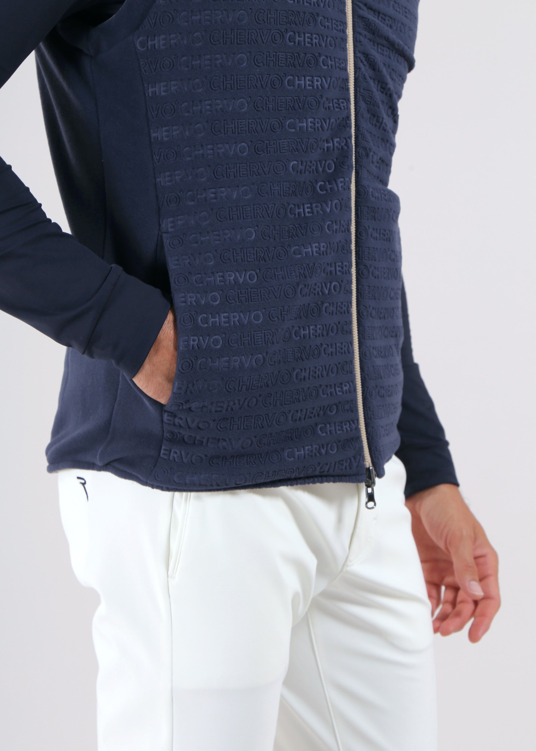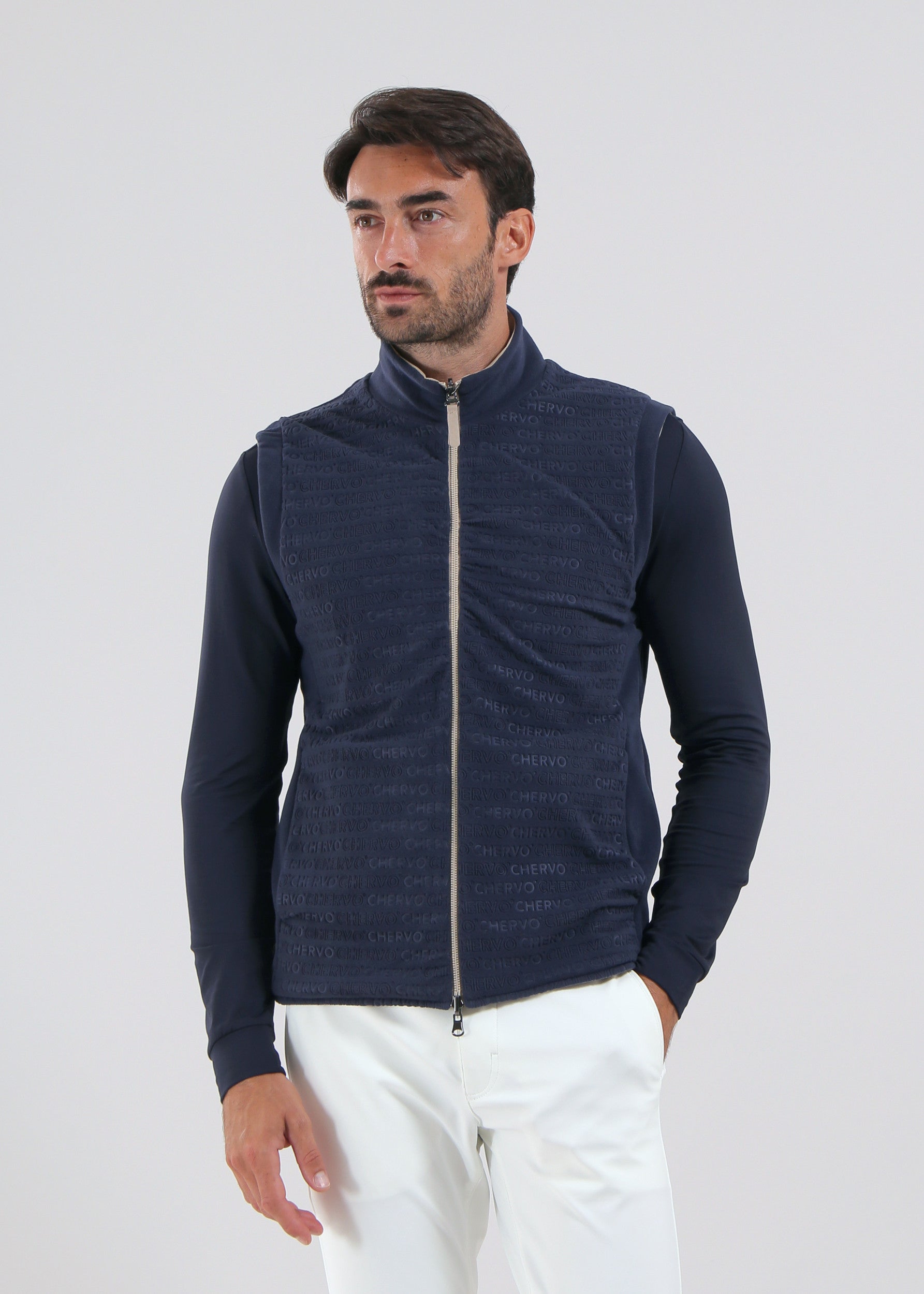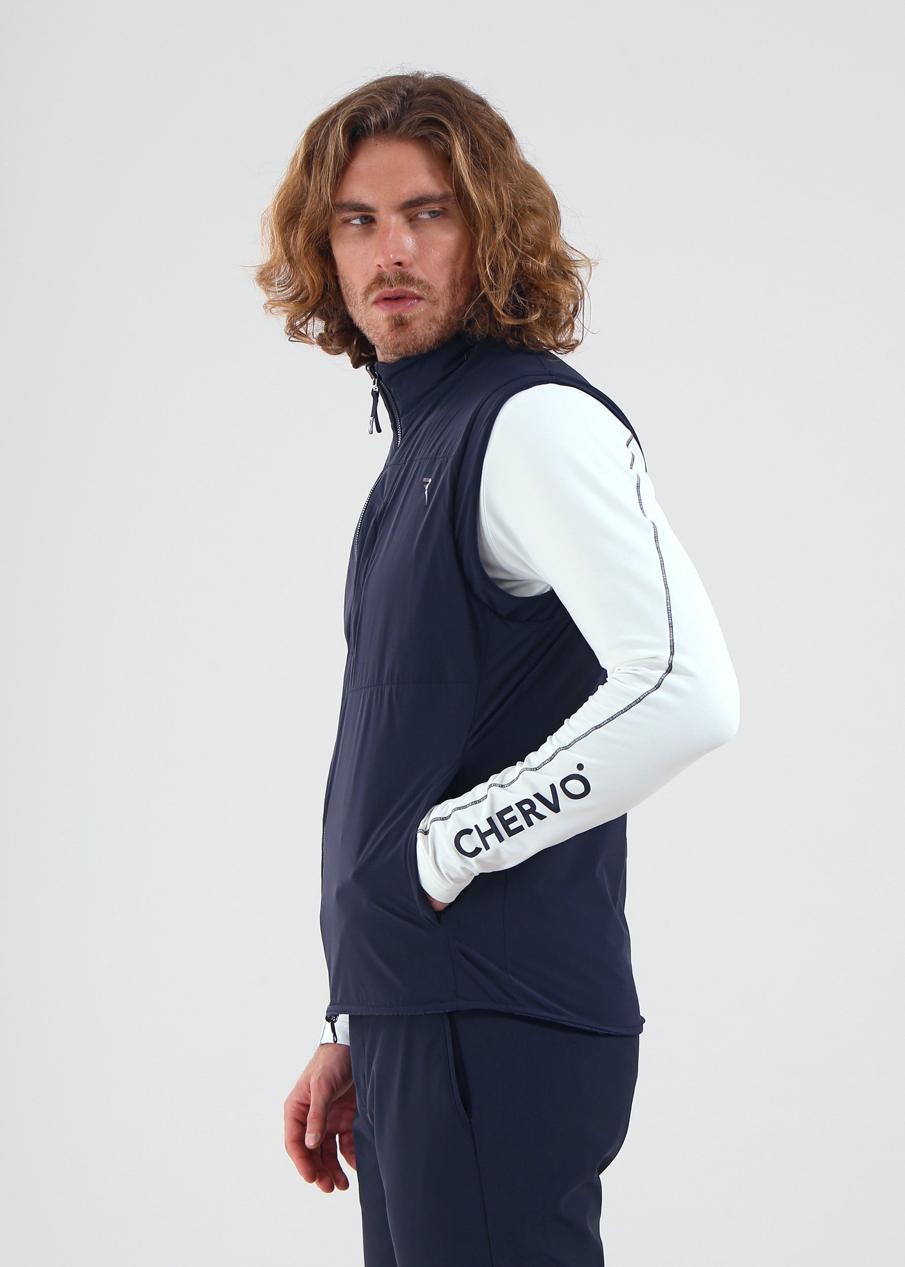Engineer is a Pro-Therm reversible vest with a functional design: one side in windproof and water-repellent 4-way stretch nylon, the other in soft stretch polar fleece with a logo texture.