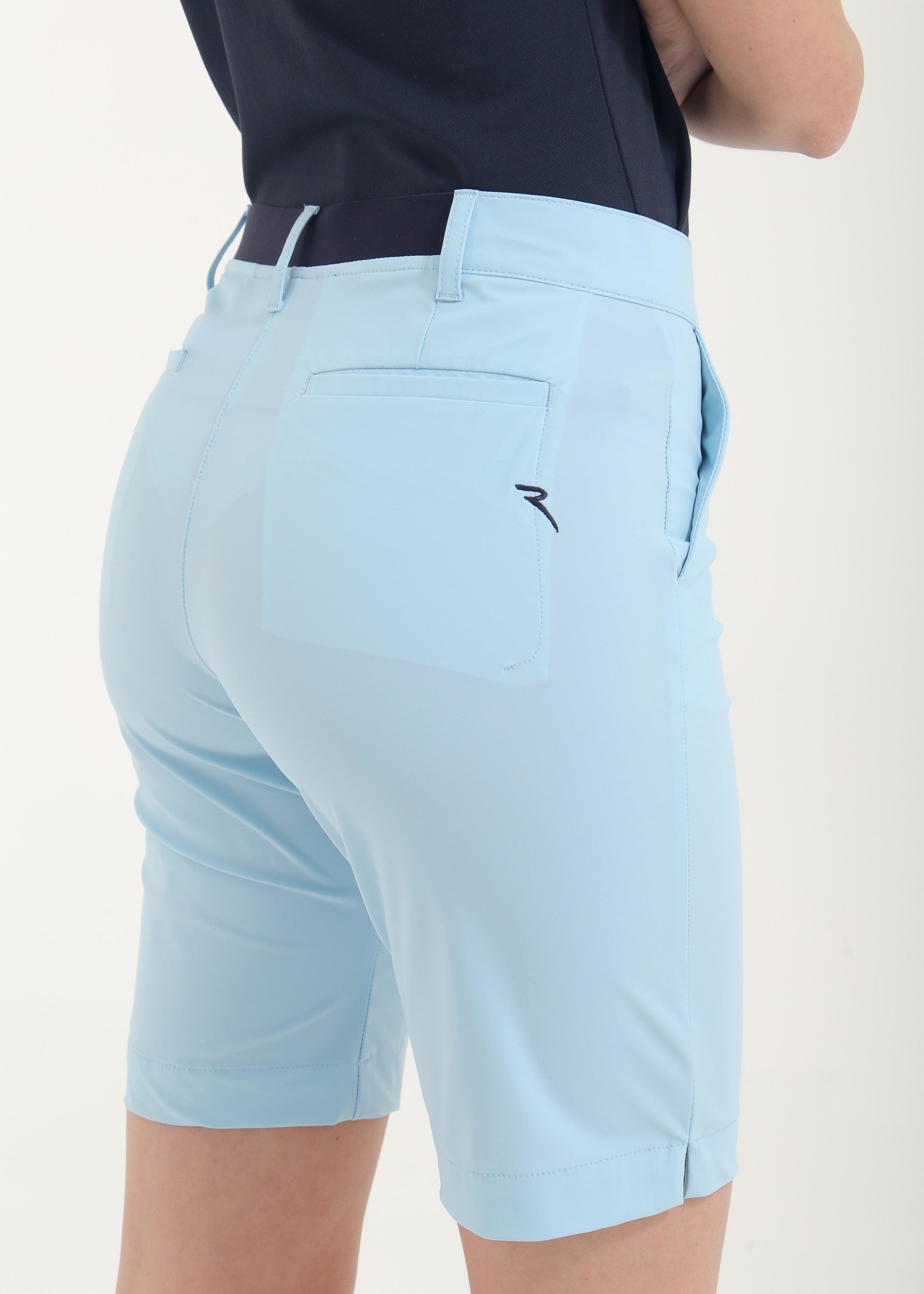 GENEROSA is a women’s bermuda short made from “Power Swing” 4-way super stretch fabric with Sunblock® and Dry-Matic® technologies, designed to ensure freedom of movement, breathability, and UV protection during play. The fabric is cool to the touch, wrinkle-resistant, and quick-drying for lasting comfort, maintaining an excellent fit even on active days. A high waist and straight-leg cut create a balanced silhouette, making it a clean, versatile style for the golf course.