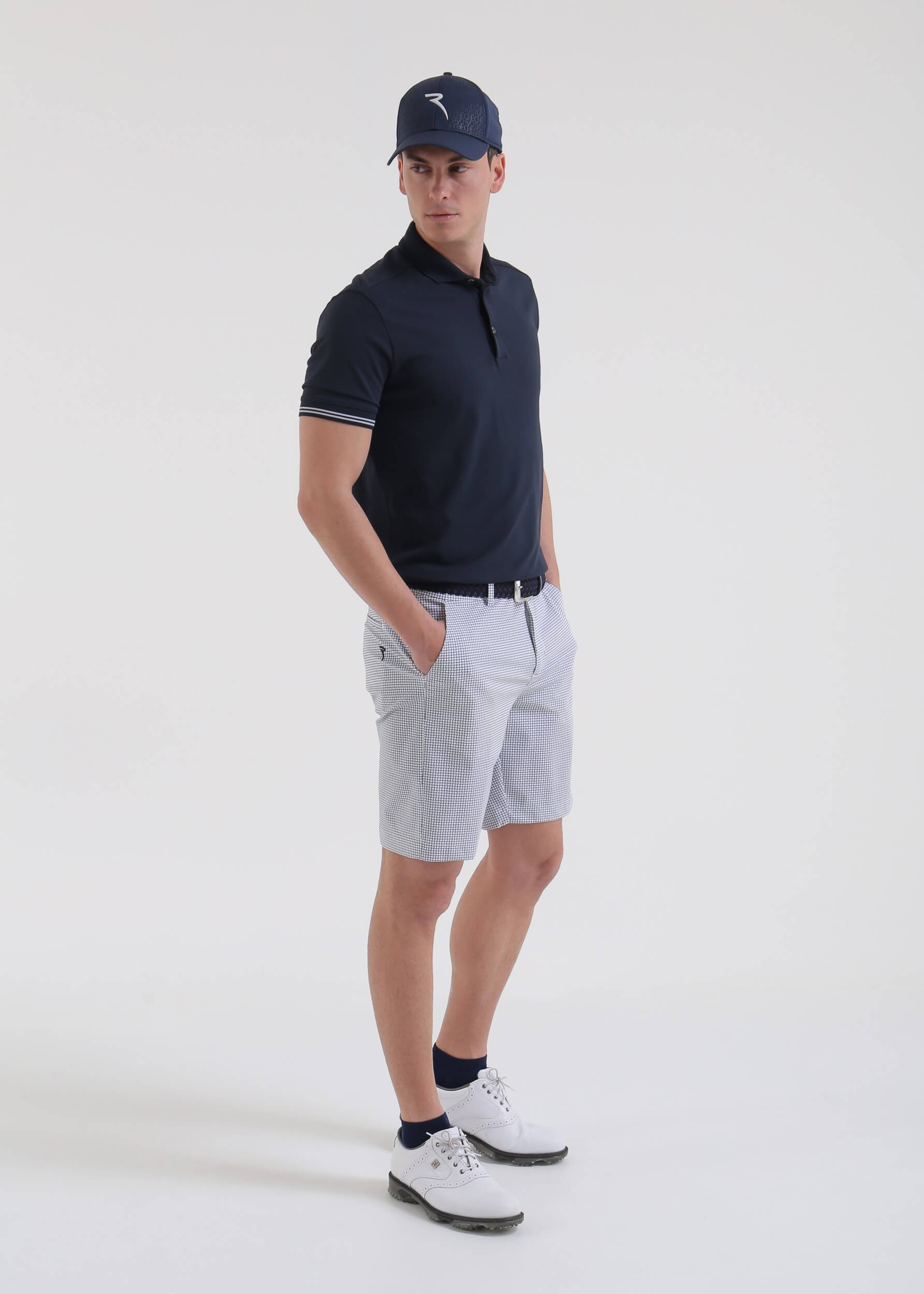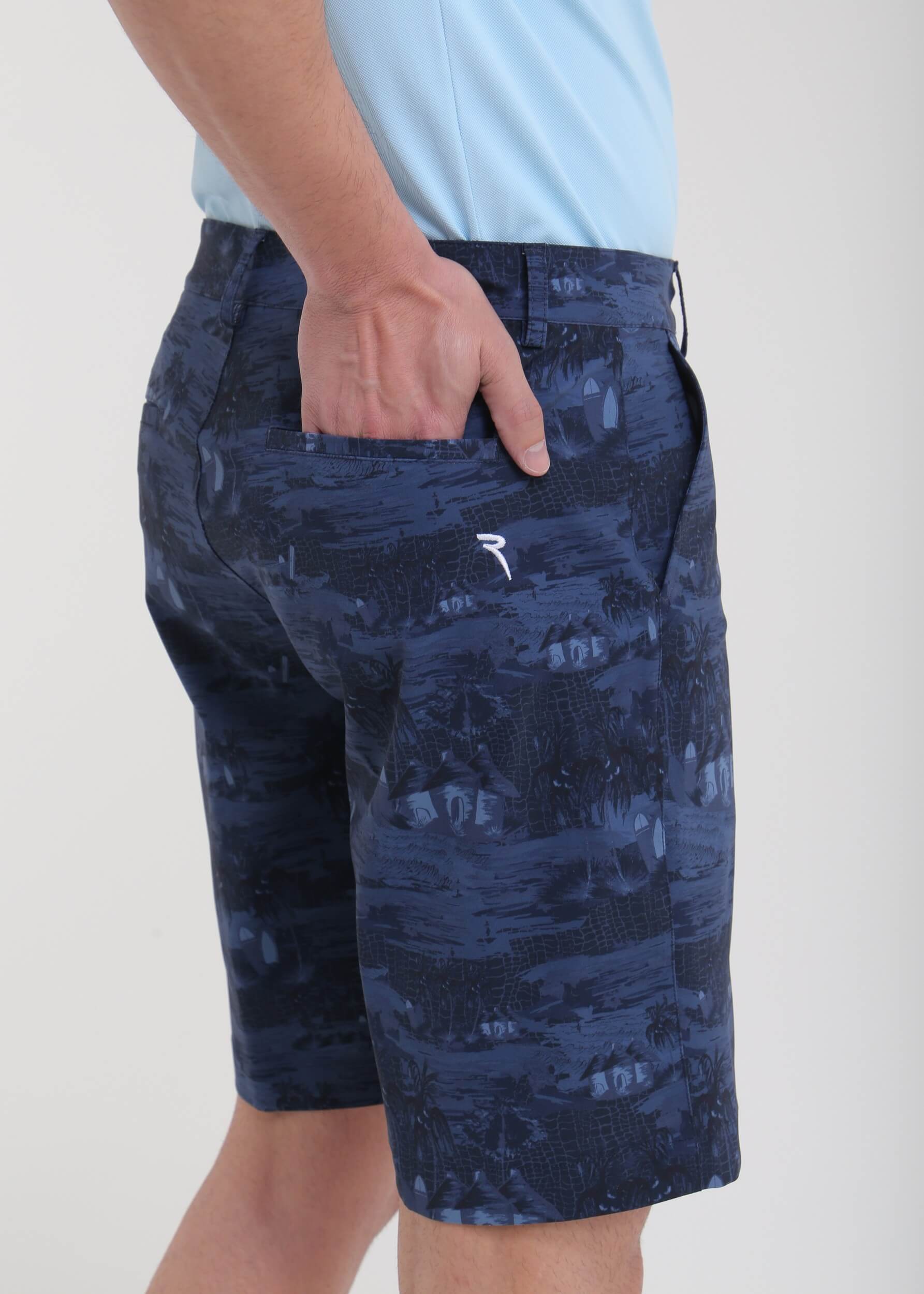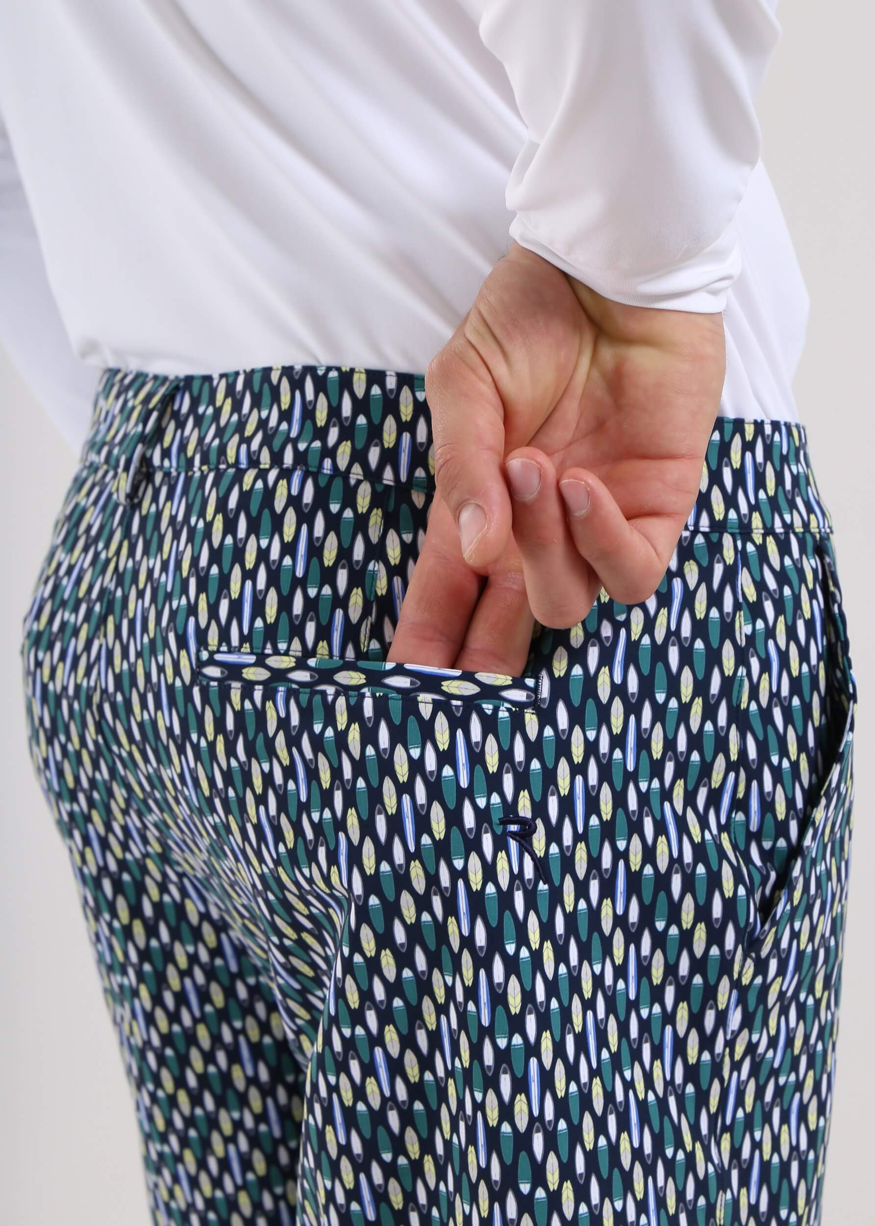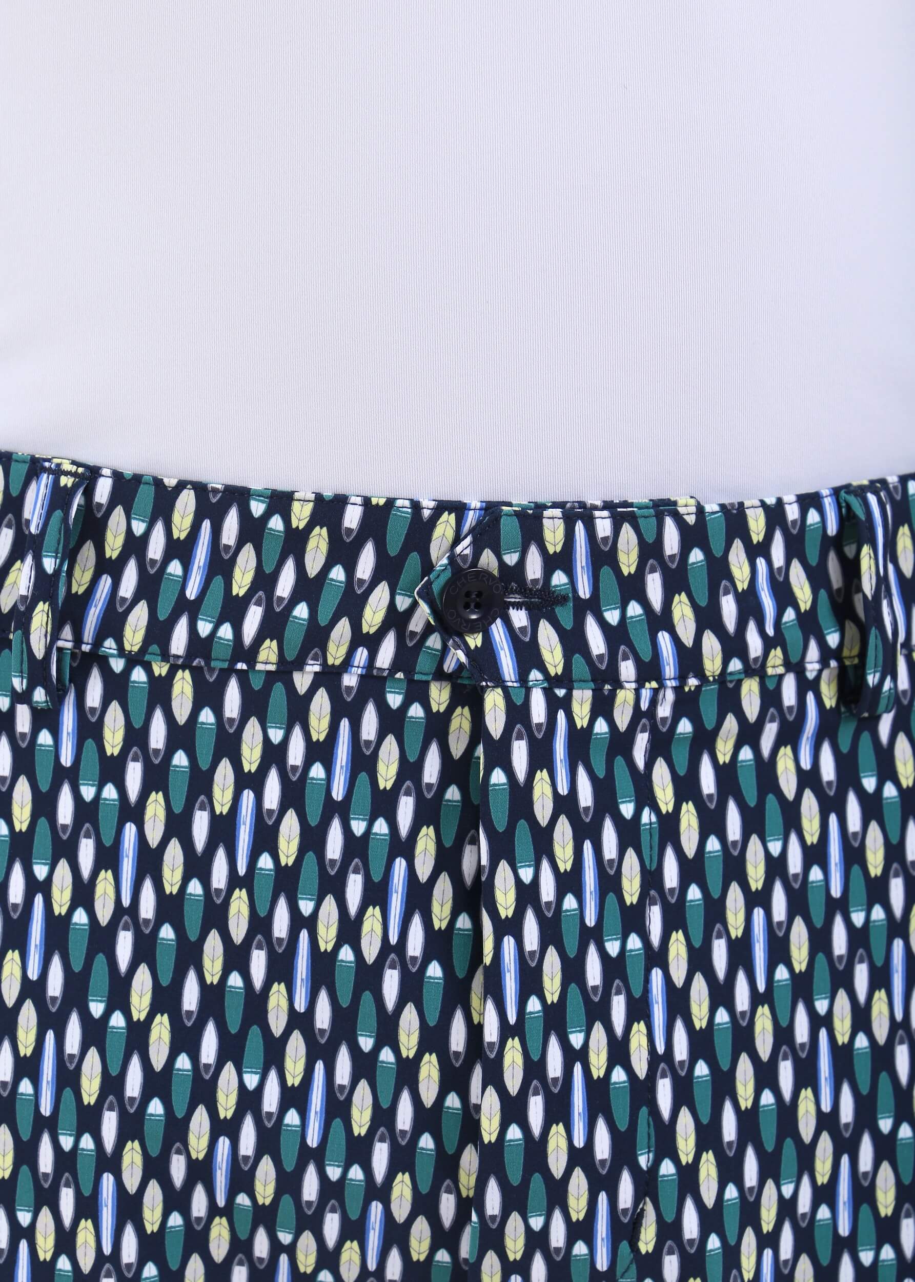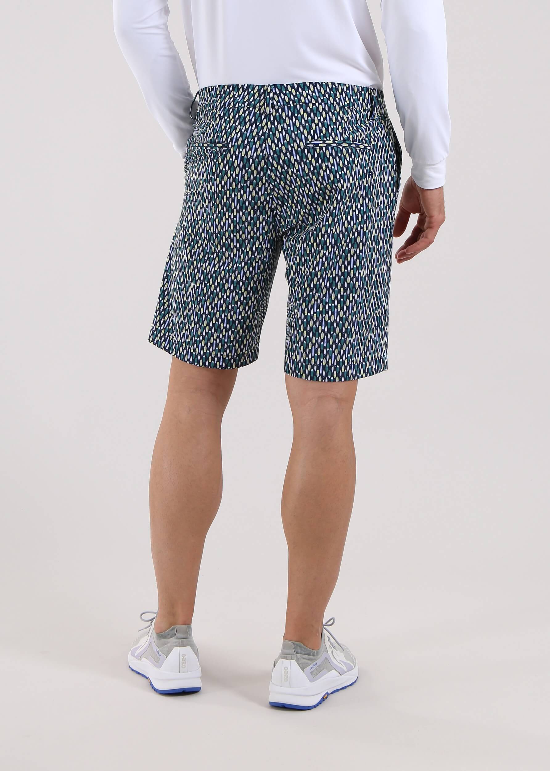 GHIANDA is a men’s golf bermuda made from 4-way super stretch fabric with UV protection and moisture management, featuring an all-over print designed in-house. The wrinkle-resistant fabric, made in Italy with recycled polyamide yarn, delivers high performance, lightweight comfort, and a consistently fresh feel even on the warmest days. Distinctive and versatile, it combines functionality and style on the golf course.