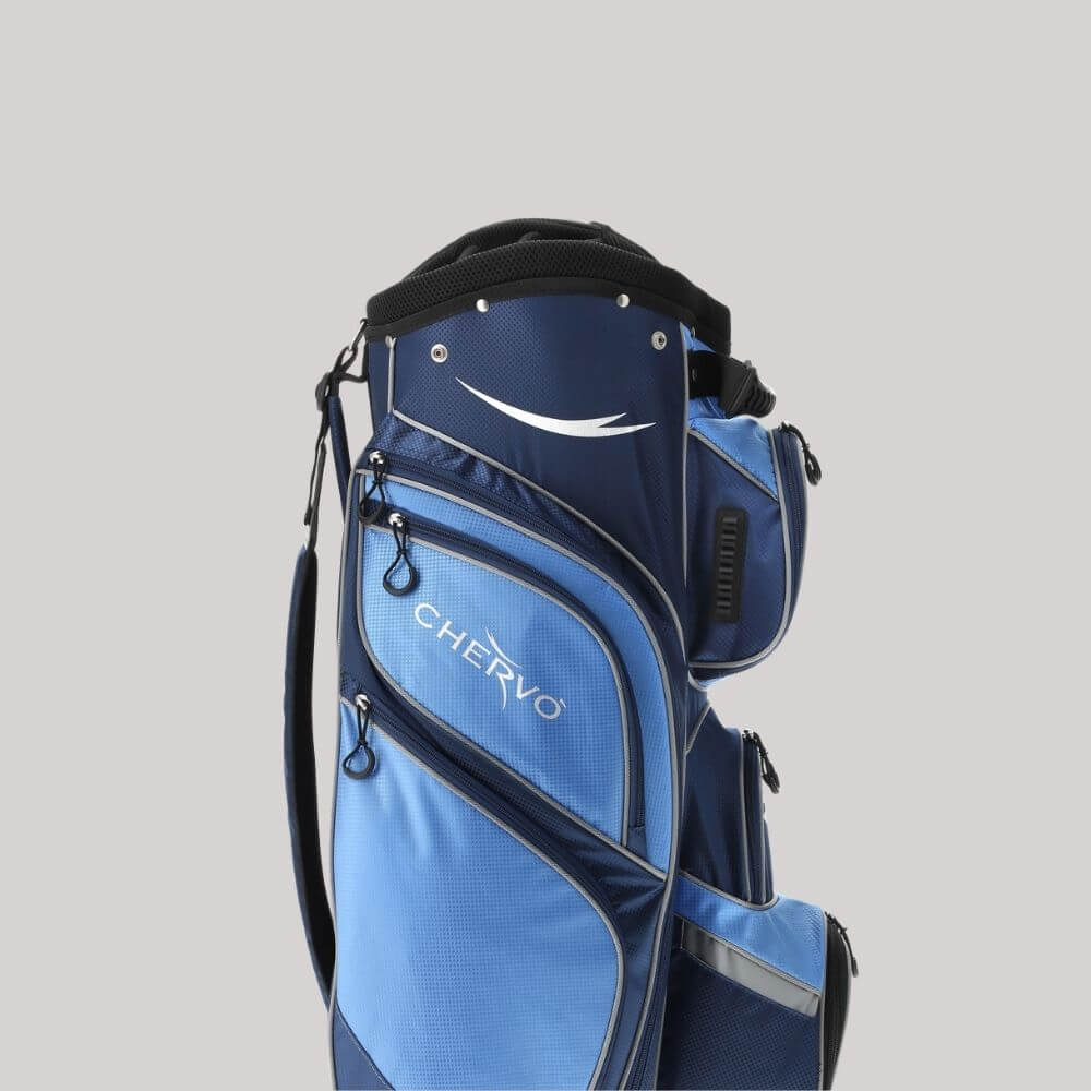Meet the GRAVITY, your new favorite golf bag. This unisex golf bag is designed with golf cart transport in mind; it boasts a clever organized system featuring 14 sections, 9 pockets and 2 thermal compartments. The padded shoulder straps and soft handle makes lifting and moving it a breeze. From the Velcro glove holder to the scorecard and rangefinder pocket, the layout has been designed to satisfy every golfer's need. The bottom pocket can be embroidered and customized.