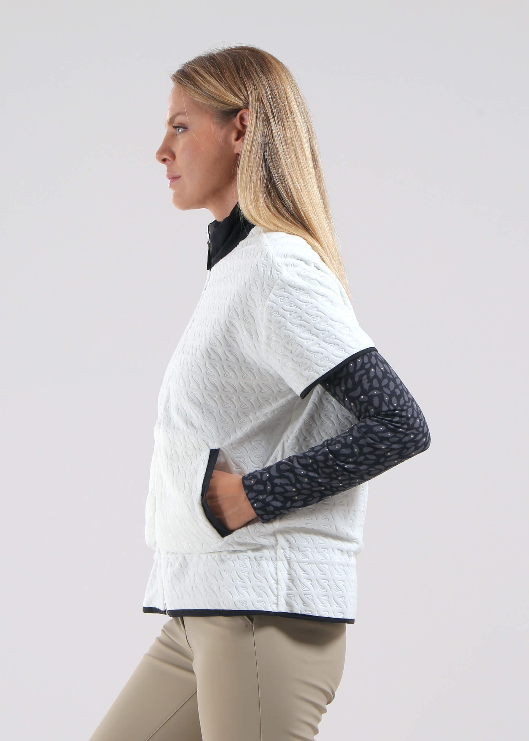 MADEMOISELLE is a reversible short-sleeve vest in stretch 4-Way fabric, windproof and water-repellent on the outside with a soft brushed fleece interior. Warm, versatile, and finished with four functional pockets, it’s designed for comfort and freedom of movement on cold days.