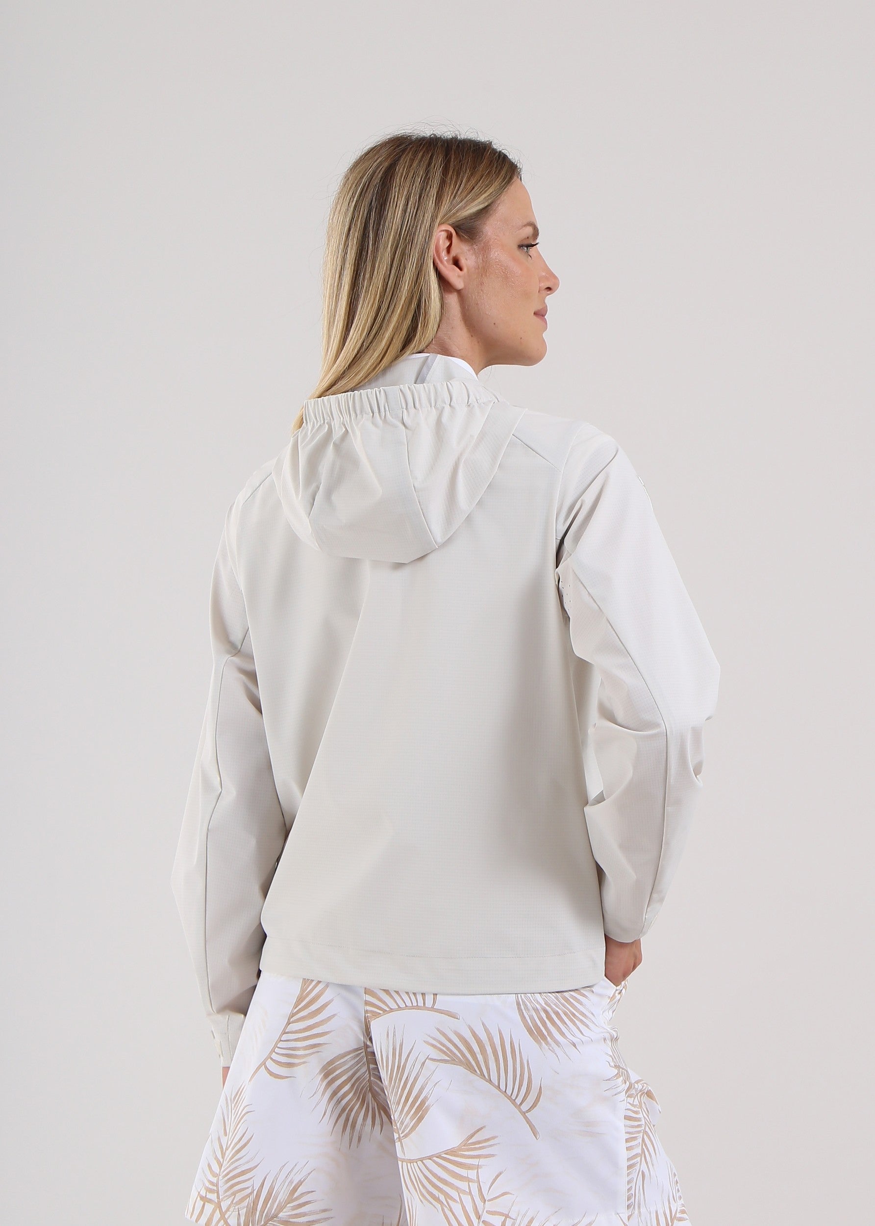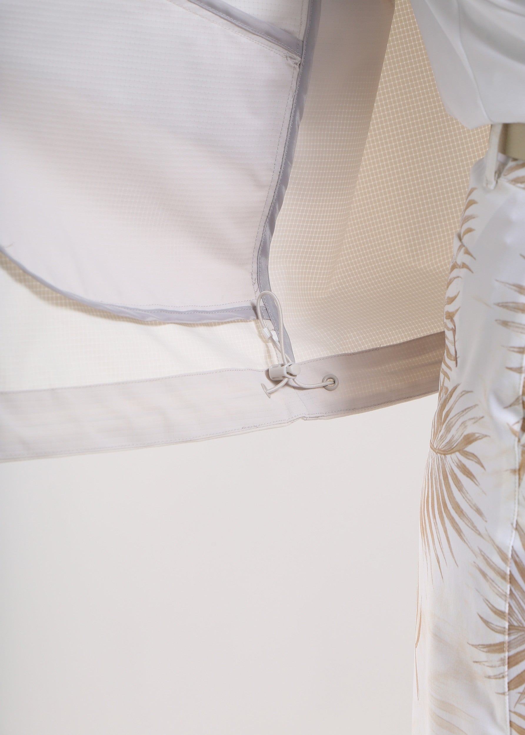 MODICA is a women’s windproof and water-repellent jacket made from Wind-Lock® fabric with Aqua-Drop® treatment, designed for comfort, style, and freedom of movement. The stretch ripstop technical fabric provides lightweight durability, while the water-repellent finish helps protect from moisture while maintaining breathability. A hood, zip pockets, two-way front zipper, underarm perforations, and adjustable cuffs complete a sporty, versatile design ideal for the golf course or everyday wear.