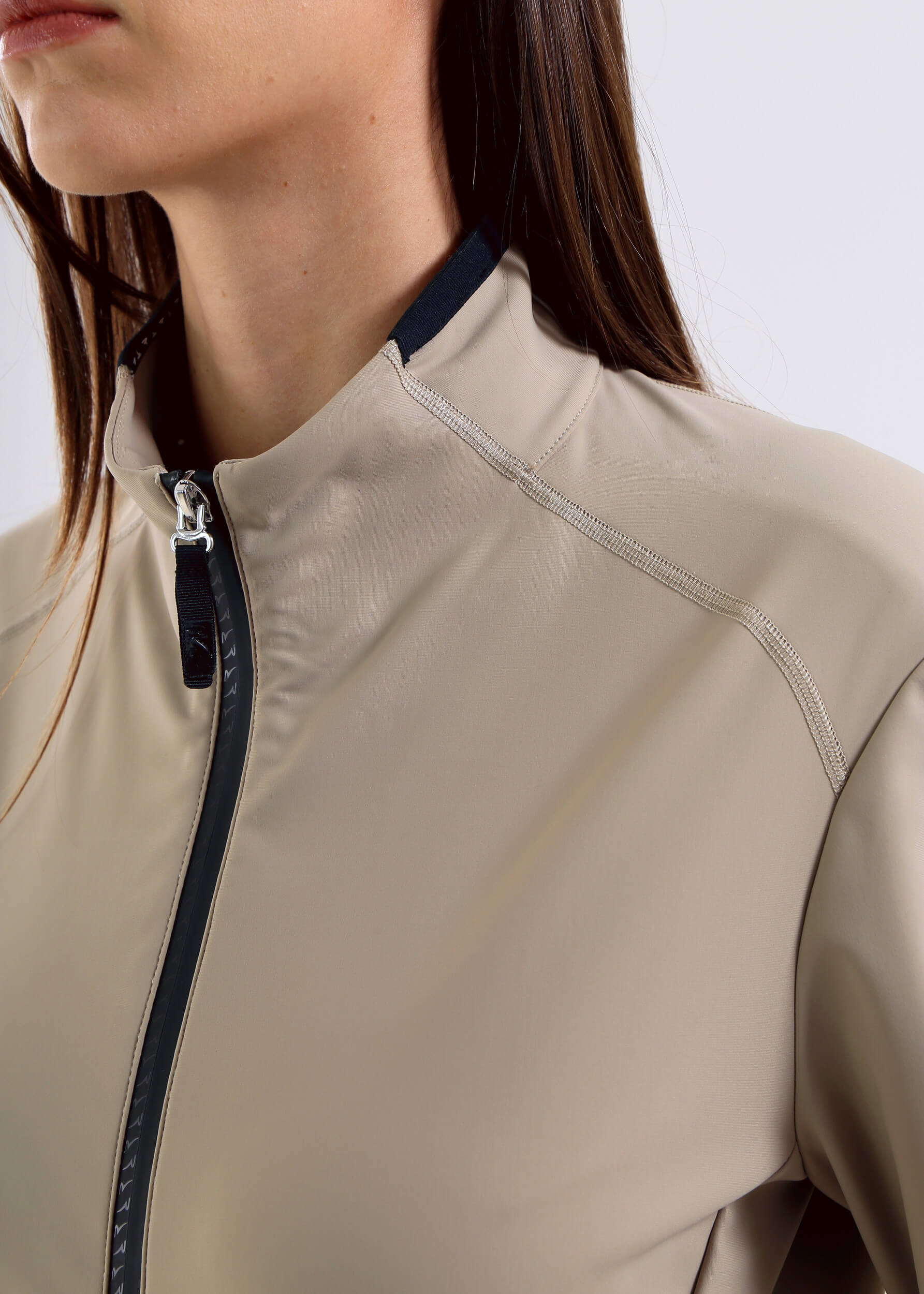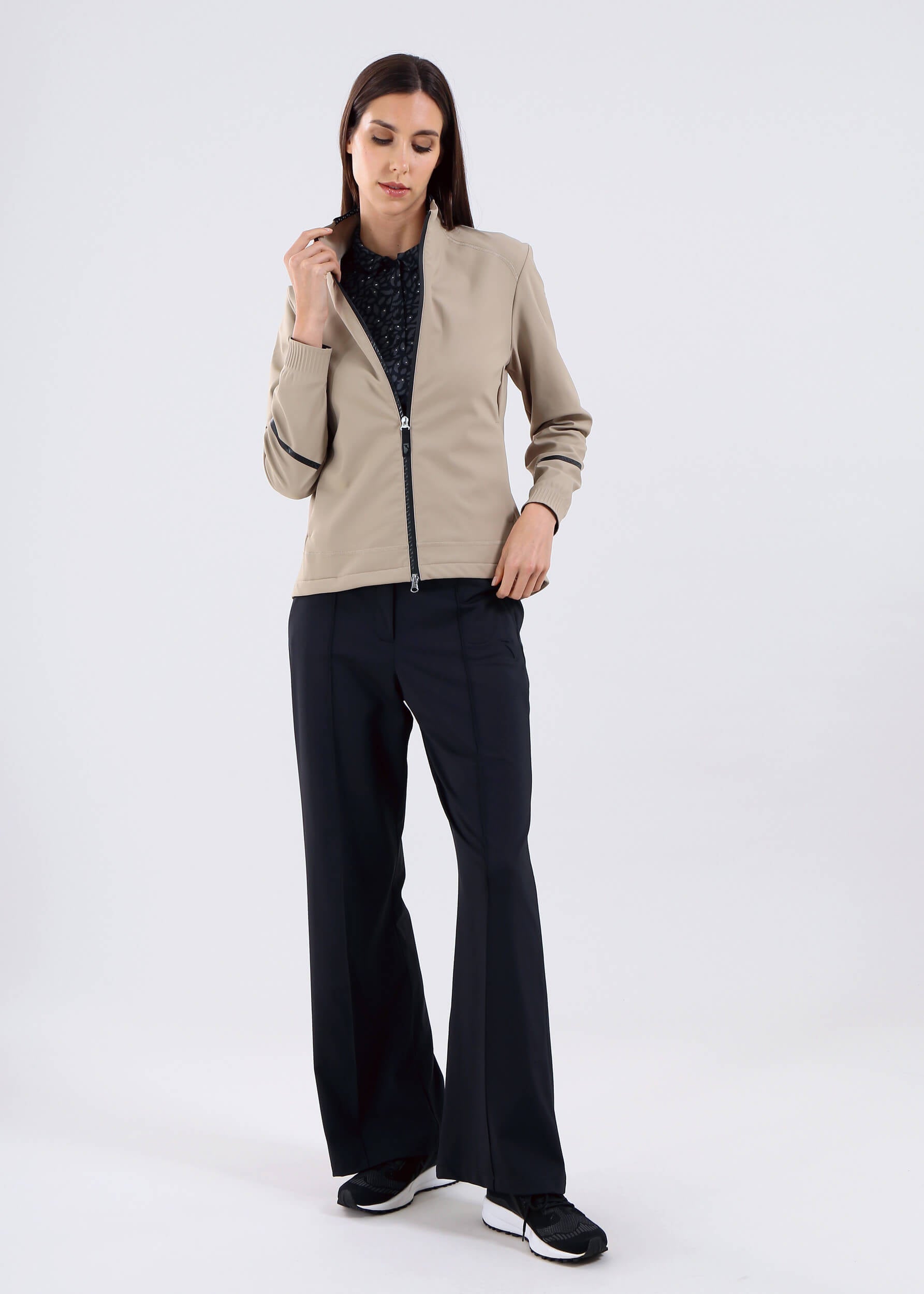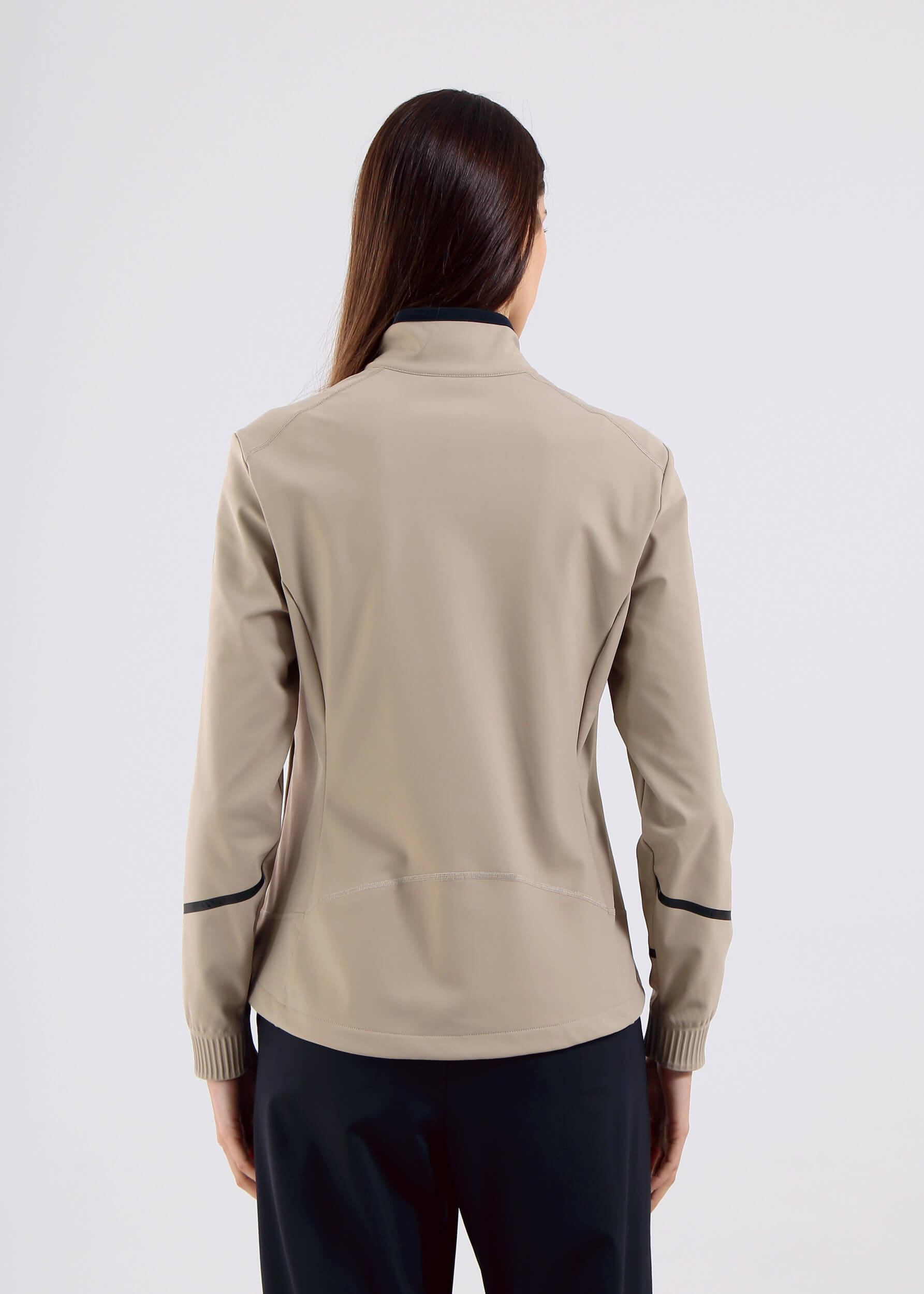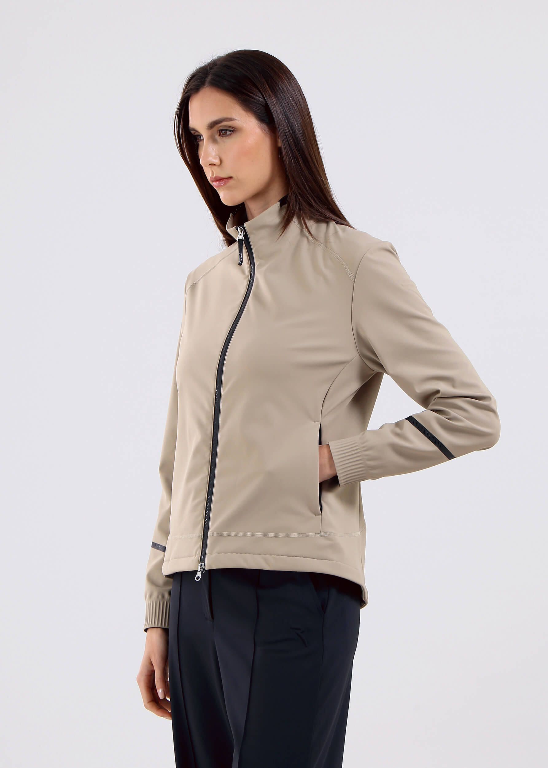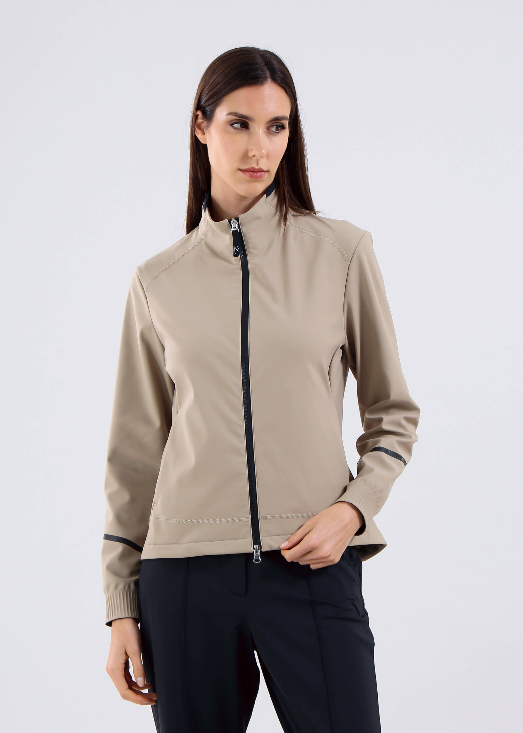 MODISTA is a three-layer softshell jacket designed for technical performance with a minimal, elegant look. Warm and soft inside, it allows full freedom of movement while staying windproof and water-repellent. Finished with a waterproof monogram zip, seamless stretch hem, and two-way closure, it’s a versatile essential for transitional weather.