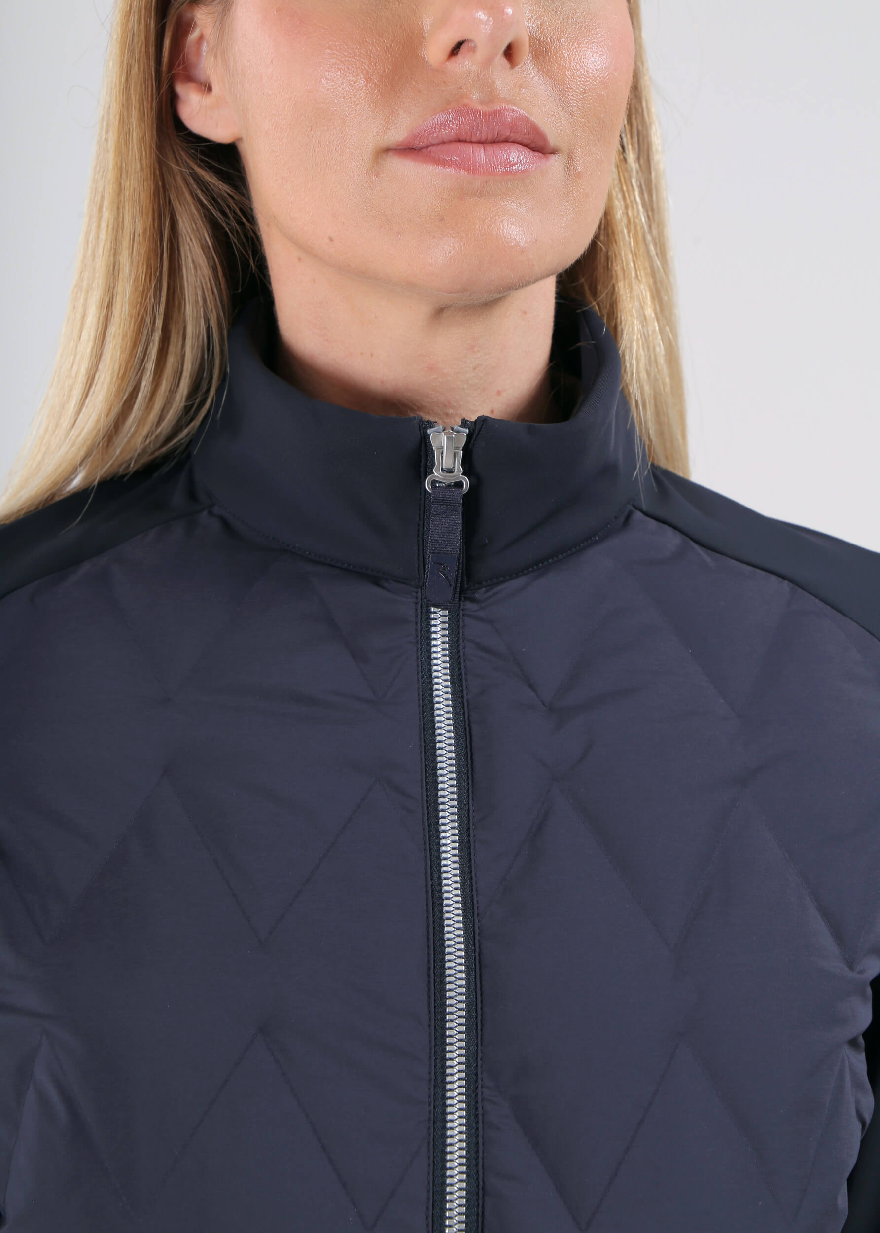 MUSICA is a three-layer Pro-Therm® stretch softshell jacket, windproof and water-repellent for cold conditions. Diamond-quilted insulation adds warmth without weight, while a seamless stretch hem, two-way zip, and zip pockets complete its clean, technical design.