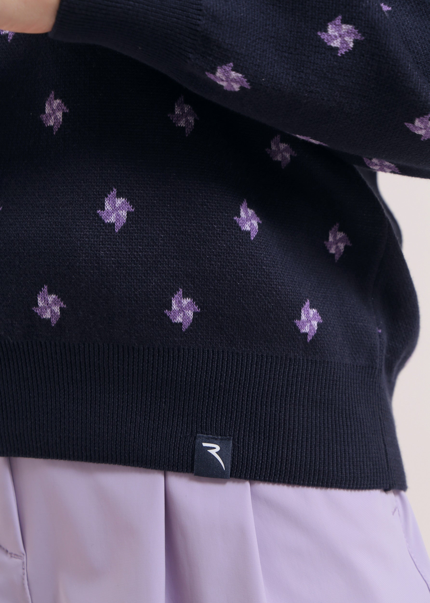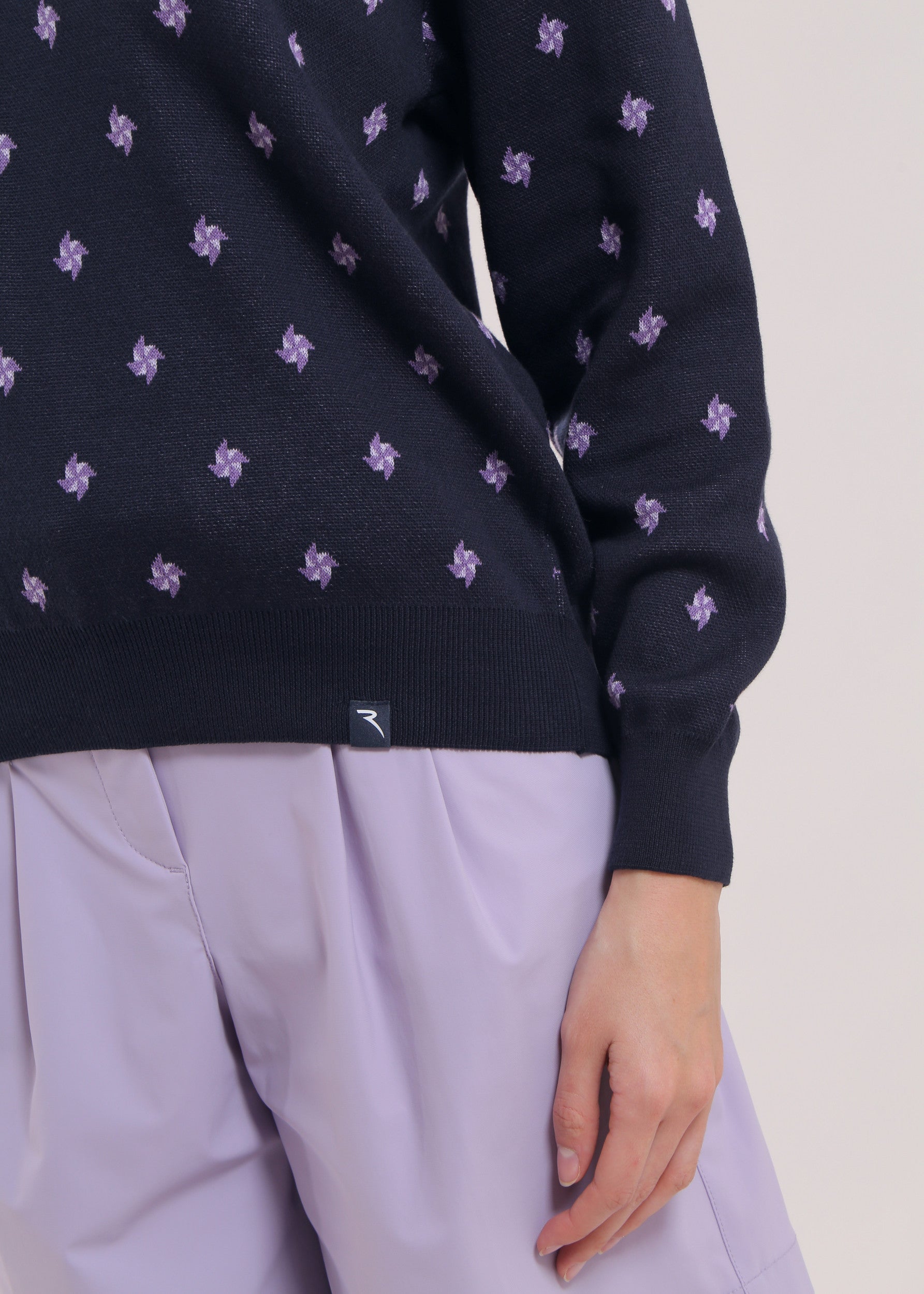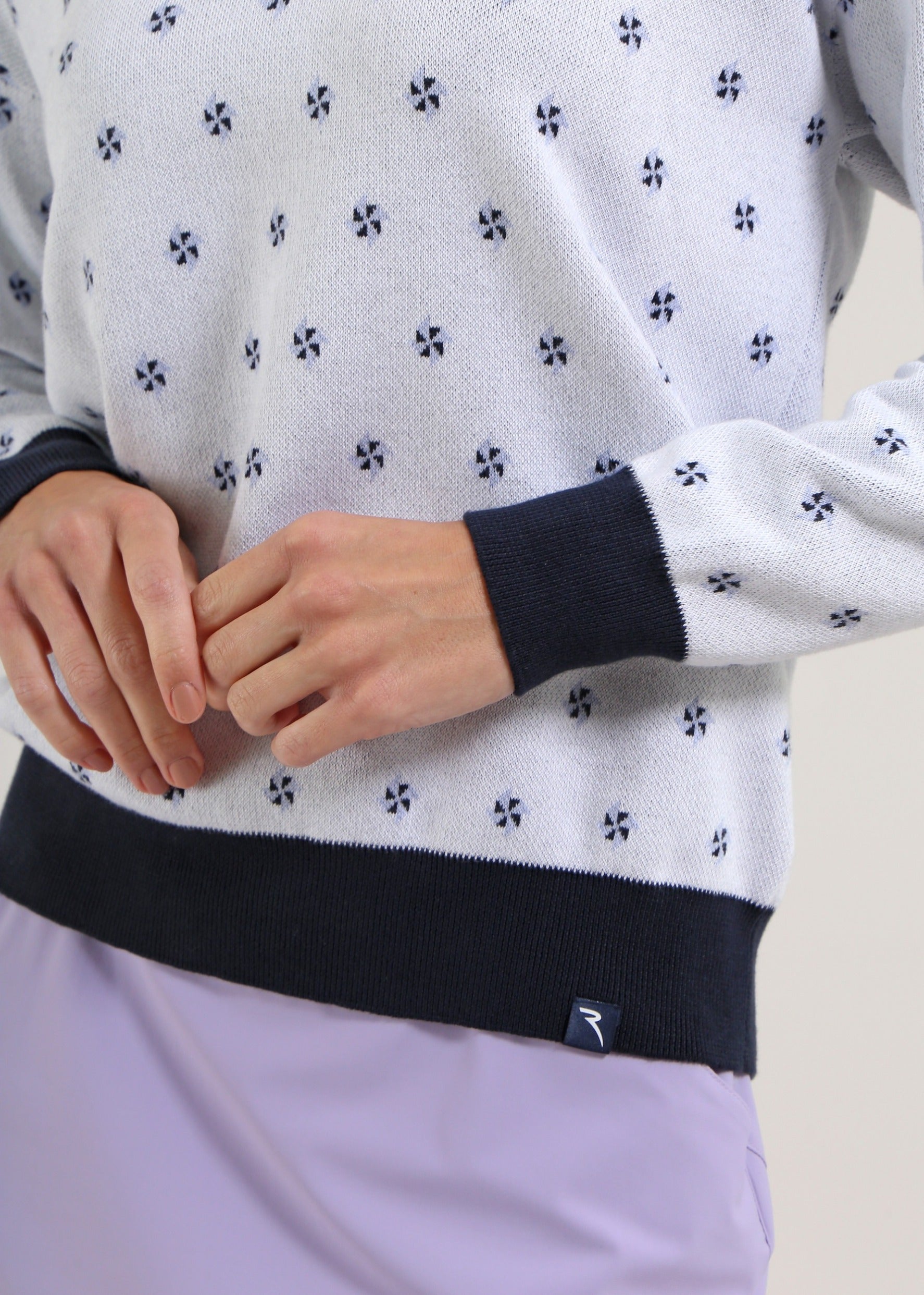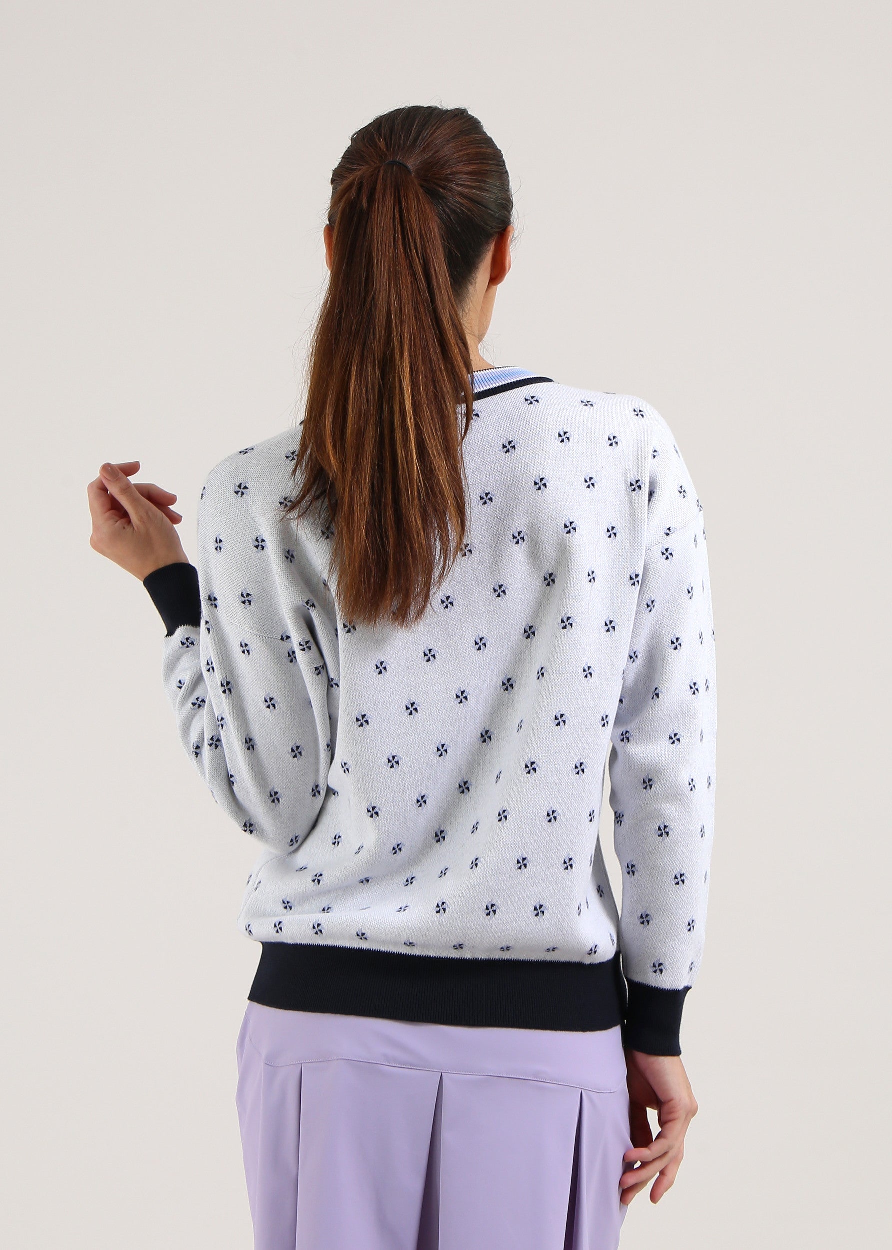 NOTIZIA is a high-quality cotton pullover featuring a refined jacquard micro-pattern inspired by the classic pinwheel motif.