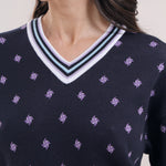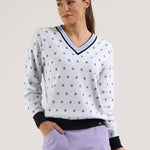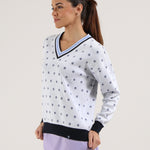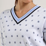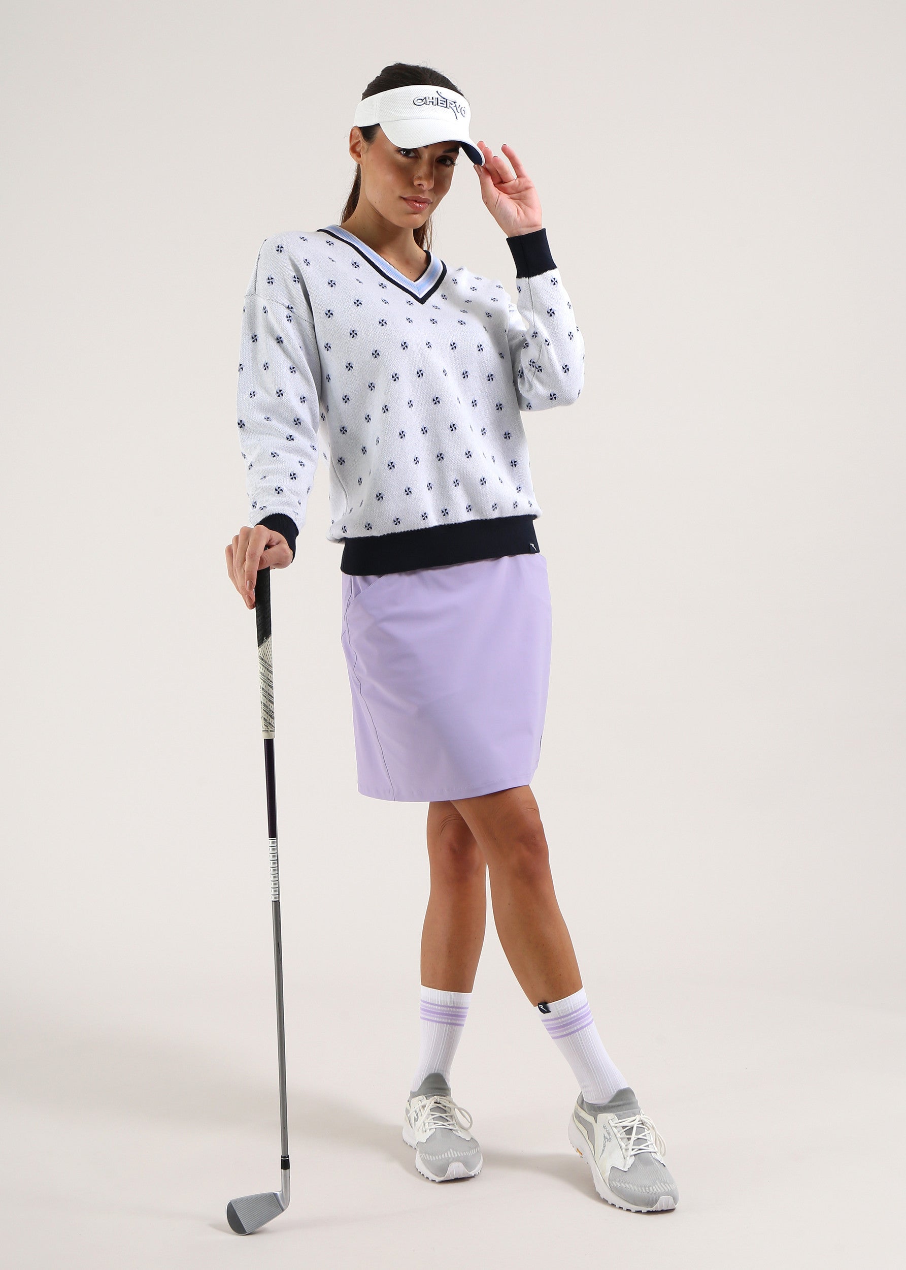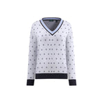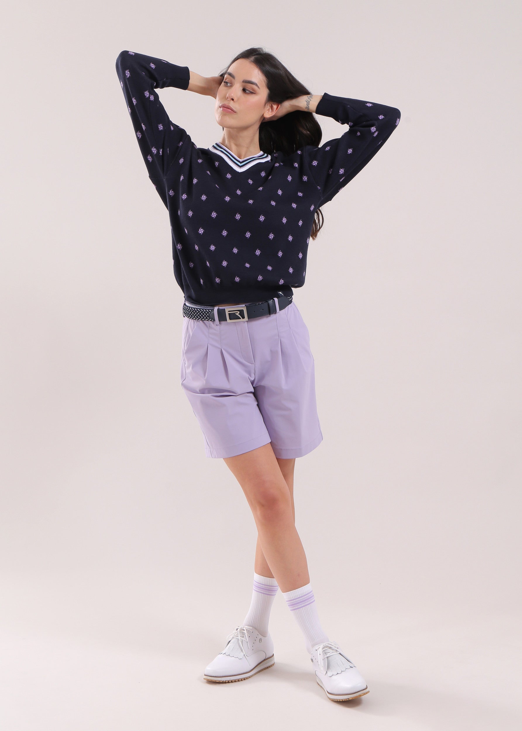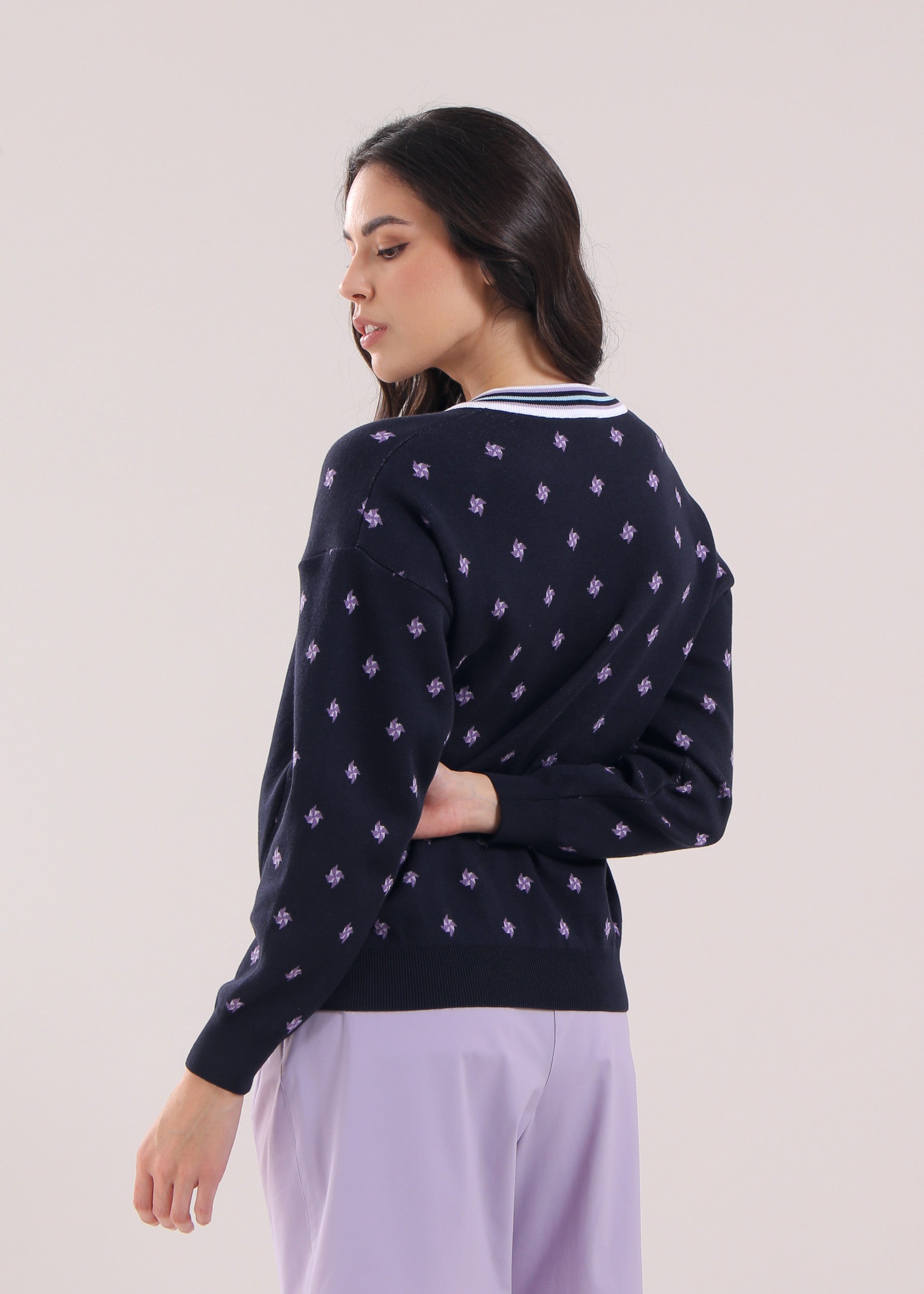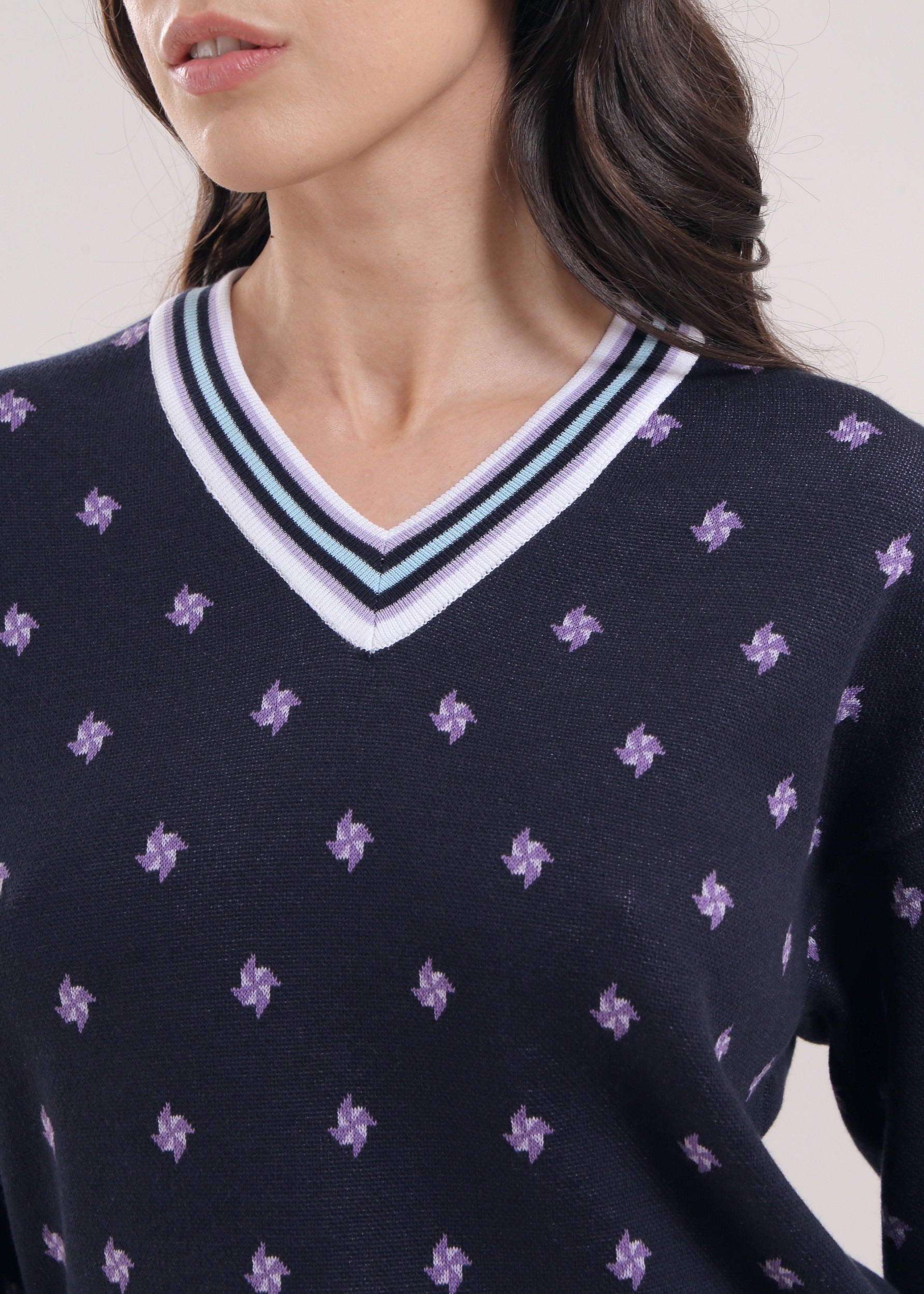 NOTIZIA is a high-quality cotton pullover featuring a refined jacquard micro-pattern inspired by the classic pinwheel motif.