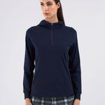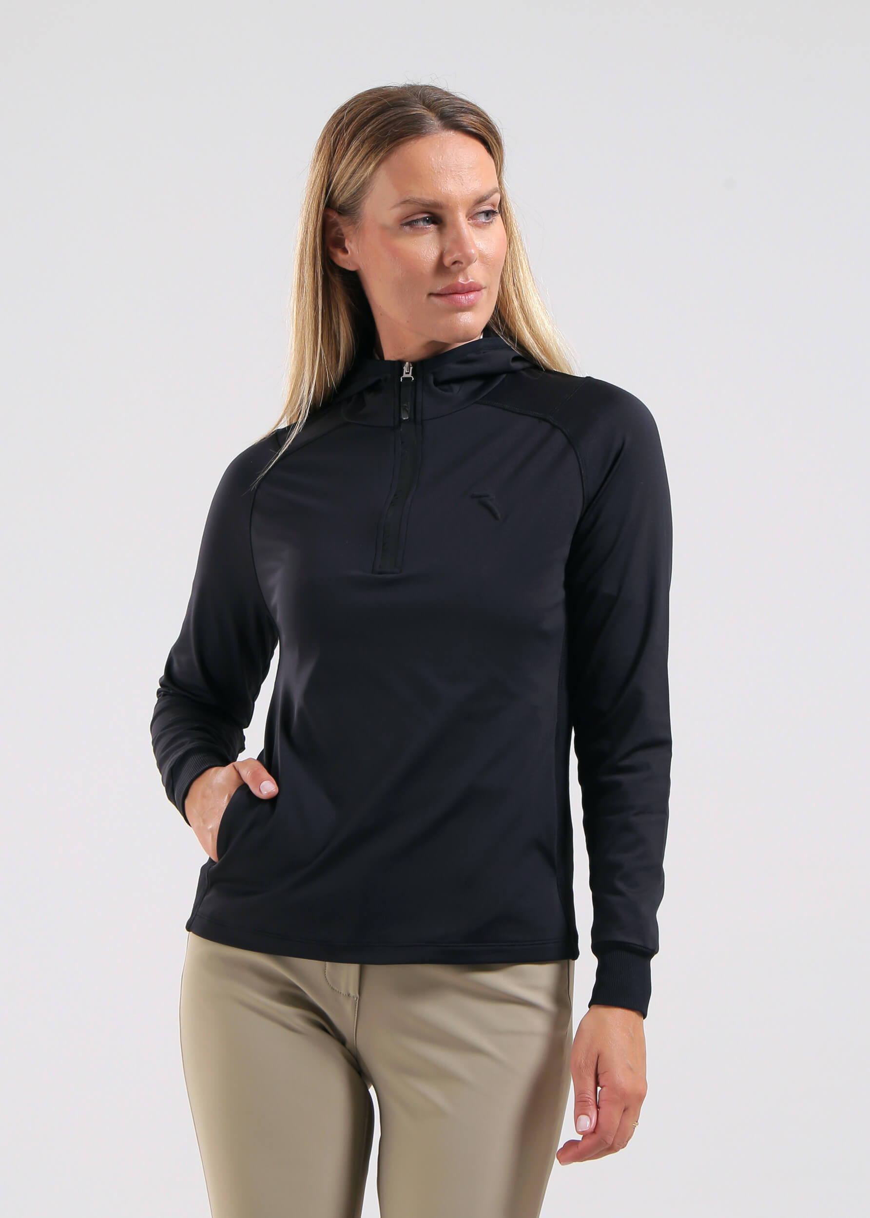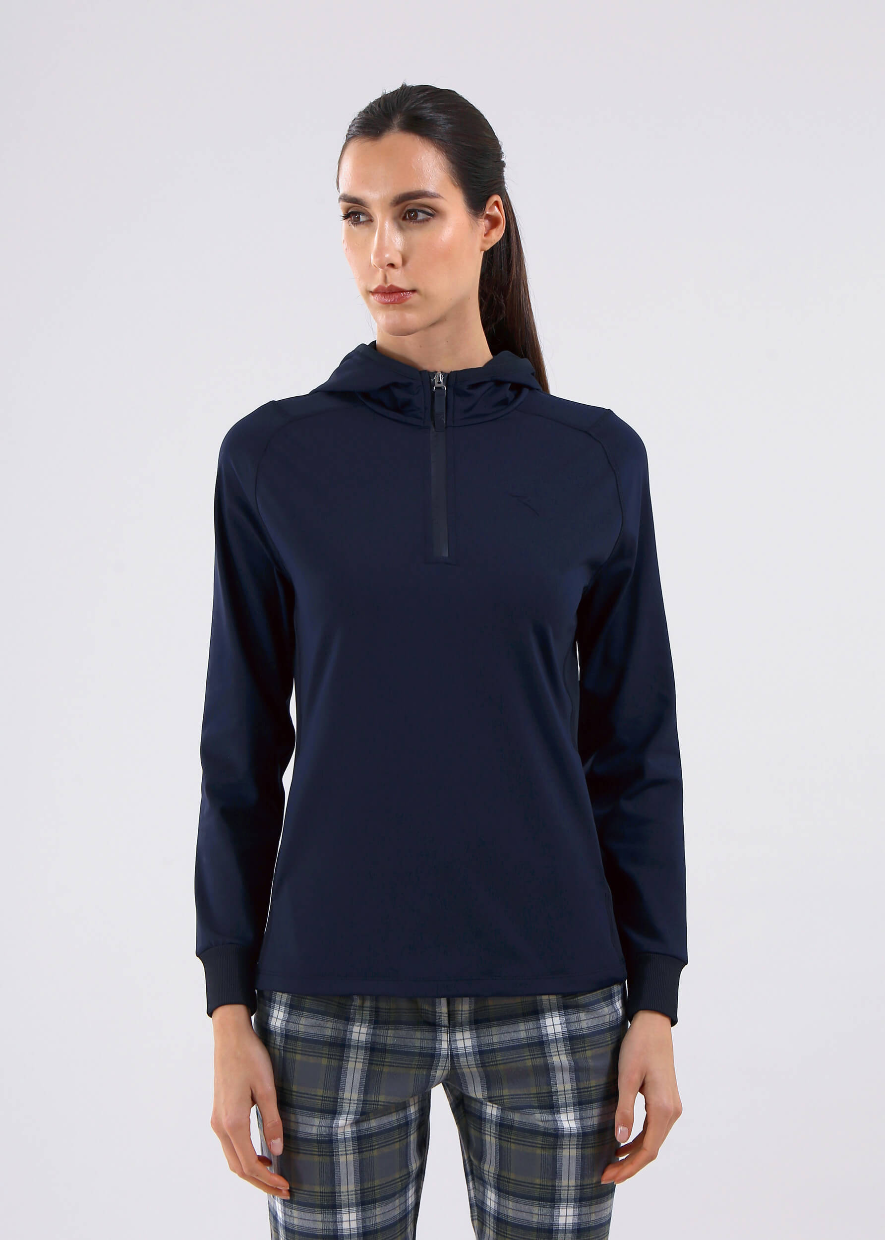 PAPAYA is a half-zip hoodie designed for all seasons. Crafted from lightweight fleece with a brushed interior, it ensures elasticity and freedom of movement thanks to ribbed inserts. With two hand pockets and a versatile design, it transitions effortlessly from the golf course to everyday wear.