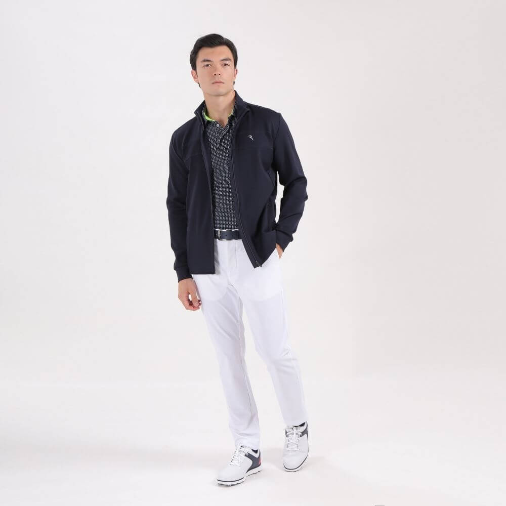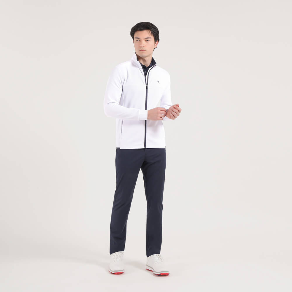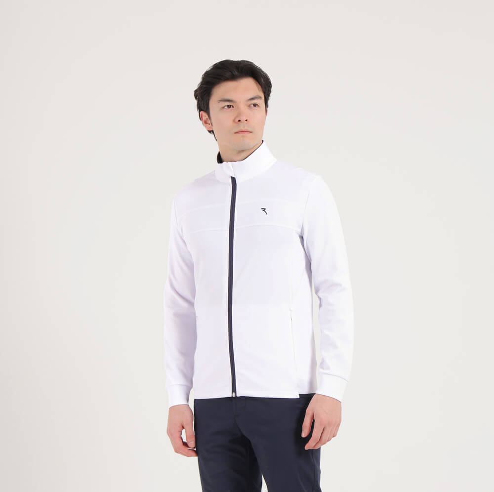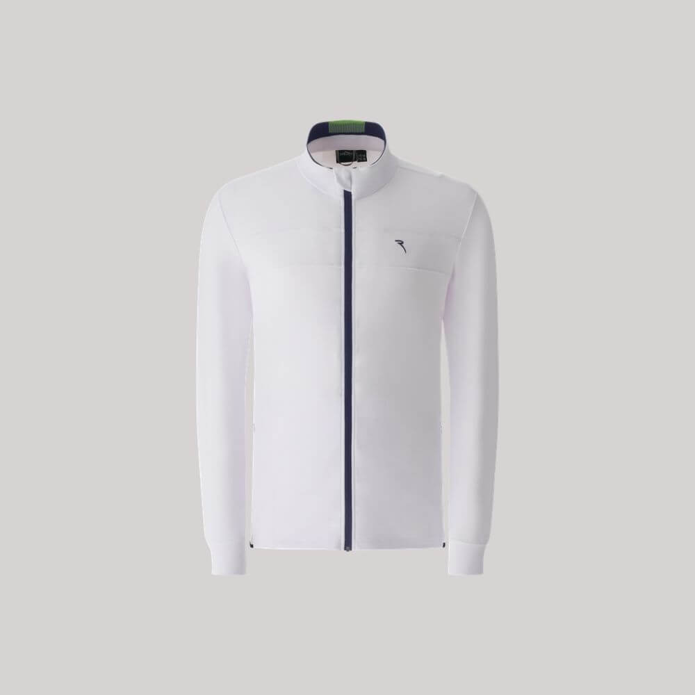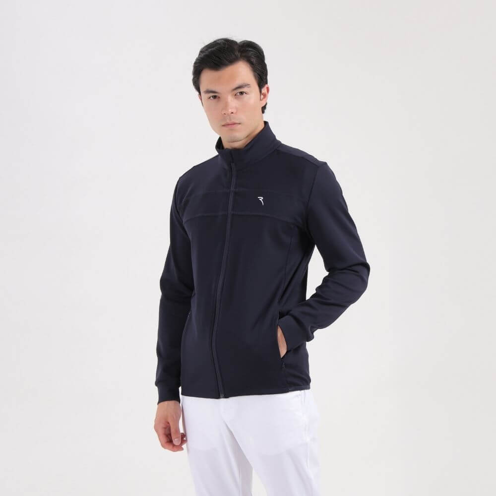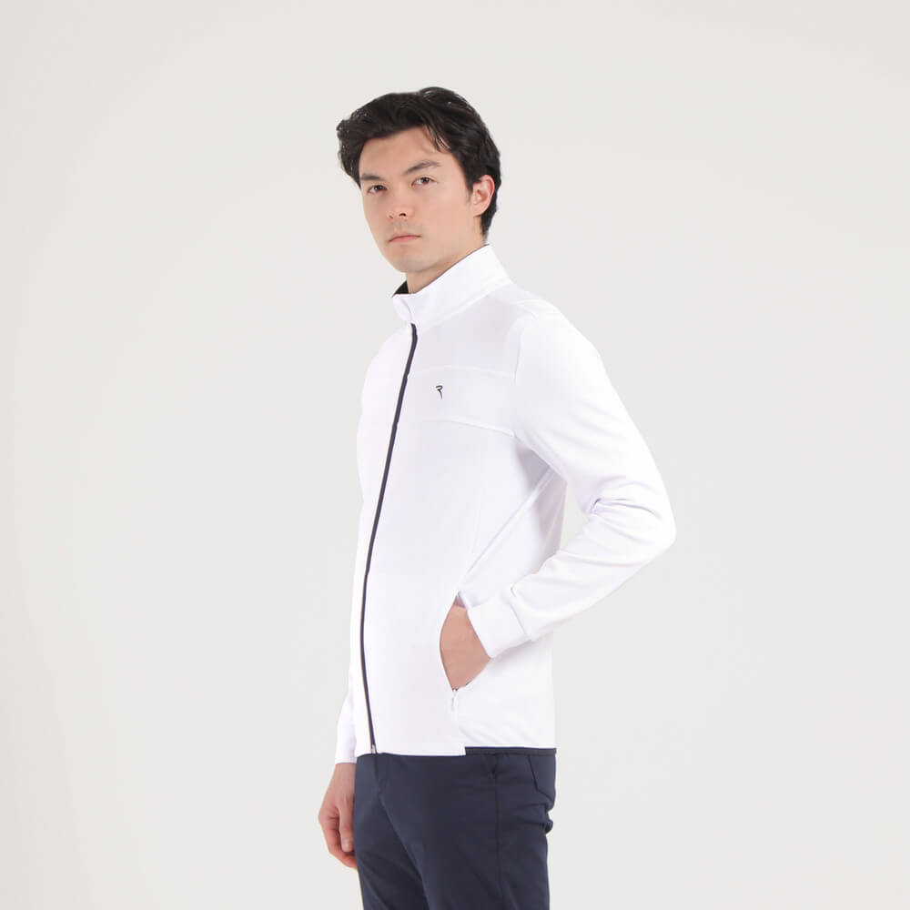Meet the Platinum. The perfect summer jacket. "Light Space" mid-weight technical fleece fabric with a soft yet compact hand, in addition to tone-on-tone topstitching embellished ergonomic cuts: The design boasts the following details: rib-knit detail inserted inside the collar, tone-on-tone topstitching-embellished ergonomic cuts, concealed zip pockets and the contrasting embroidered logo detail.