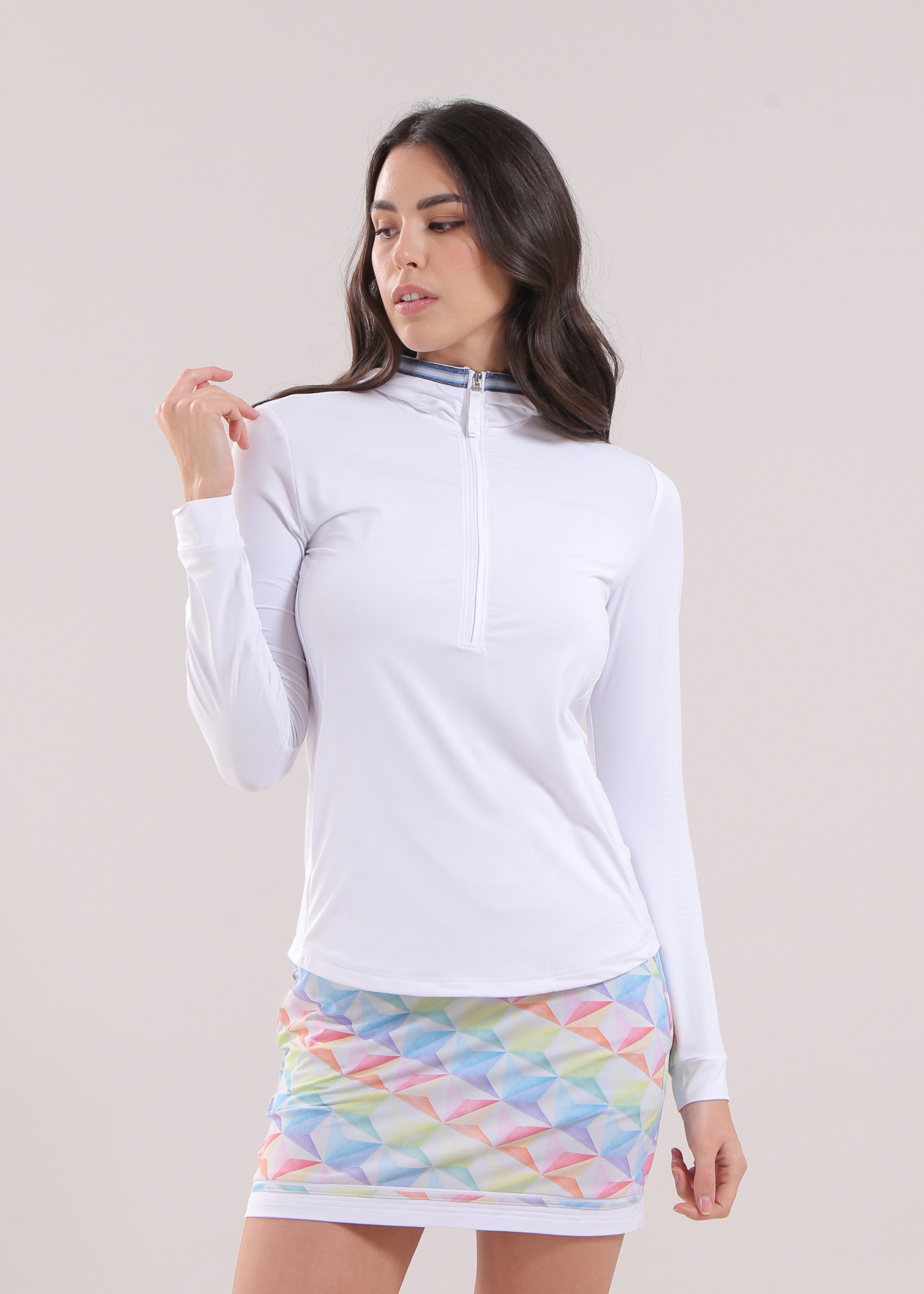 PRINCIPESSA is a lightweight jersey sweatshirt with built-in UV protection and Dry-Matic technology, designed to enhance breathability and keep skin comfortably dry.