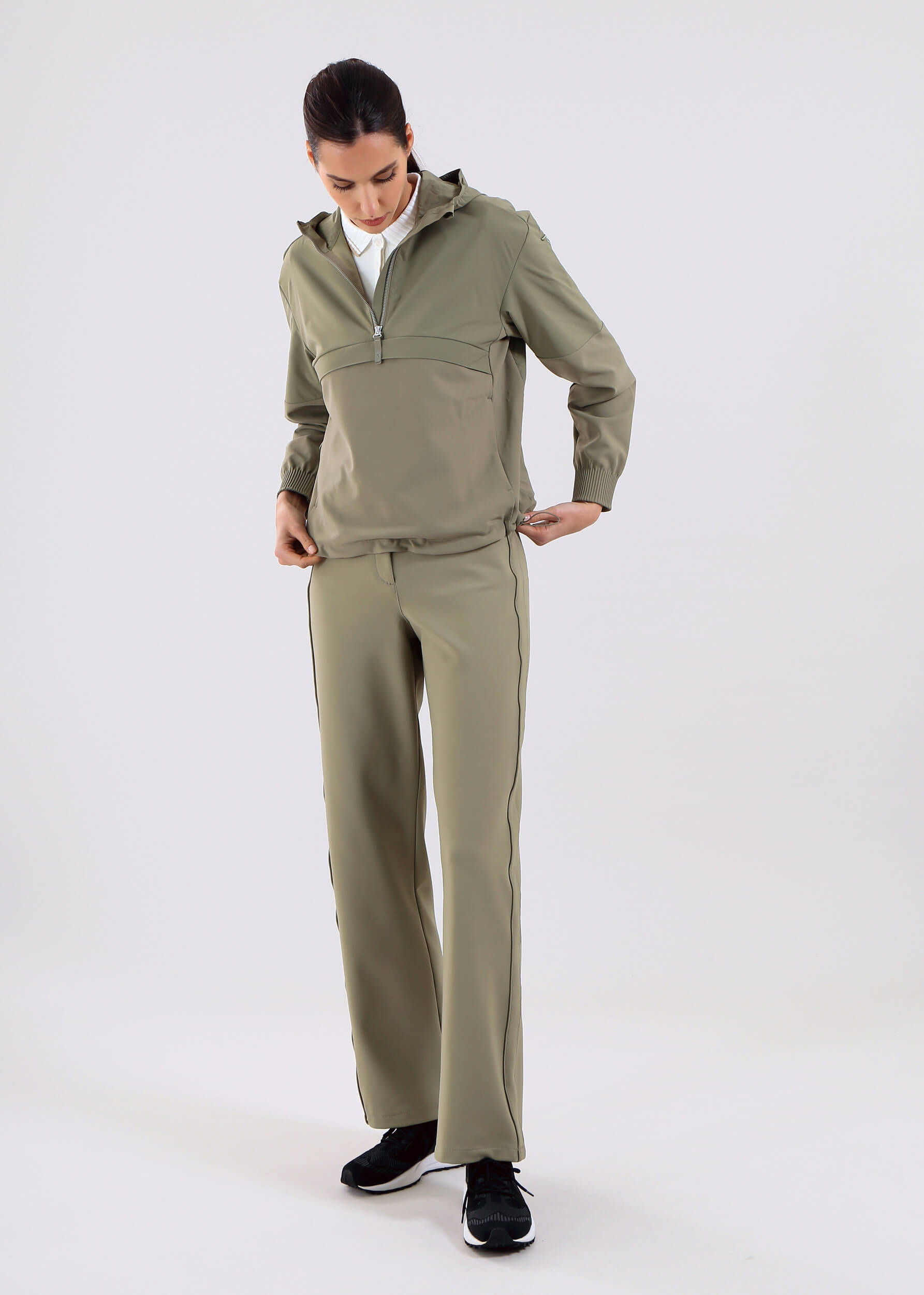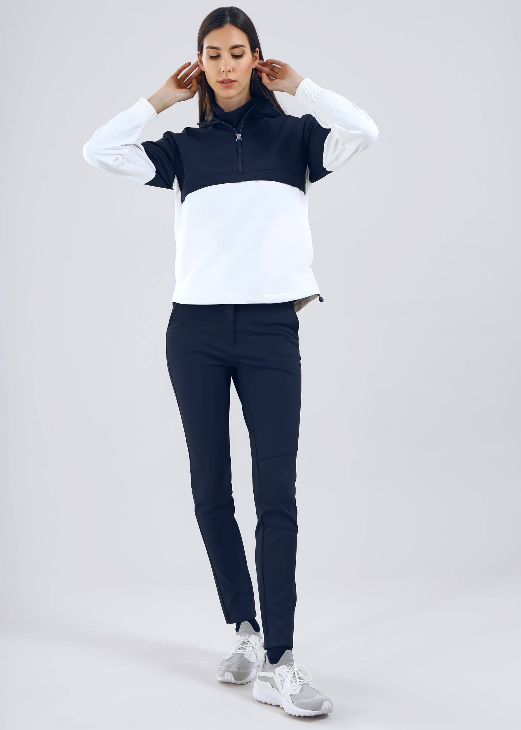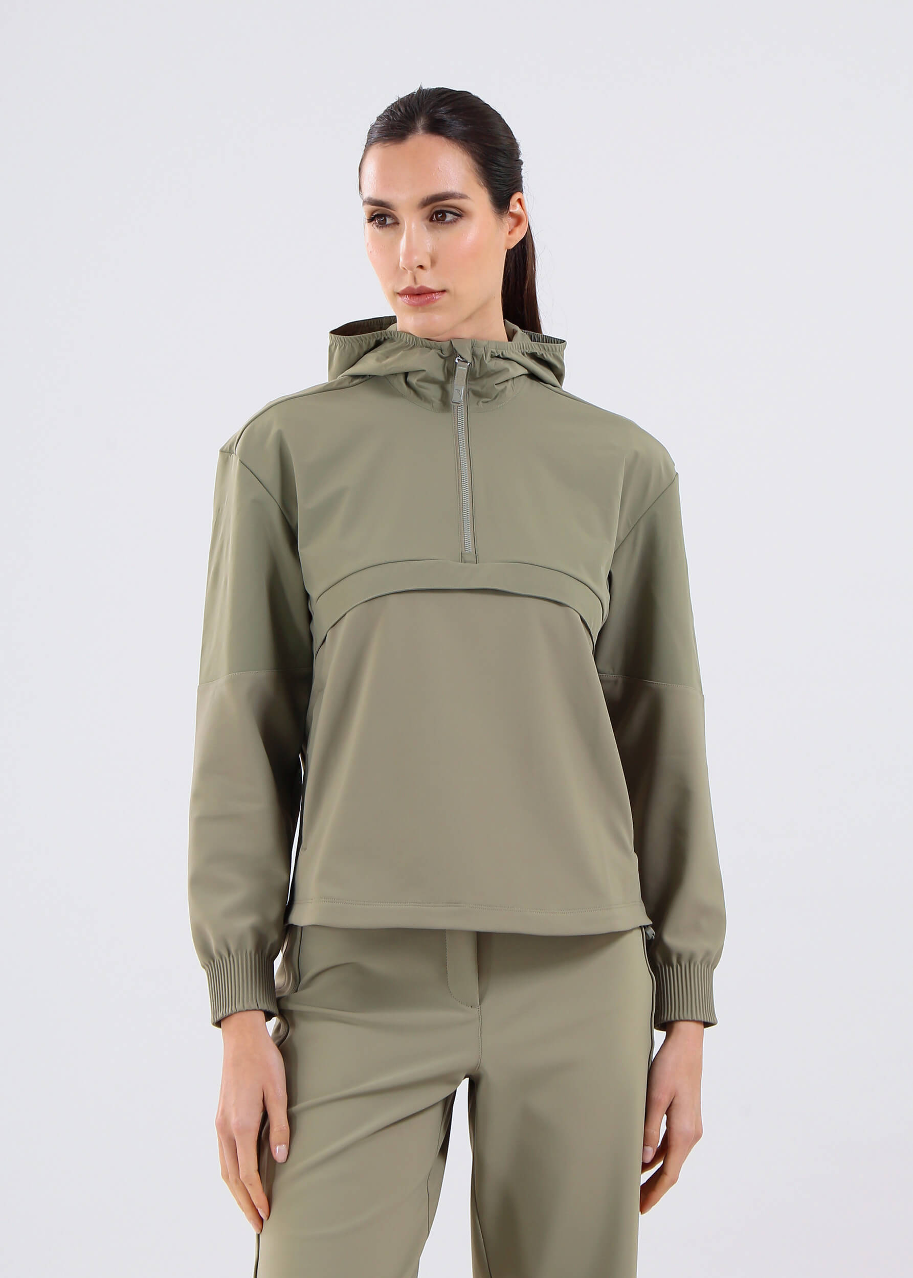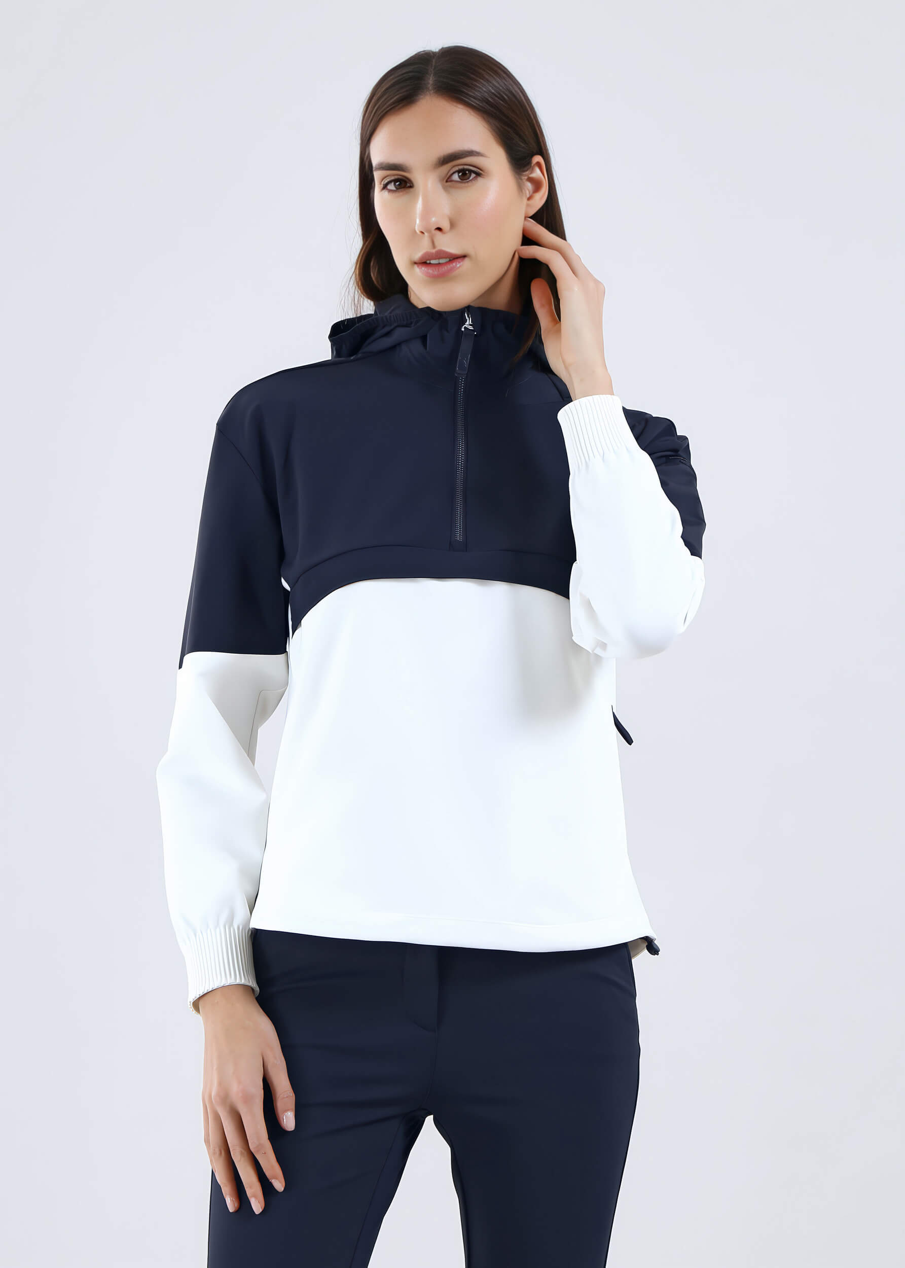 ROCKSTAR is a half-zip anorak with hood, crafted from stretch softshell for all-season wear. Nylon inserts provide added protection against wind and water, while ergonomic cuffs and zip pockets enhance performance. A relaxed fit and adjustable hem with drawcord ensure ease of movement and versatile comfort. Designed to deliver a sleek, functional look both on and off the course.