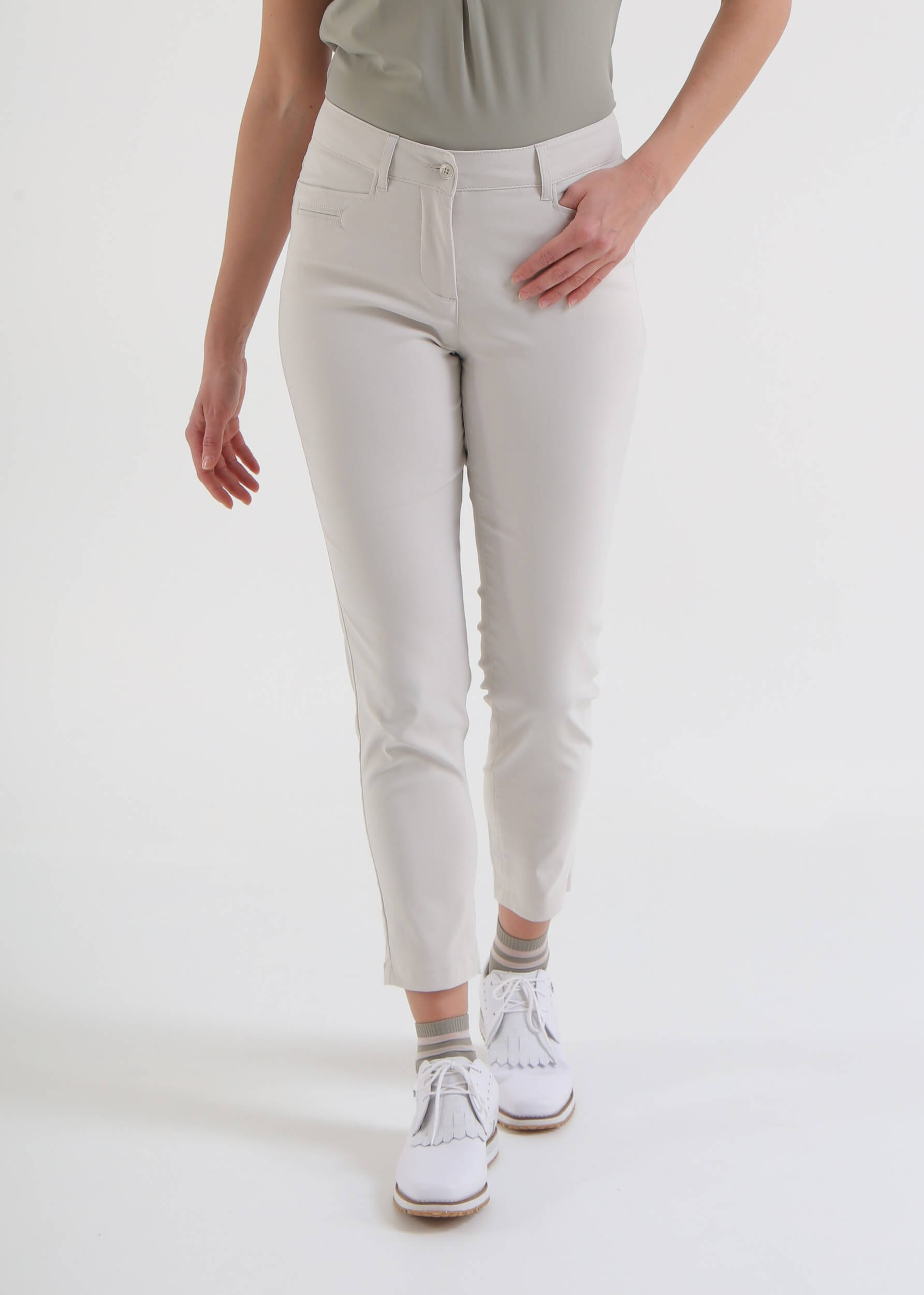 SONORA is a women’s pant in mid-weight poplin with a timeless style, balancing comfort and functionality. Made from 2-way stretch fabric with a cotton-like look and feel, it features Dry-Matic® and Sunblock® technologies for breathability, UV protection, and quick-drying performance. The slim fit enhances the silhouette with a clean, sporty look, making it a versatile style for the golf course or everyday wear.