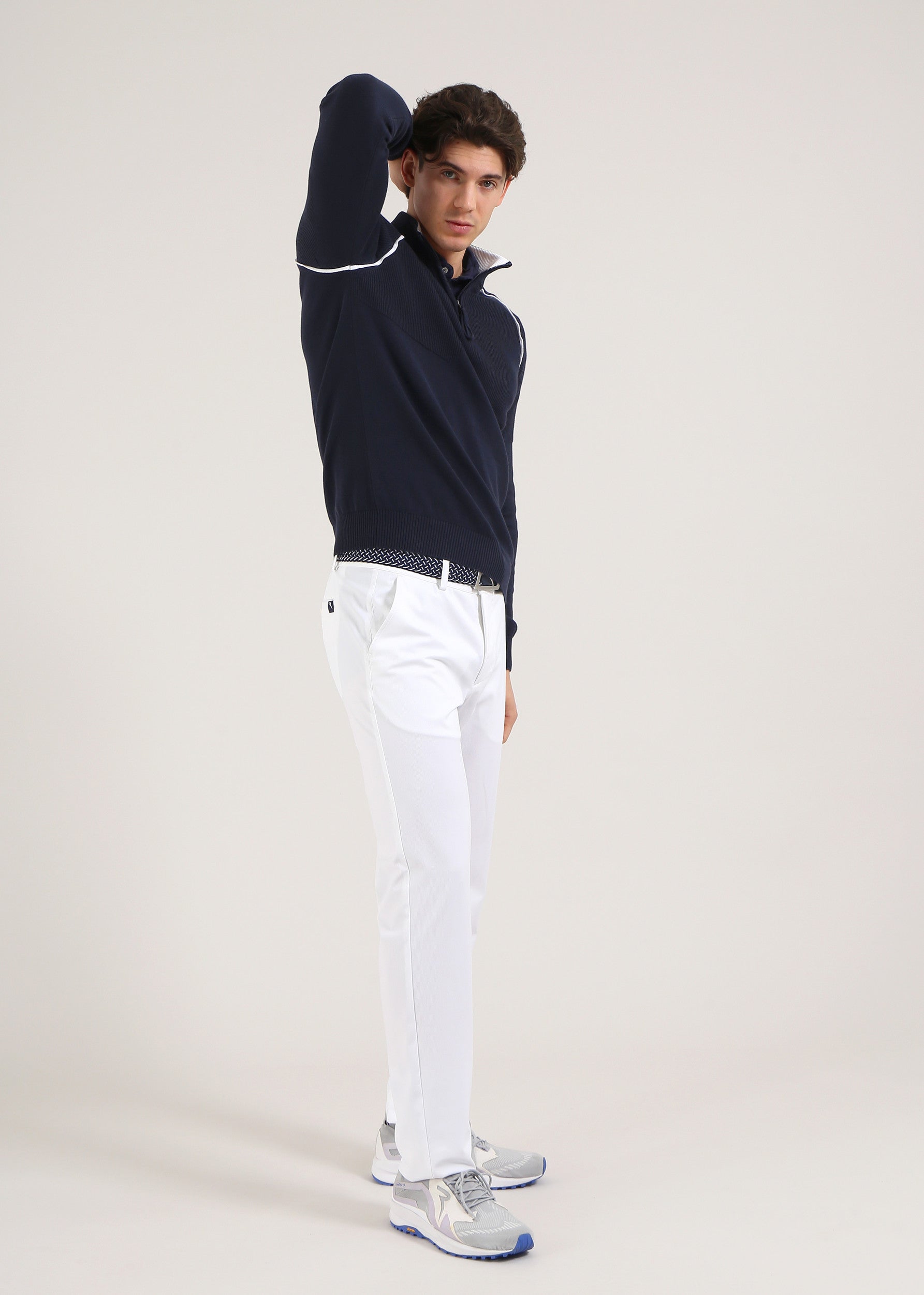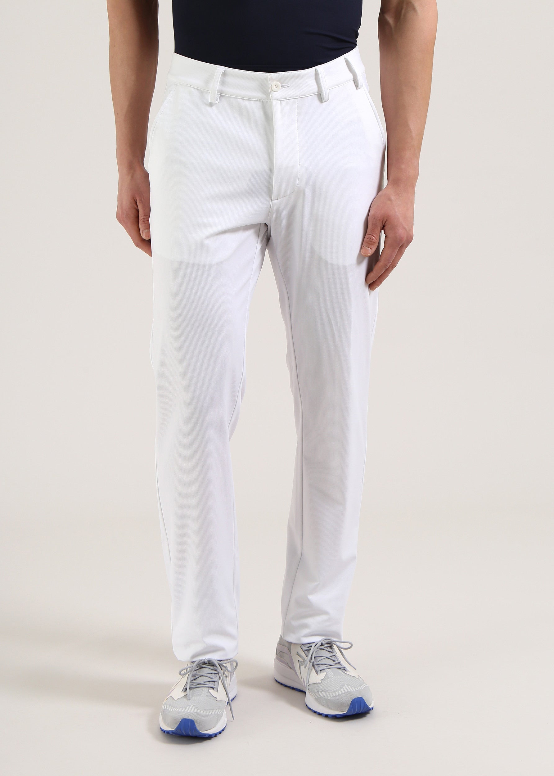 Stay sharp and comfortable year-round with the SUSPENCE Chinos, crafted from sun-resistant and non-deformable four-way stretch Sunblock®  and Dry-Matic®  fabric. Designed for a technical look and a cool, breathable feel, these chinos are designed to perform in any season. The elasticated waistband with an inner grip ensures a secure, comfortable fit, while the zip and double-button fastening adds classic functionality. Finished with double-welt rear pockets and a sleek slim-fit, these performance trousers seamlessly combine modern style with advanced performance.