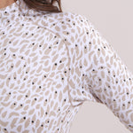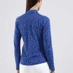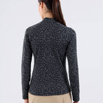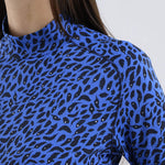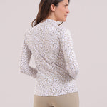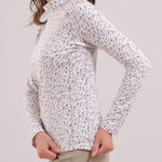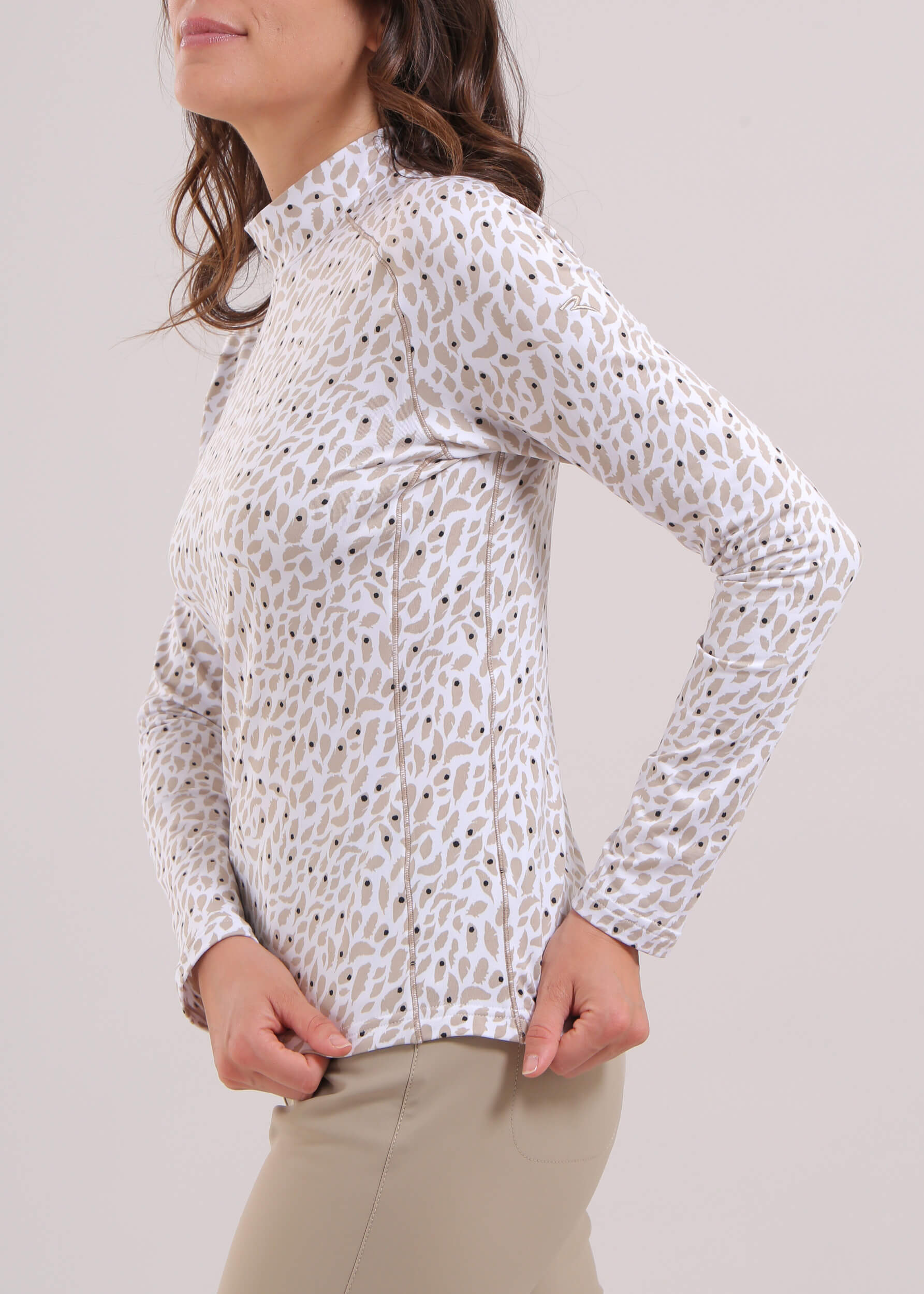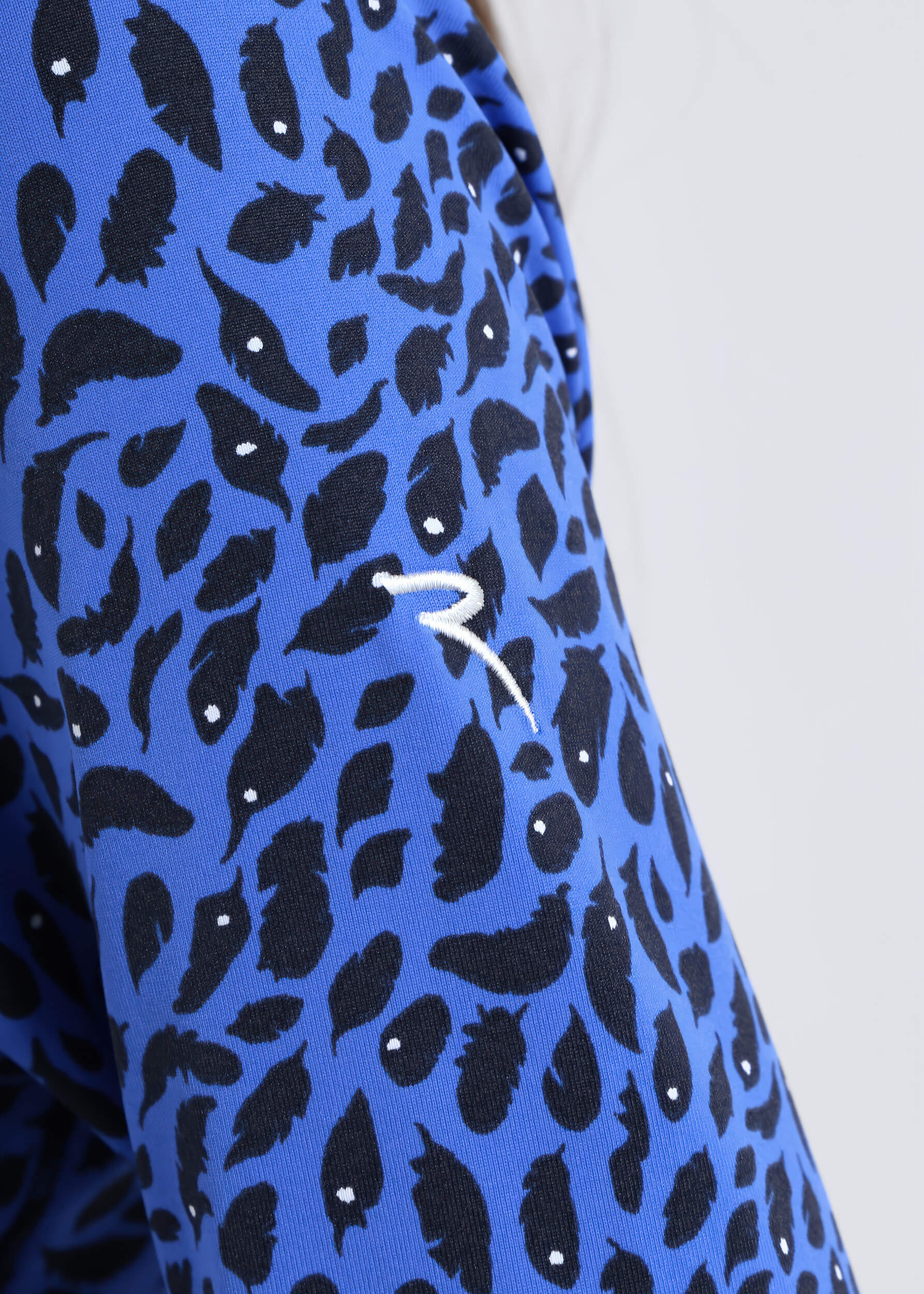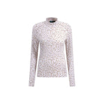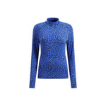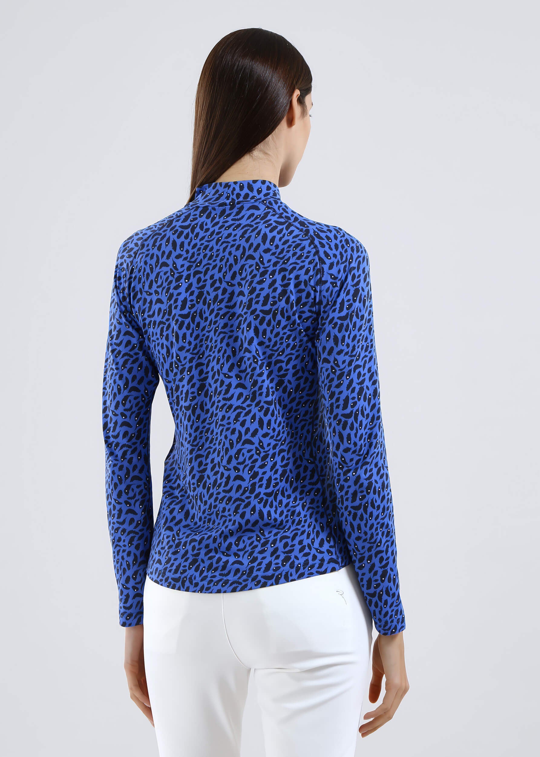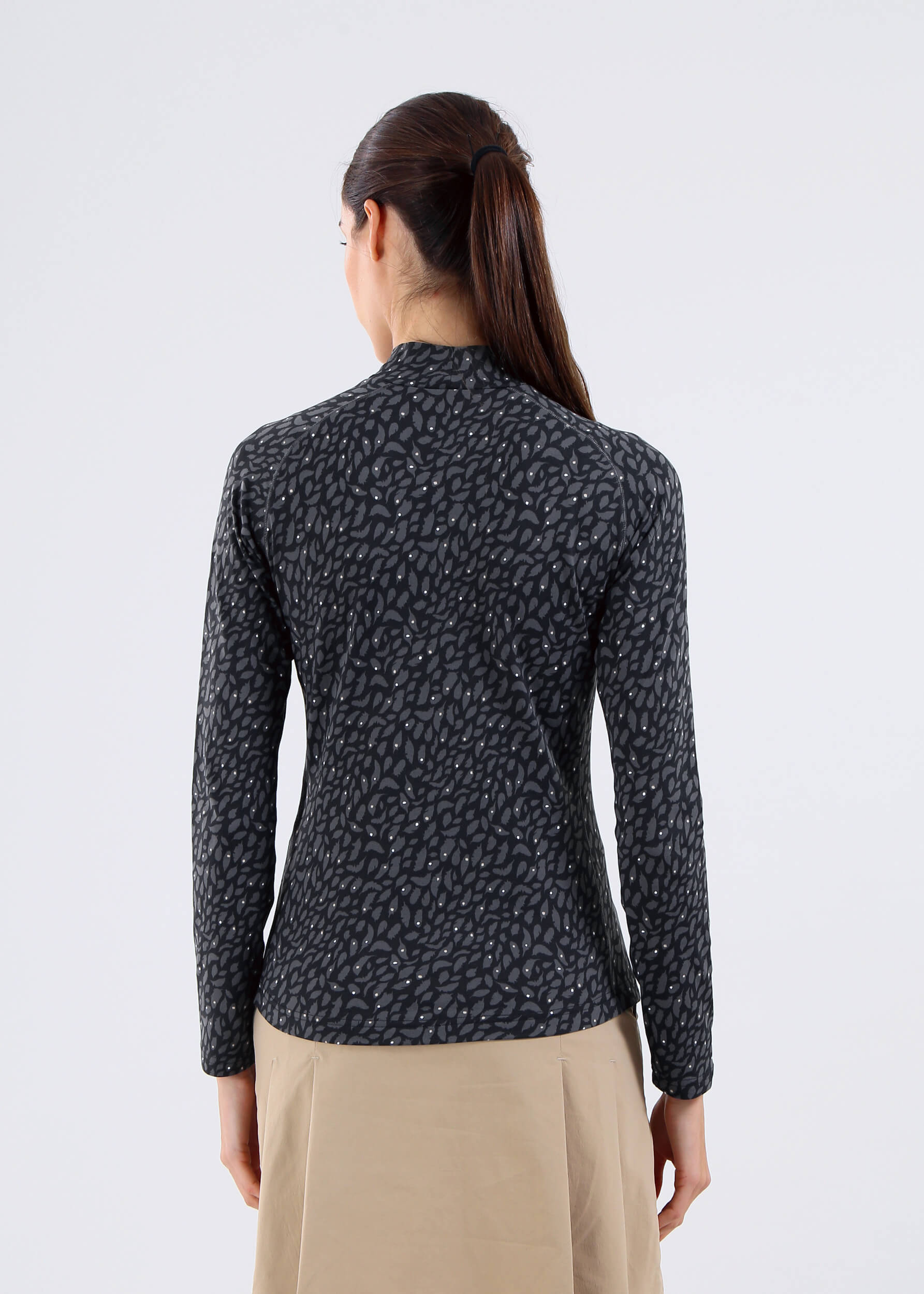 TANIA is a turtleneck sweater in brushed jersey, designed to be worn as a first layer. The all-over “Pois Feather” print adds a bold graphic touch. Stretchy and warm, it is the essential base layer to face the cold season with sporty style