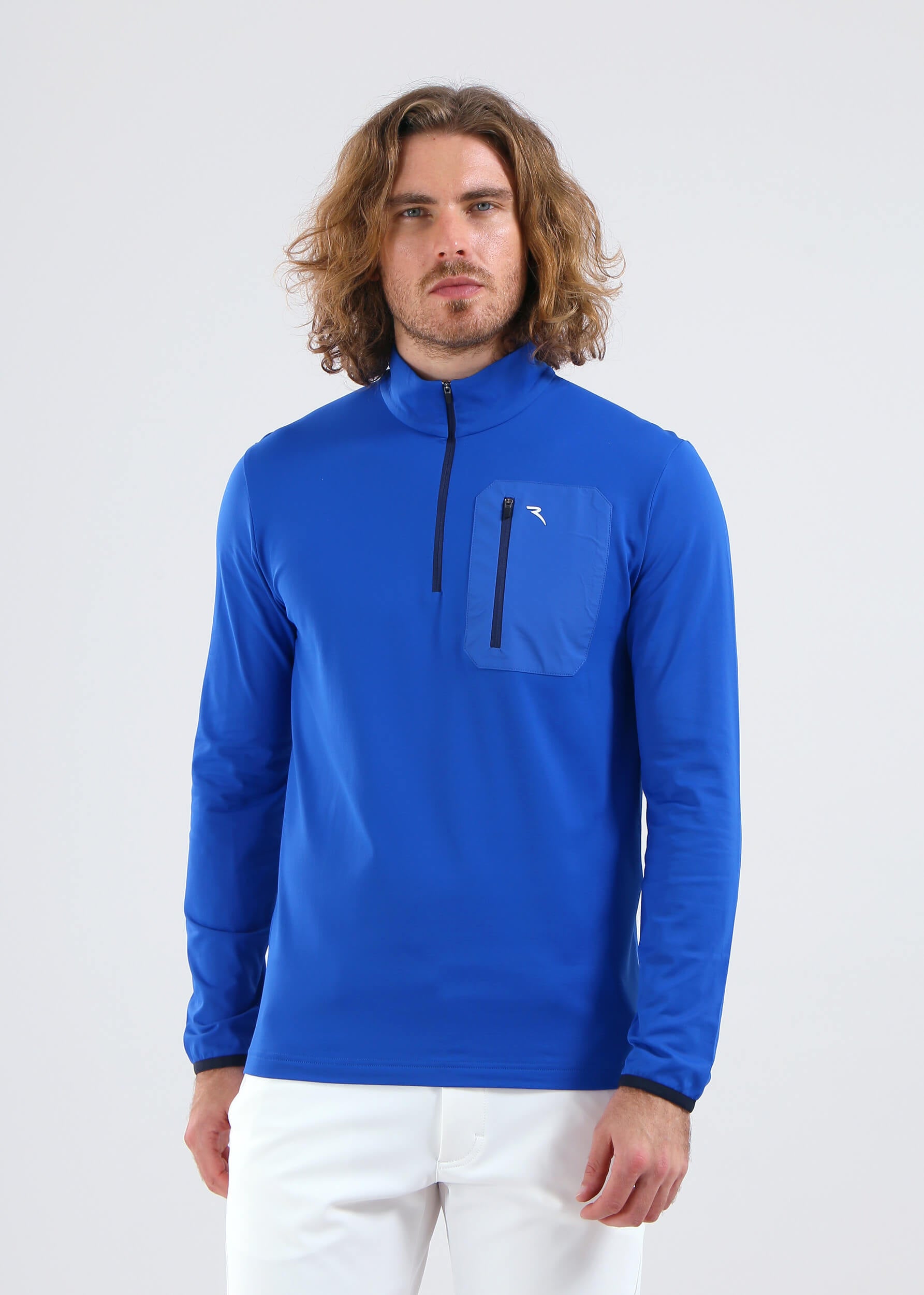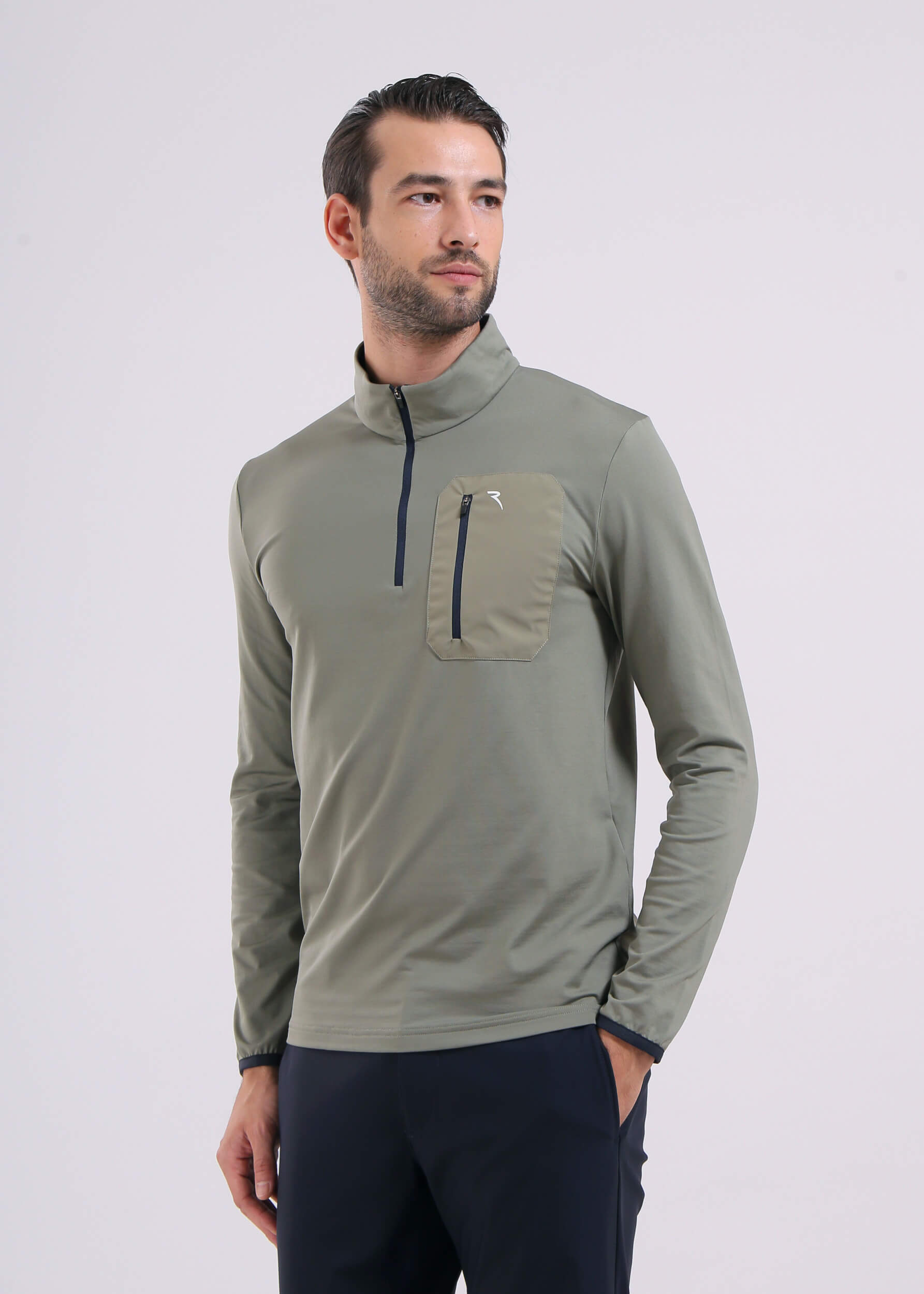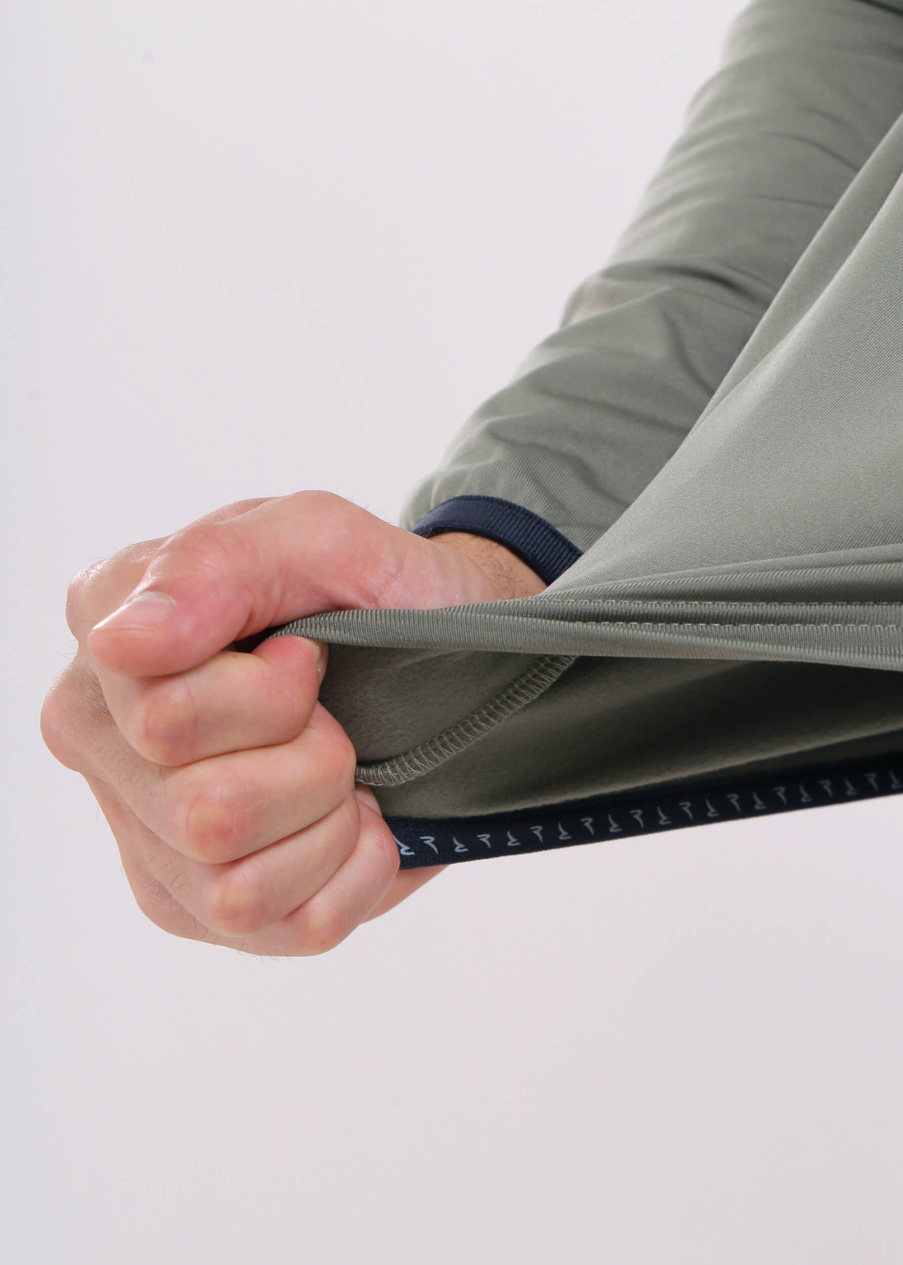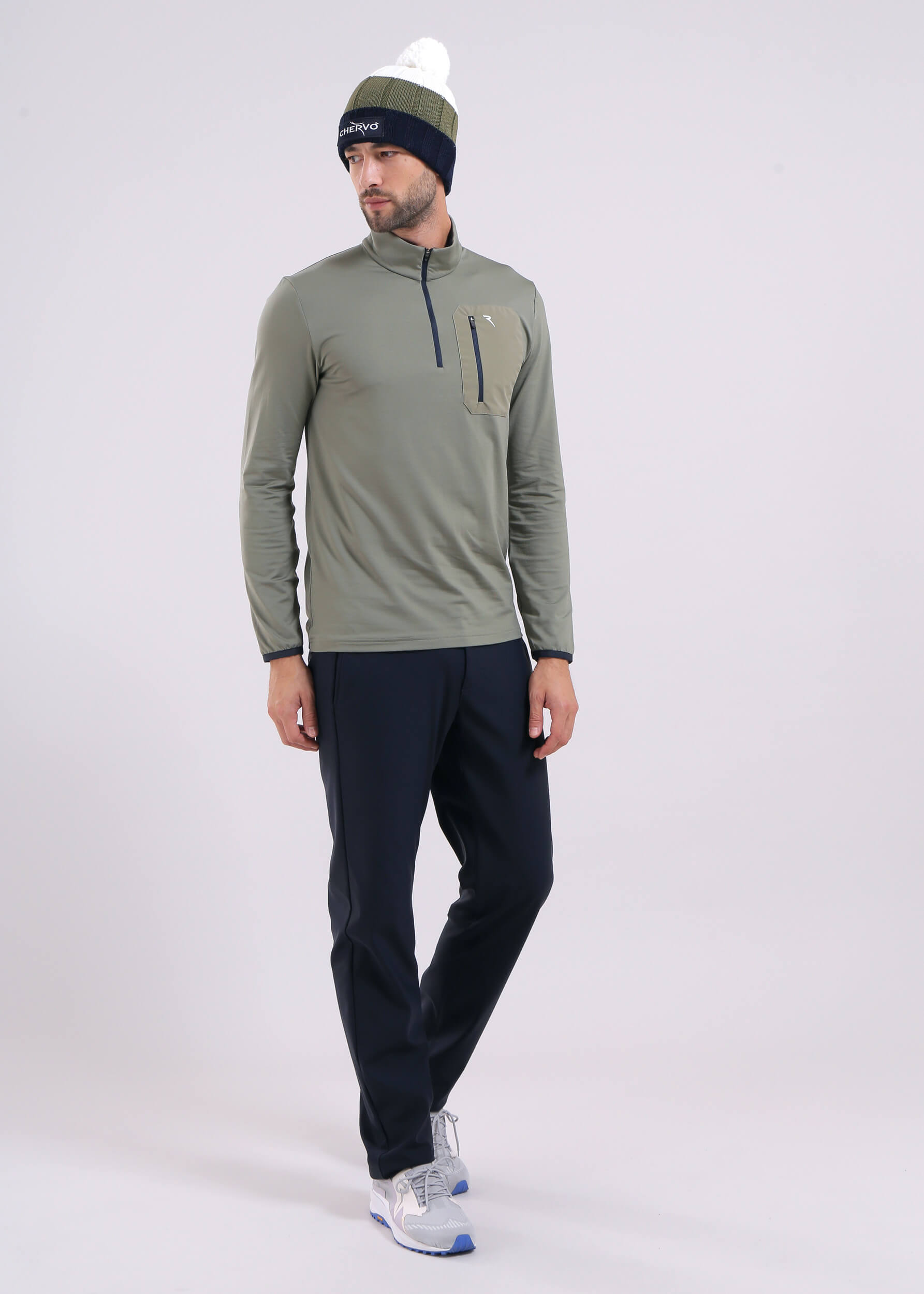 The TORERO quarter zip is crafted from stretch brushed jersey with Pro-Therm® technology for warmth and comfort. Featuring a nylon chest pocket and half-zip closure, it blends functionality with clean style. The brushed interior and elastic inserts at the edges ensure thermal comfort and full freedom of movement. A technical, essential piece designed to face chilly days with ease.