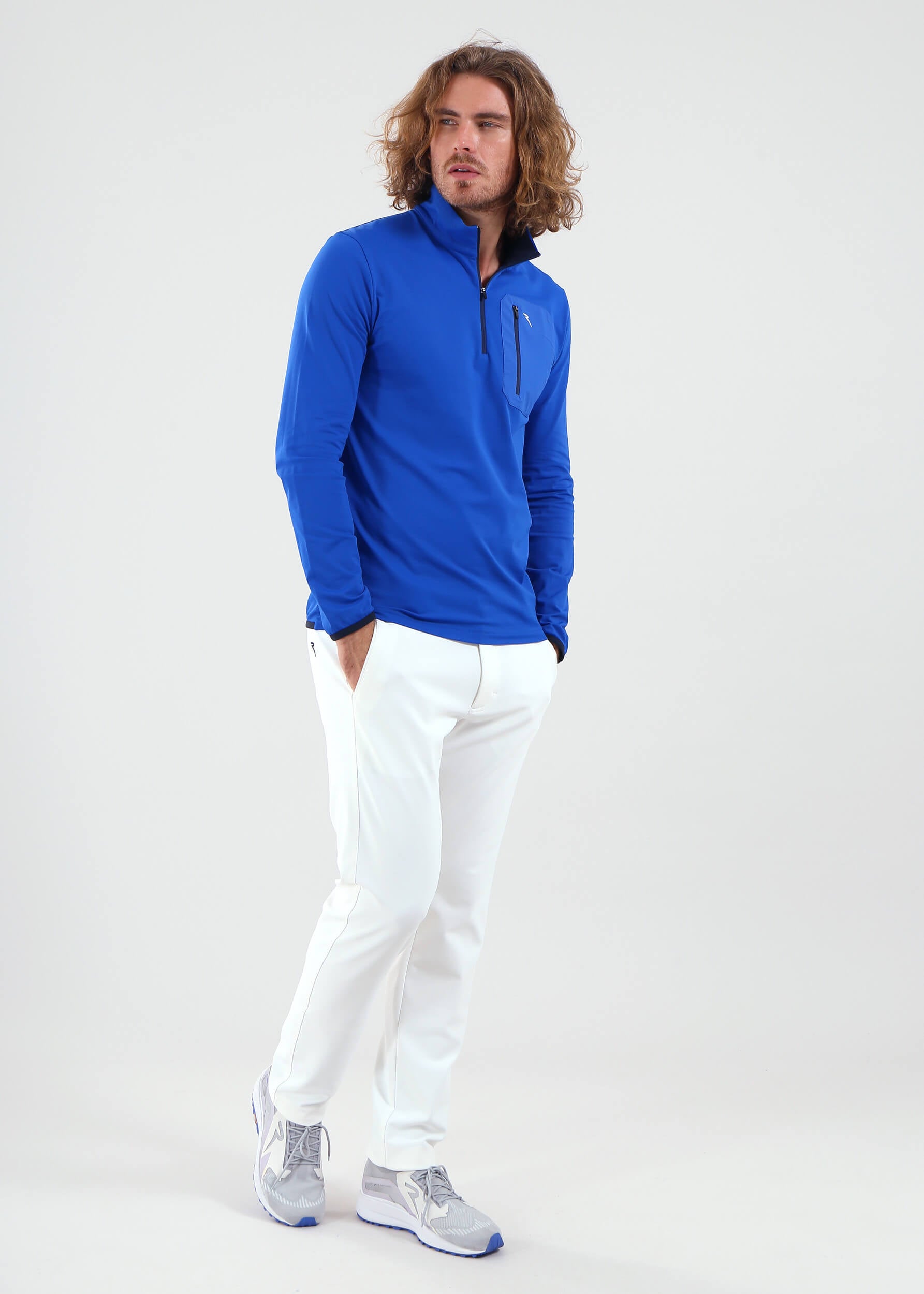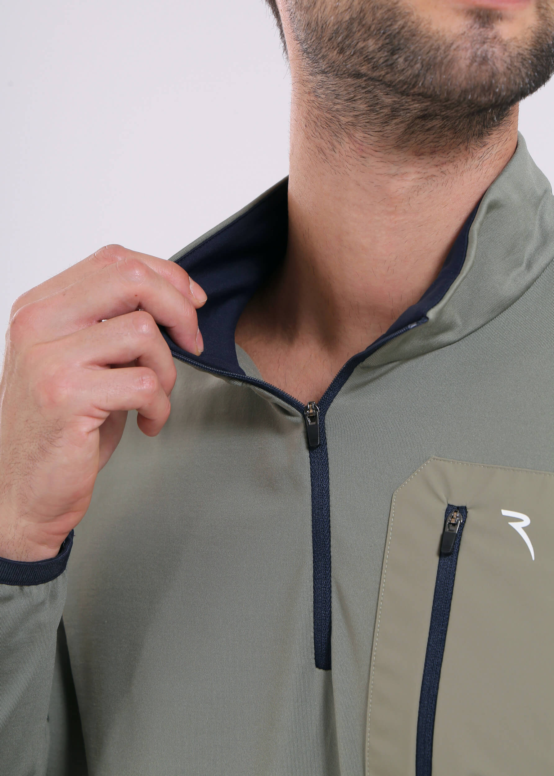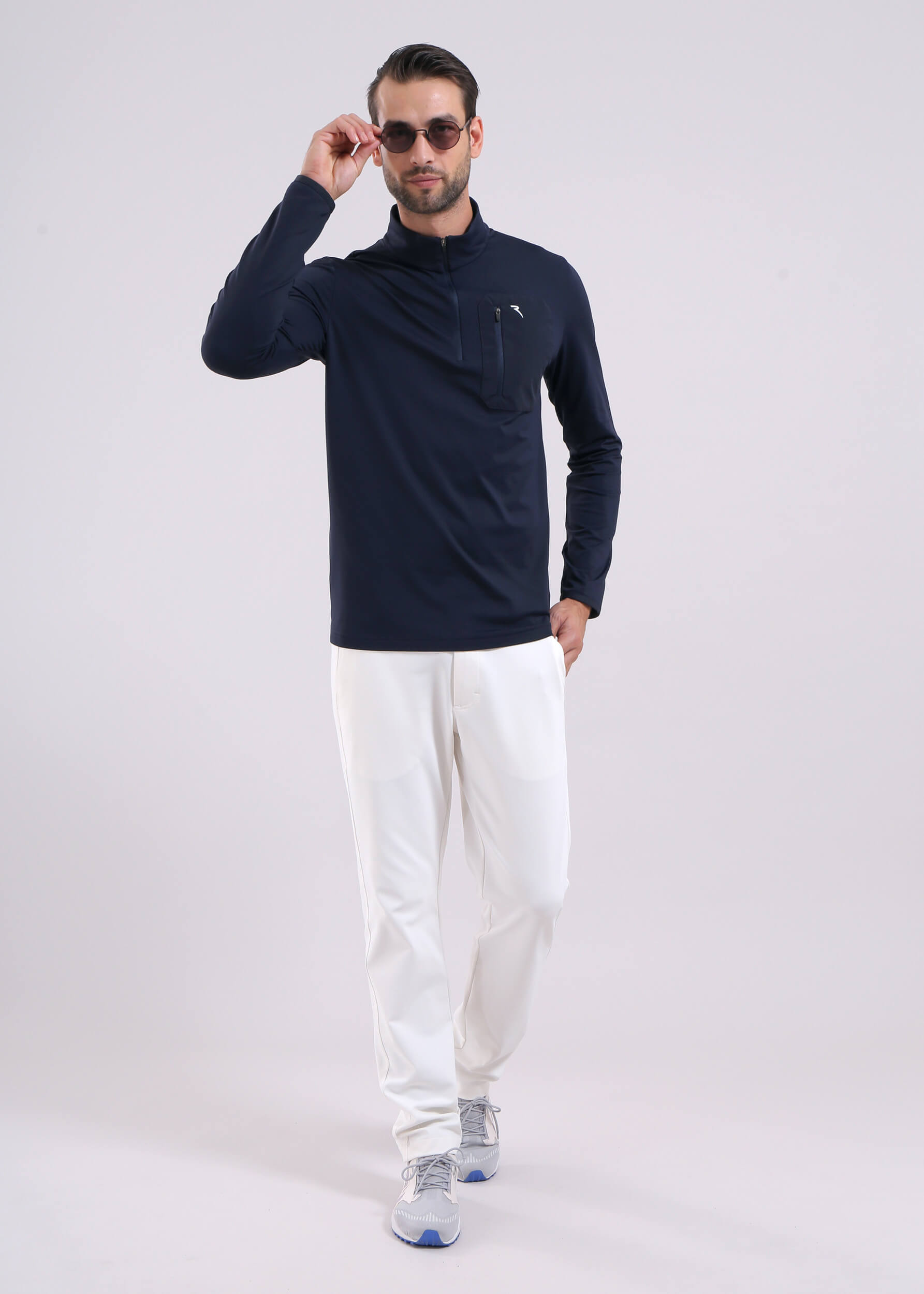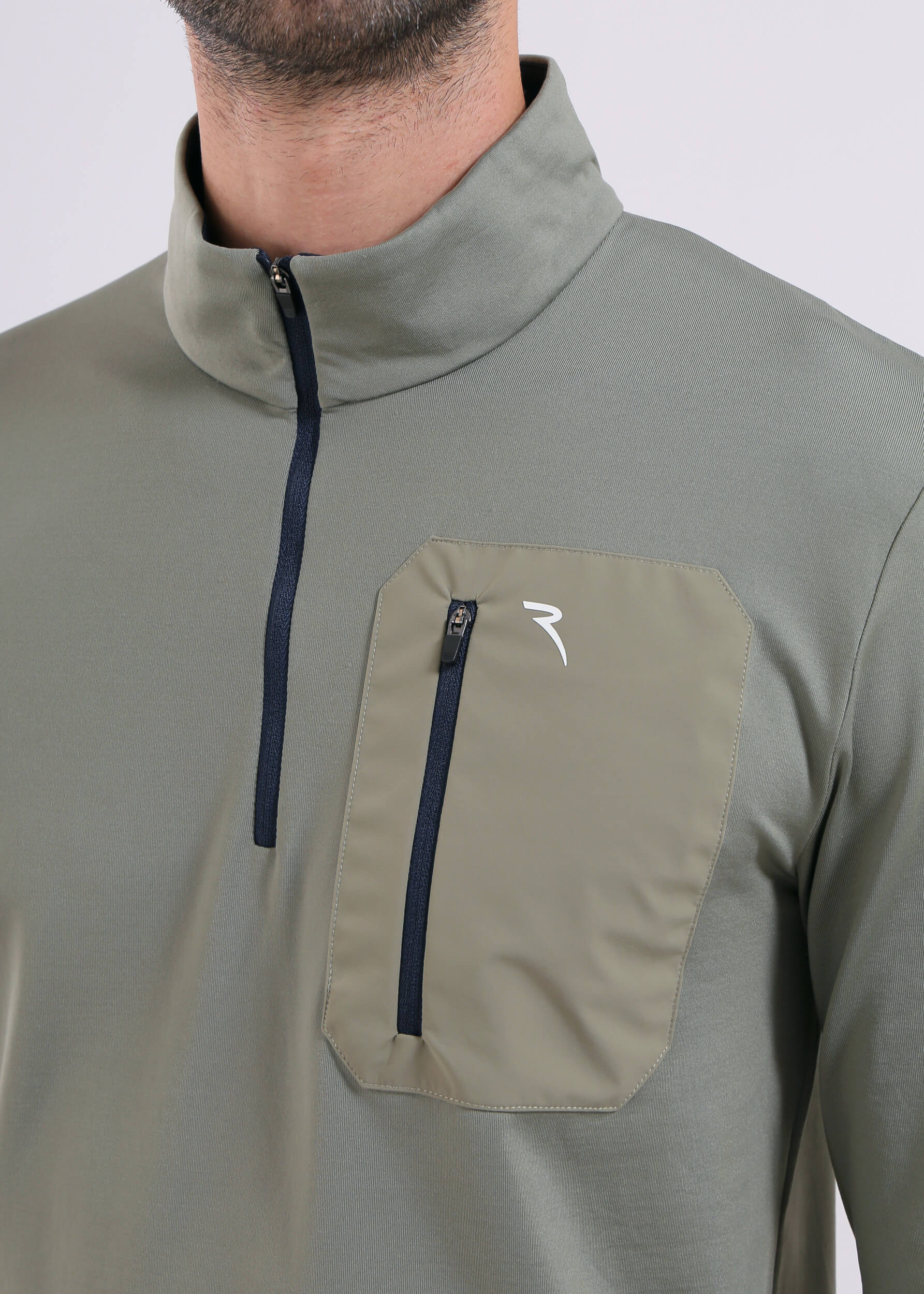 The TORERO quarter zip is crafted from stretch brushed jersey with Pro-Therm® technology for warmth and comfort. Featuring a nylon chest pocket and half-zip closure, it blends functionality with clean style. The brushed interior and elastic inserts at the edges ensure thermal comfort and full freedom of movement. A technical, essential piece designed to face chilly days with ease.