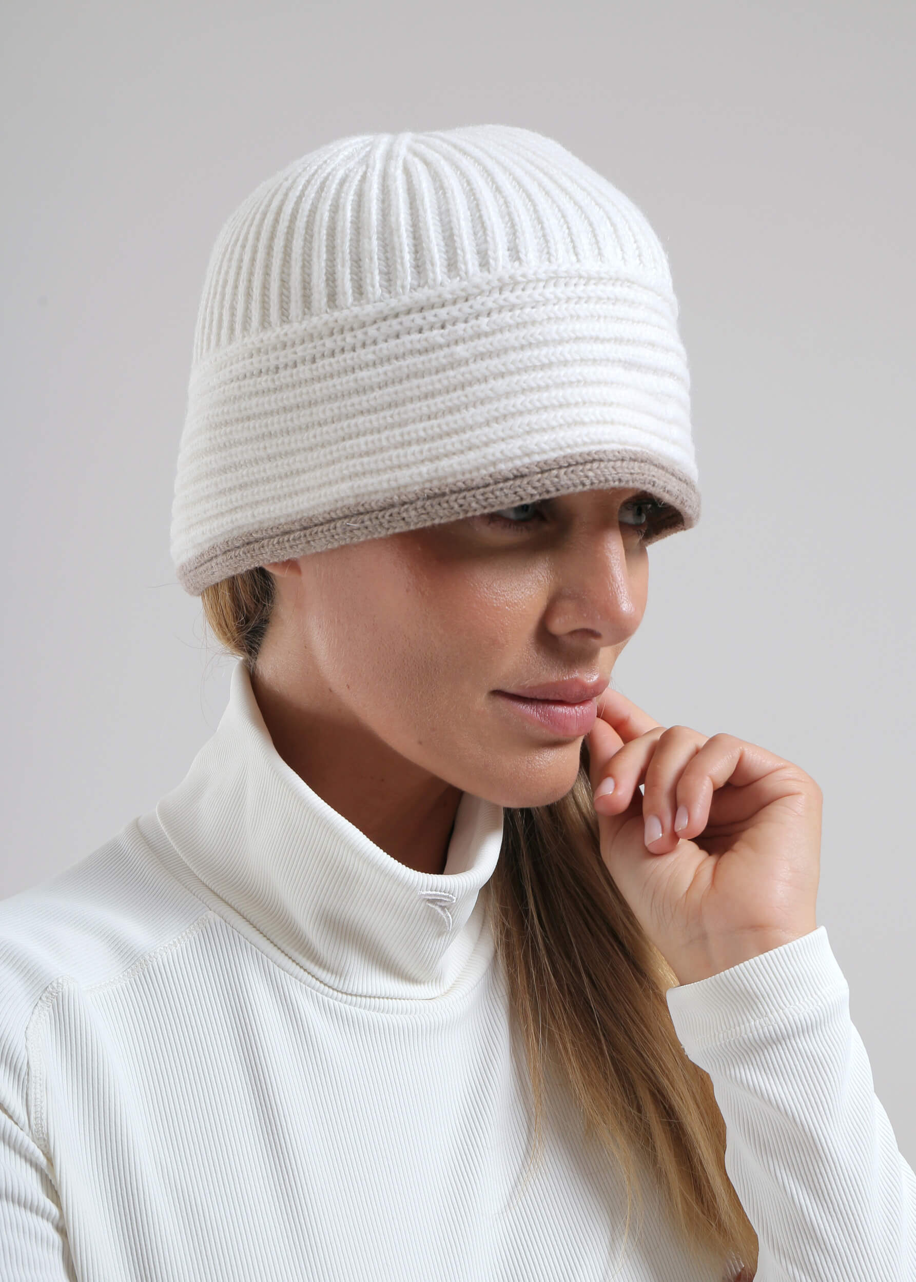 WATIK is a women’s hat crafted from a fine cashmere blend, featuring a ribbed structure, contrast trim, and subtle embroidery. Soft, warm, and iconic in its essential design, it’s the perfect accessory to add a touch of elegance to winter looks. Made in Italy.